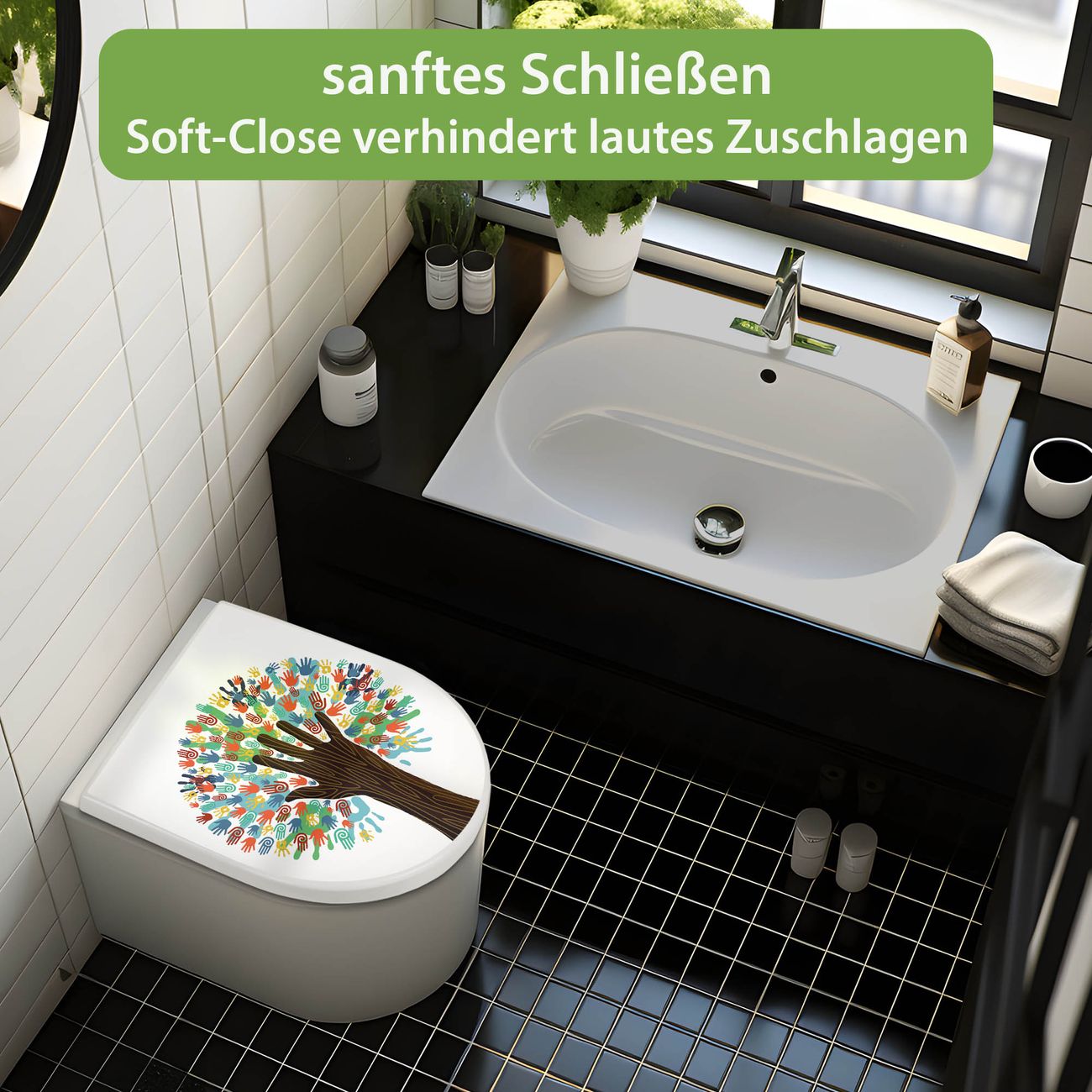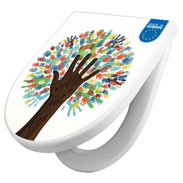WC Sitz mit Absenkautomatik D Form Motiv We are the World