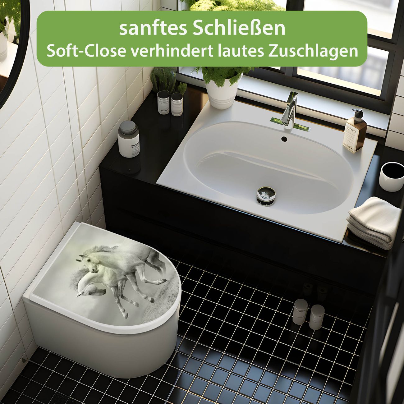 WC Sitz mit Absenkautomatik D Form Motiv Wilde Pferde SW