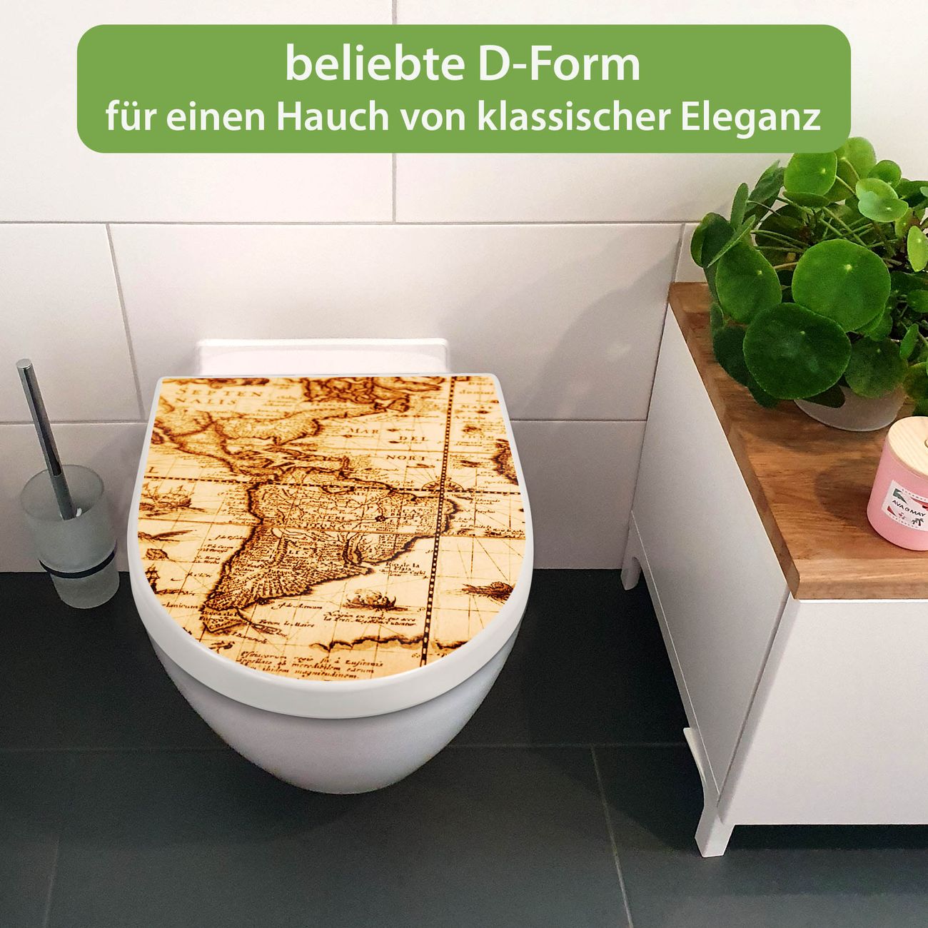 WC Sitz mit Absenkautomatik D Form Motiv World Map