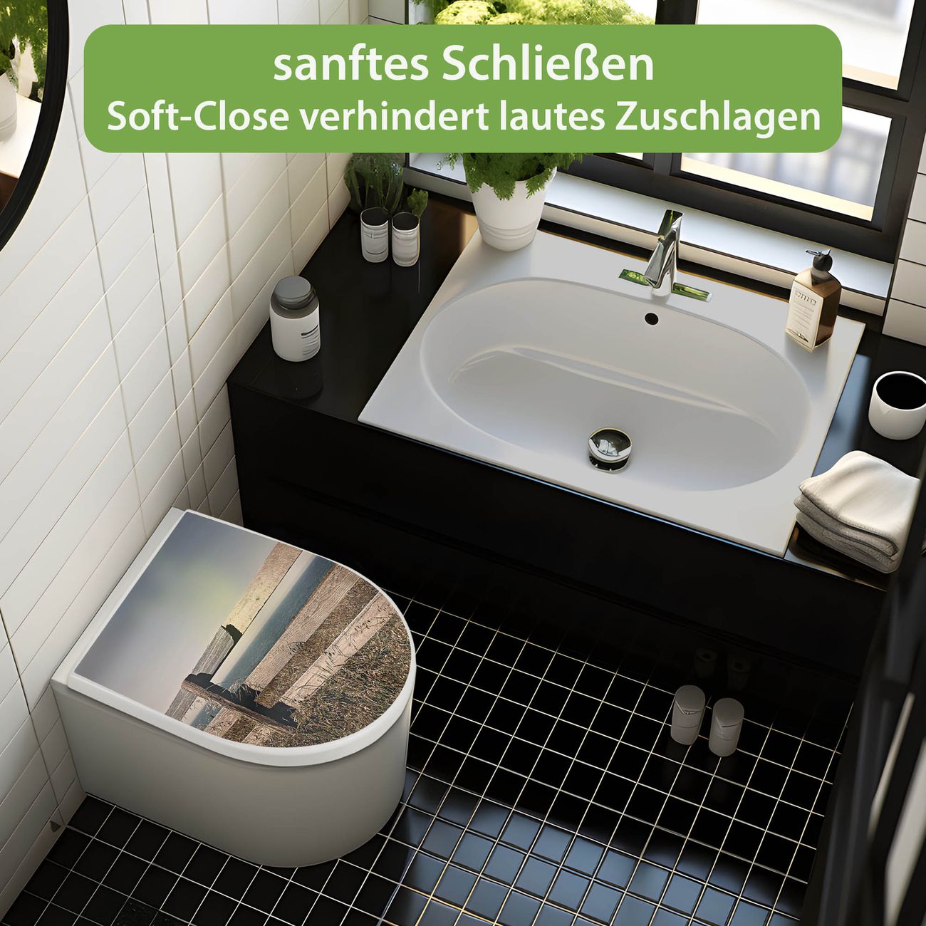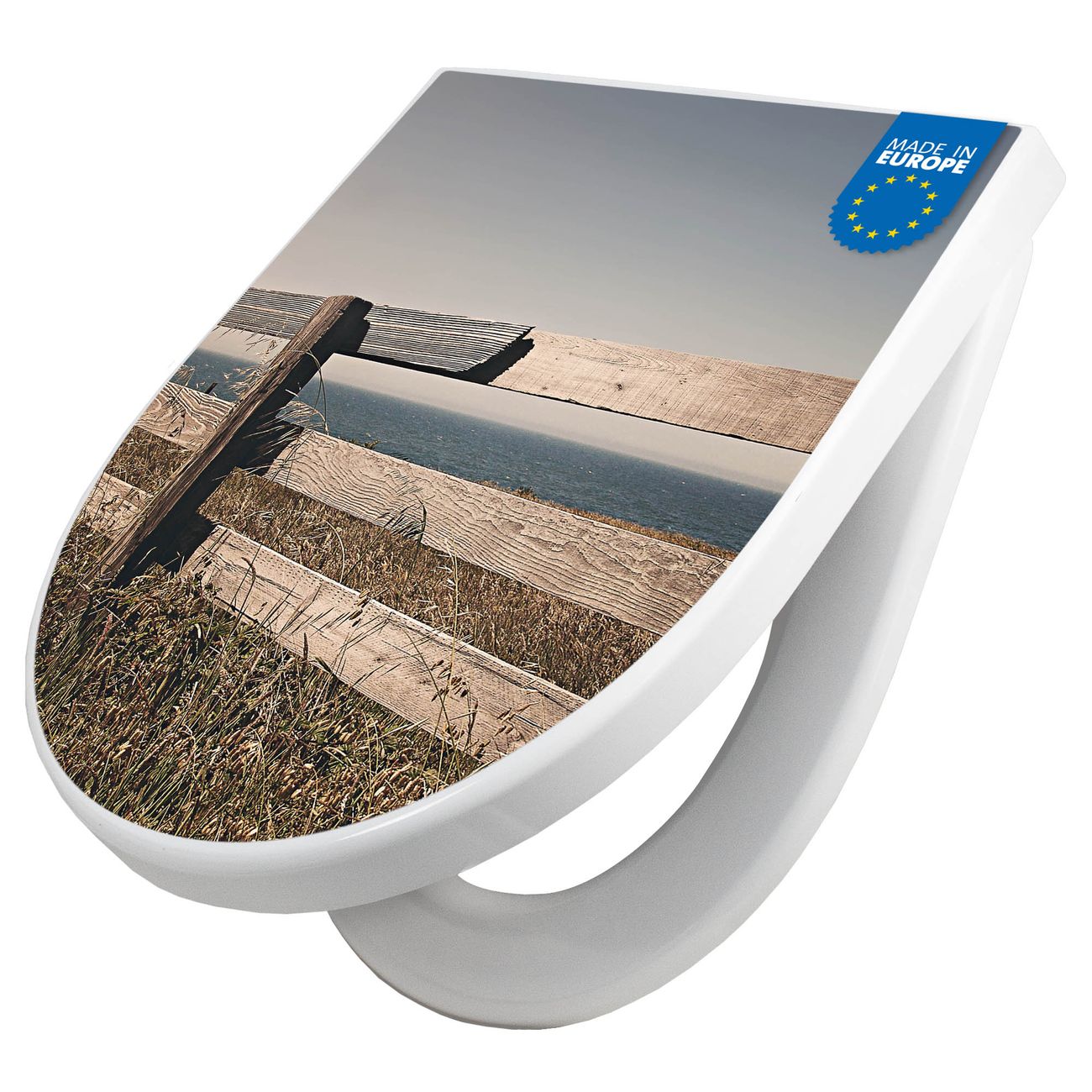 WC Sitz mit Absenkautomatik D Form Motiv Zaun am Meer