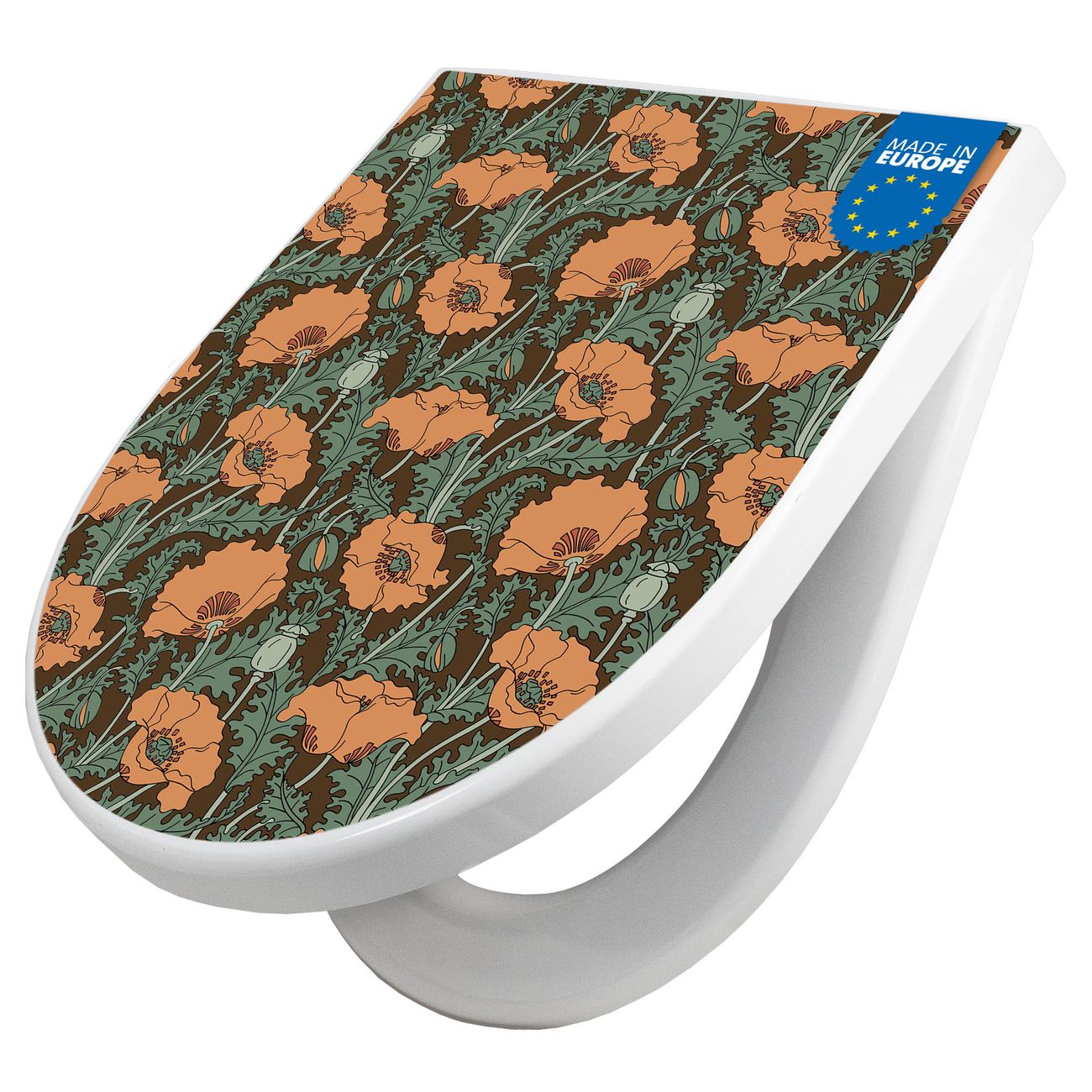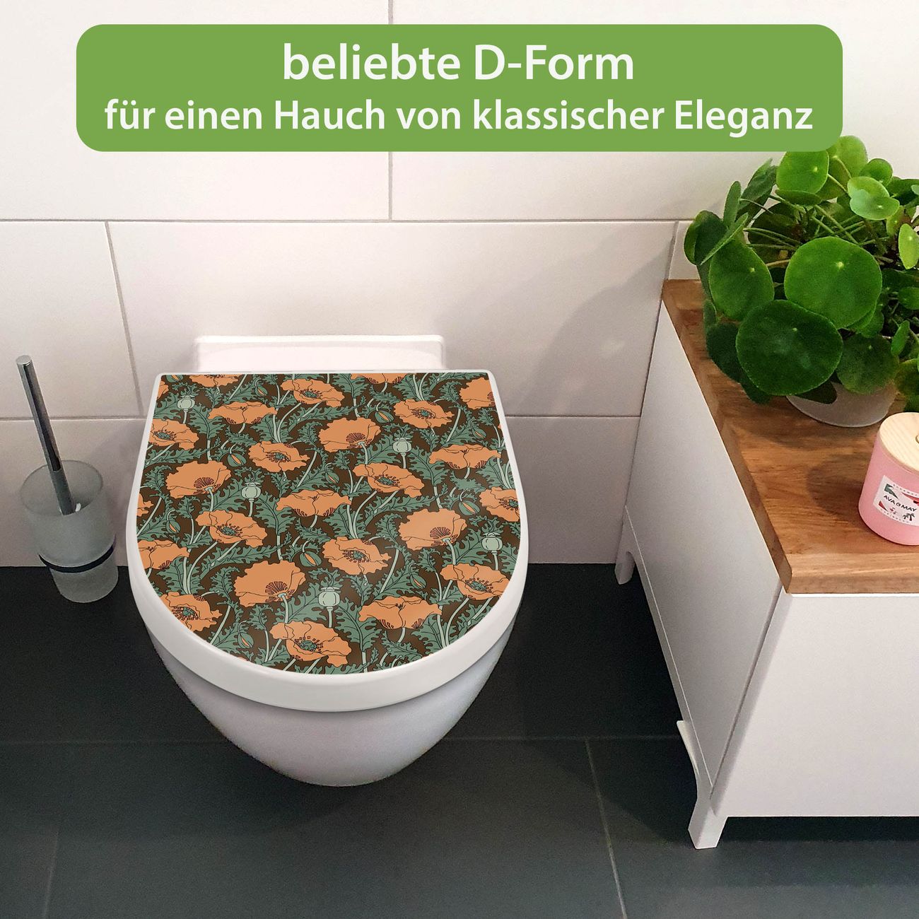 WC Sitz mit Absenkautomatik D Form Motiv Zeichnung Mohn
