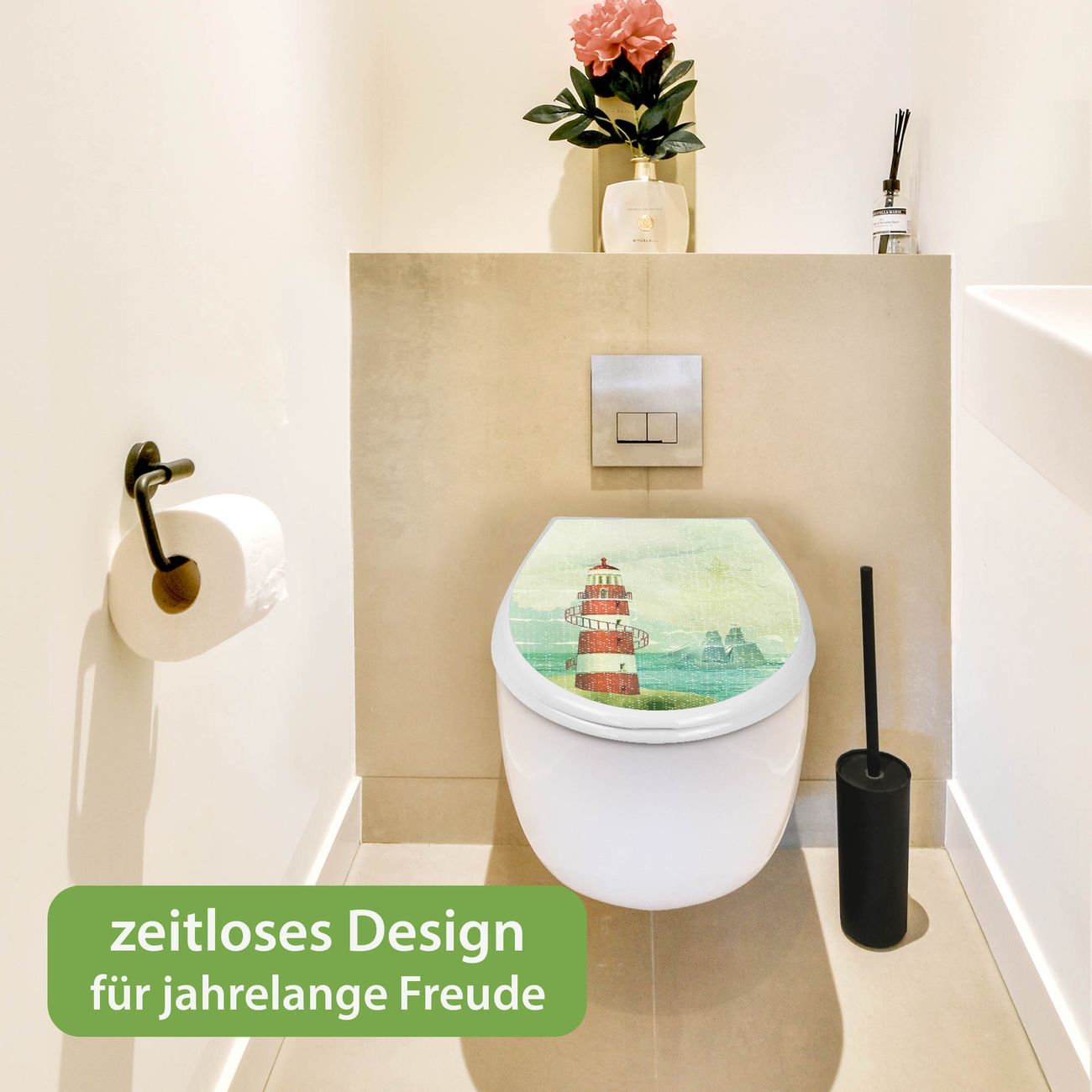 Toilettendeckel weiß mit Absenkautomatik Motiv Alter Leuchtturm