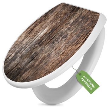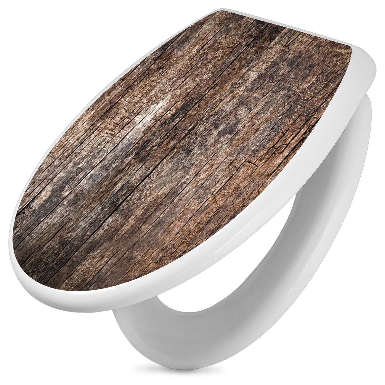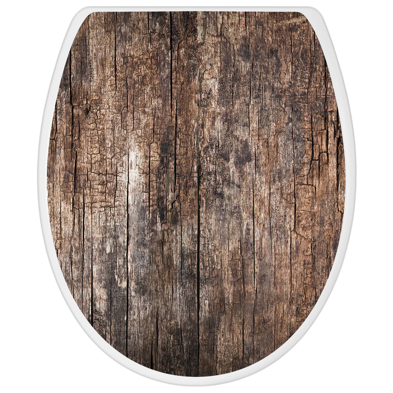 Toilettendeckel weiß mit Absenkautomatik Motiv Altes Holz