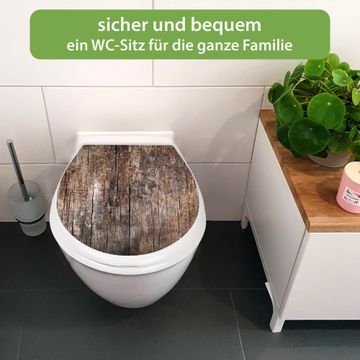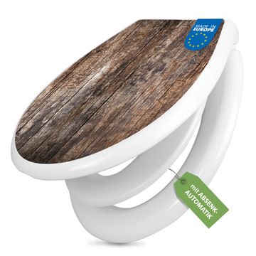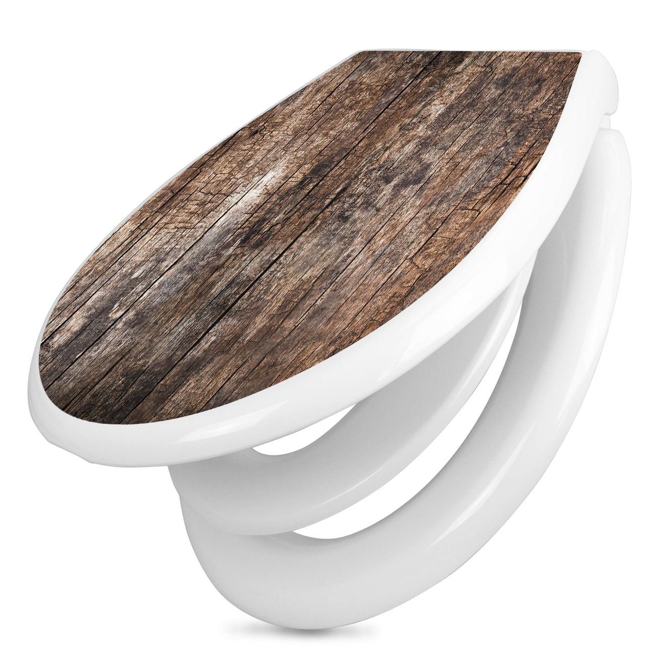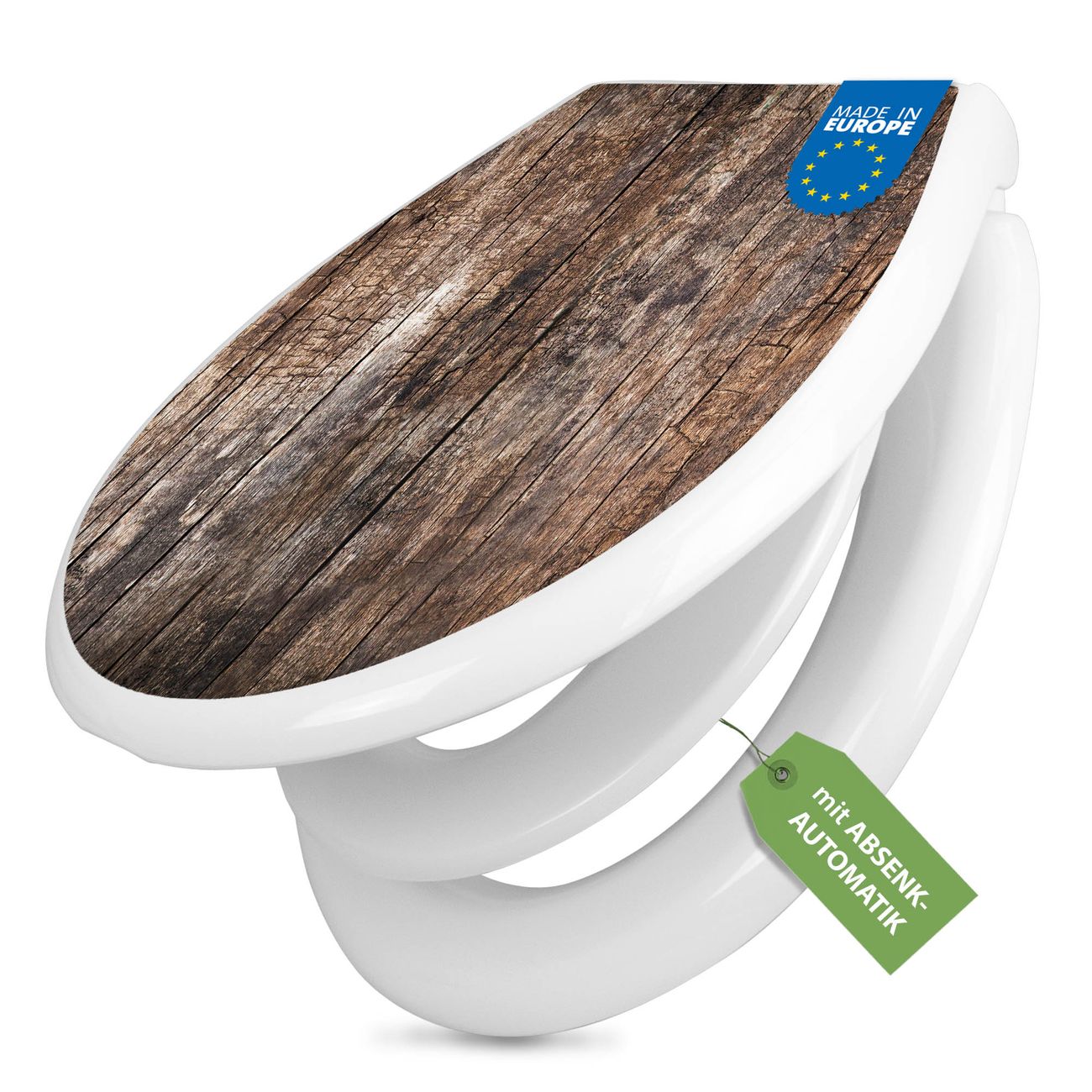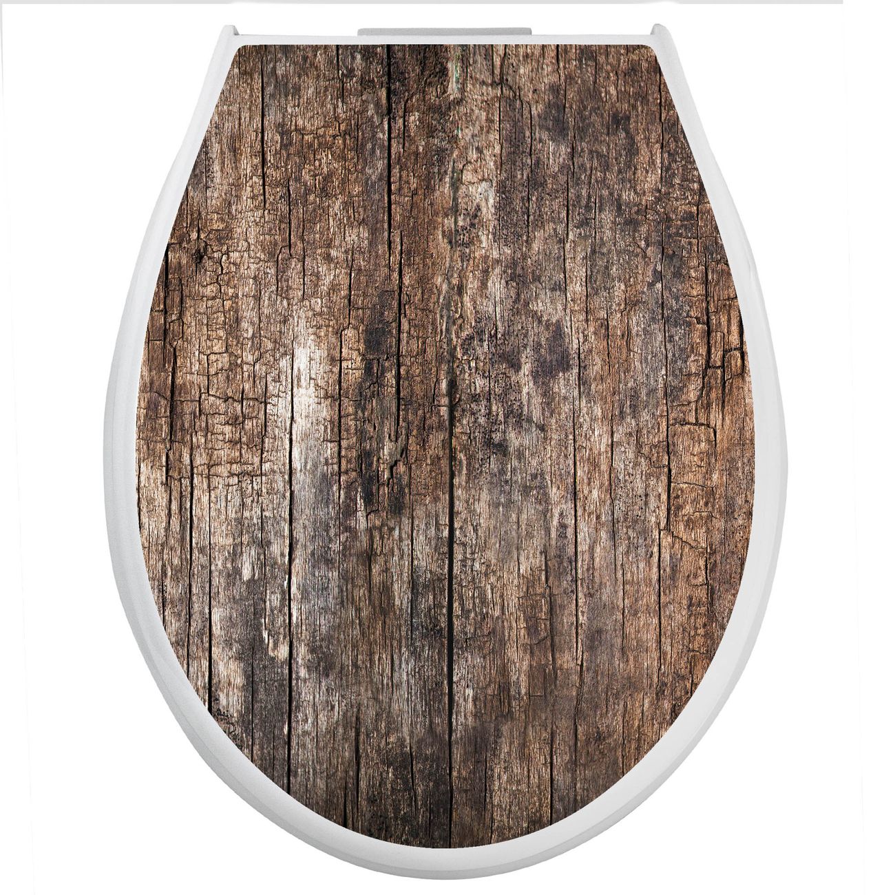 Toilettendeckel weiß mit Absenkautomatik Motiv Altes Holz
