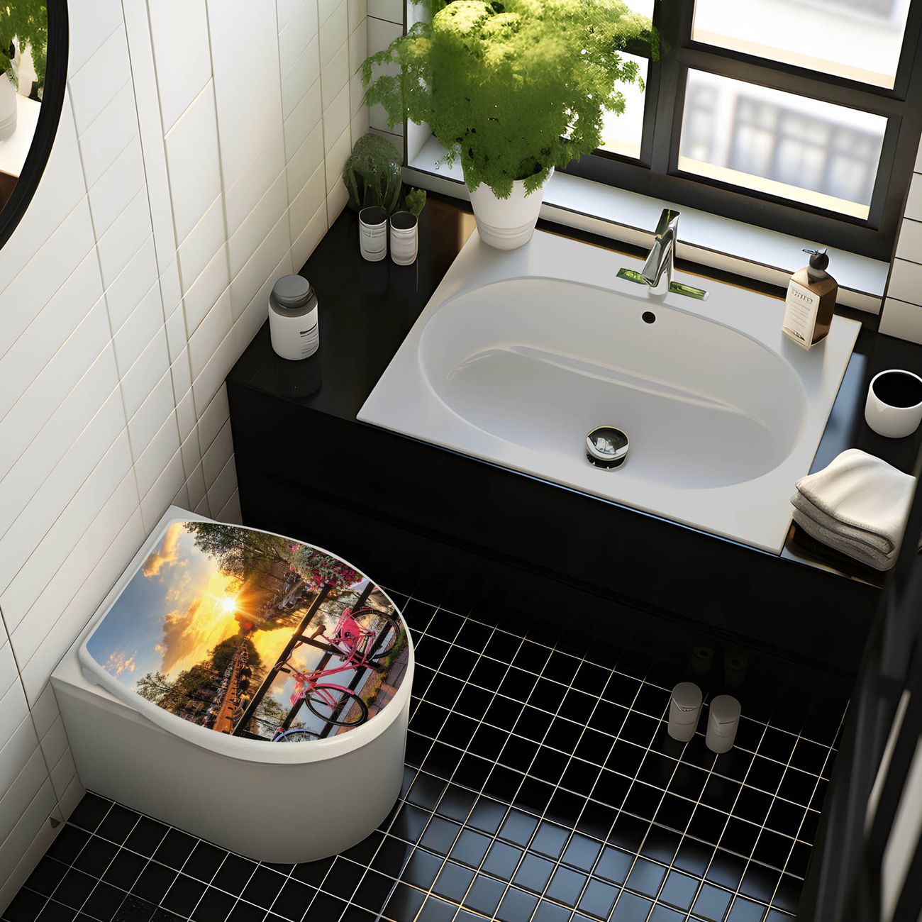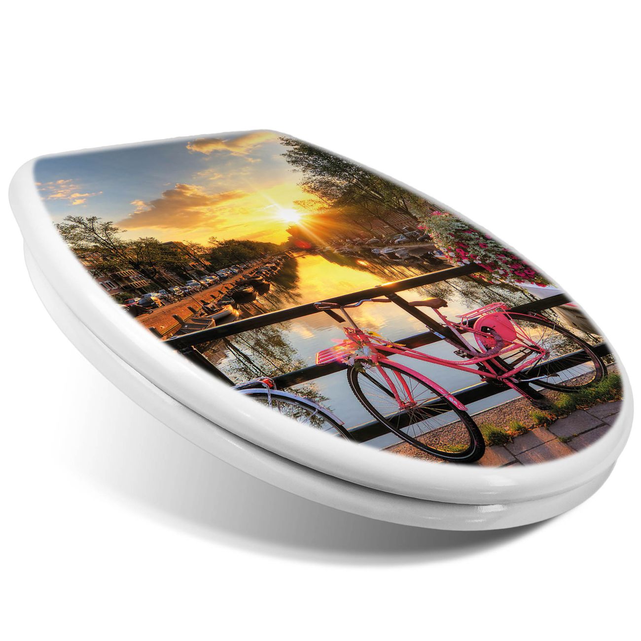 Toilettendeckel weiß mit Absenkautomatik Motiv Amsterdam Mit Rad