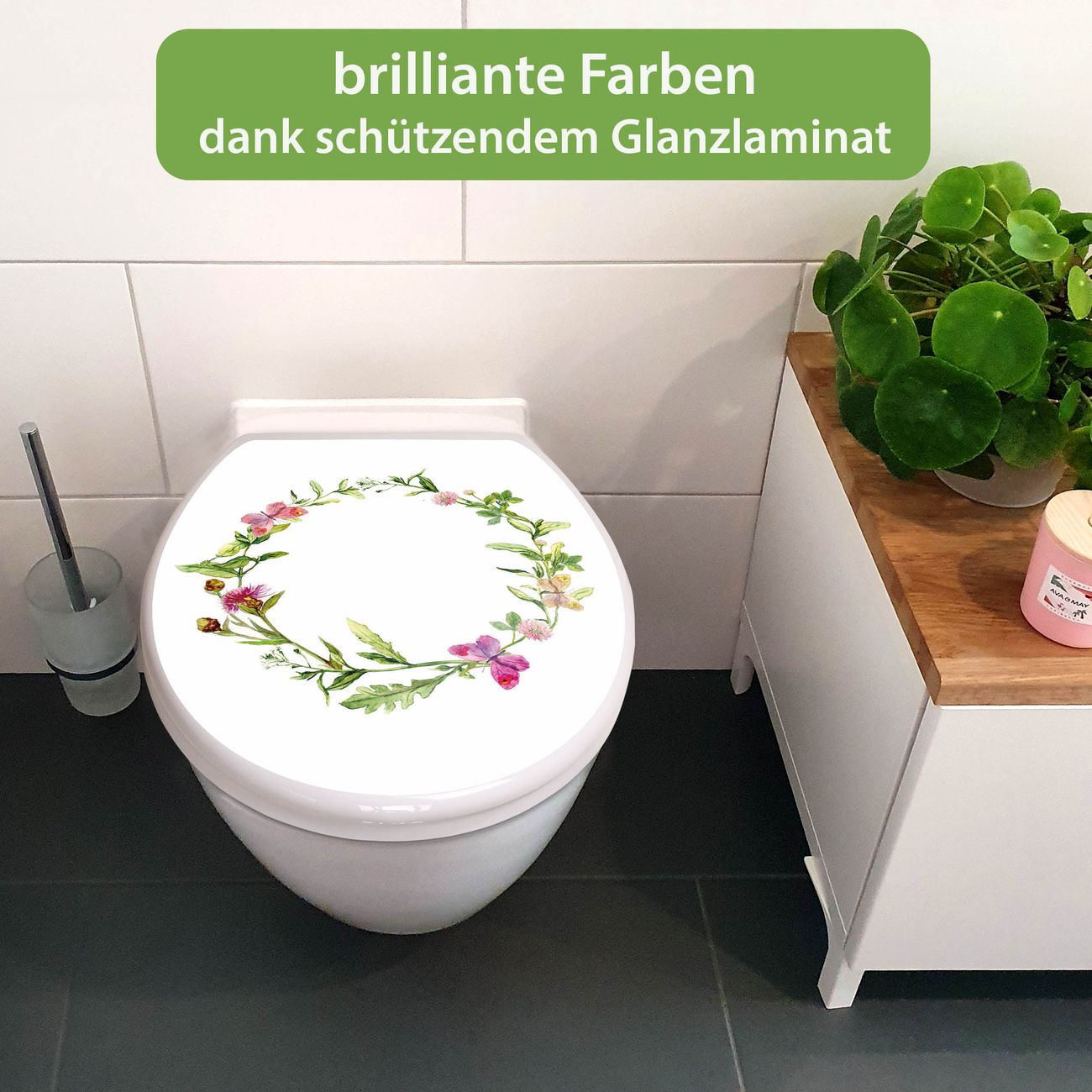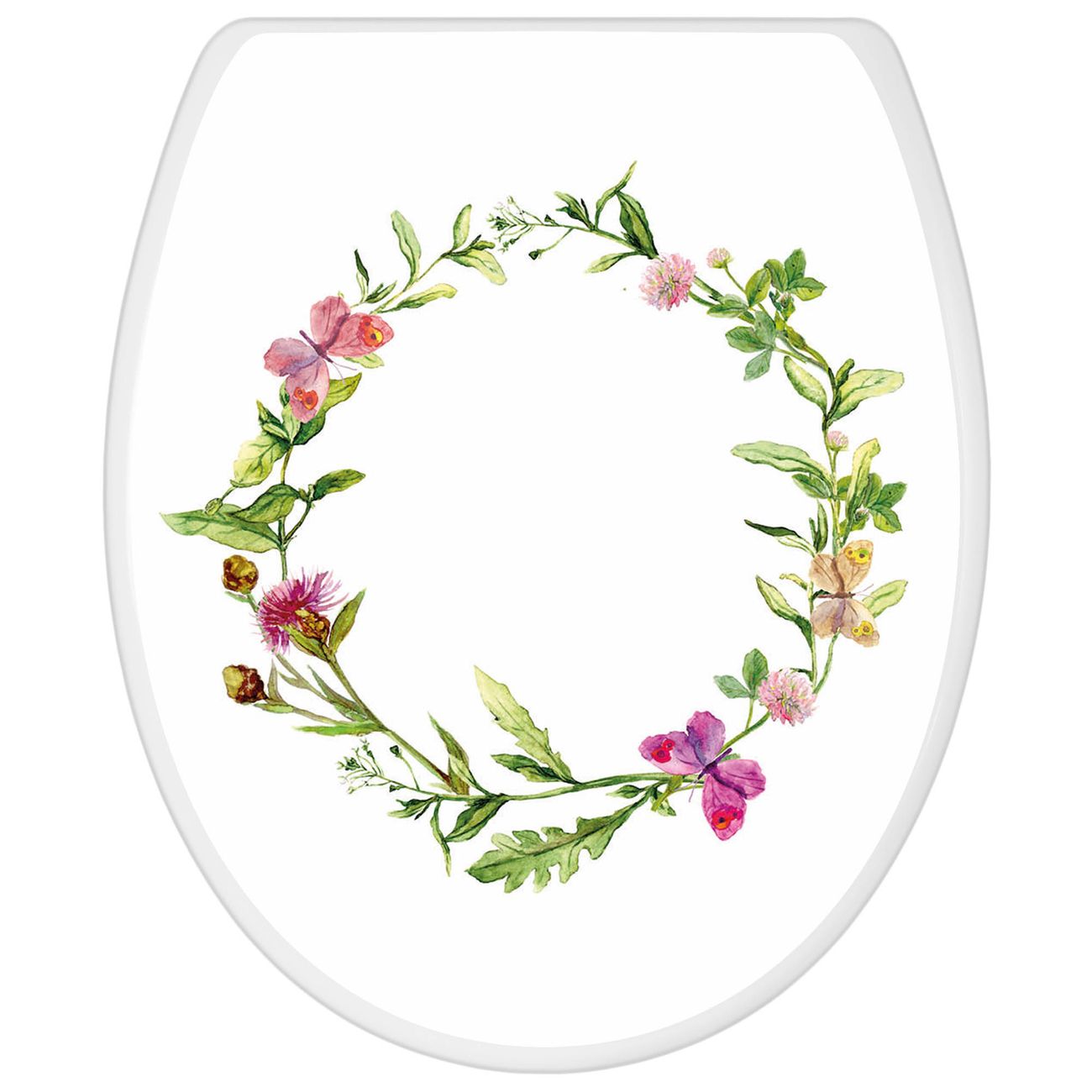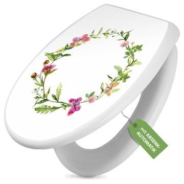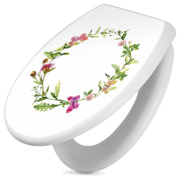 Toilettendeckel weiß mit Absenkautomatik Motiv Aquarell Blumenring