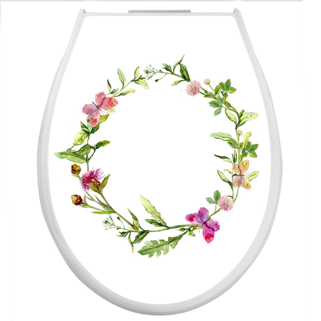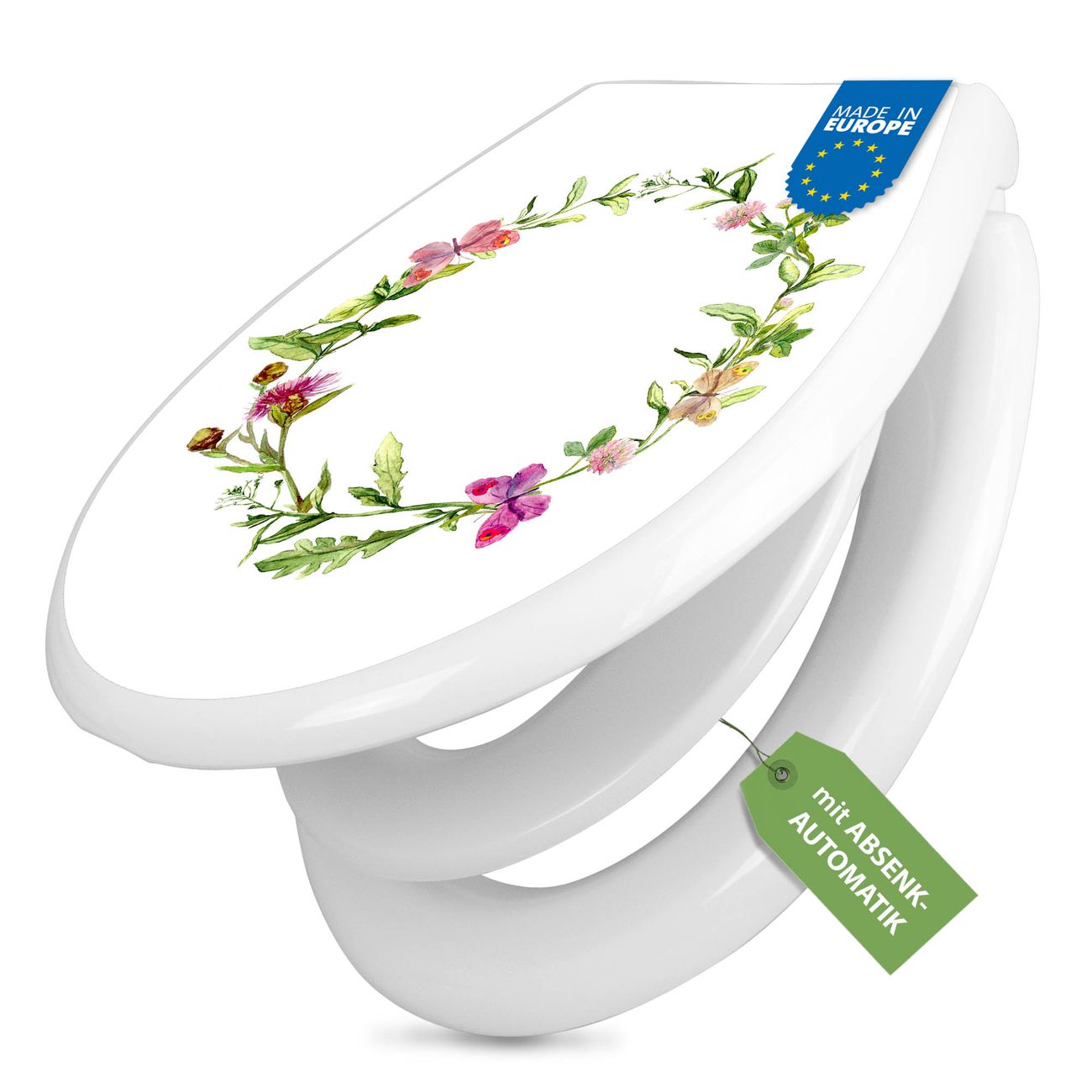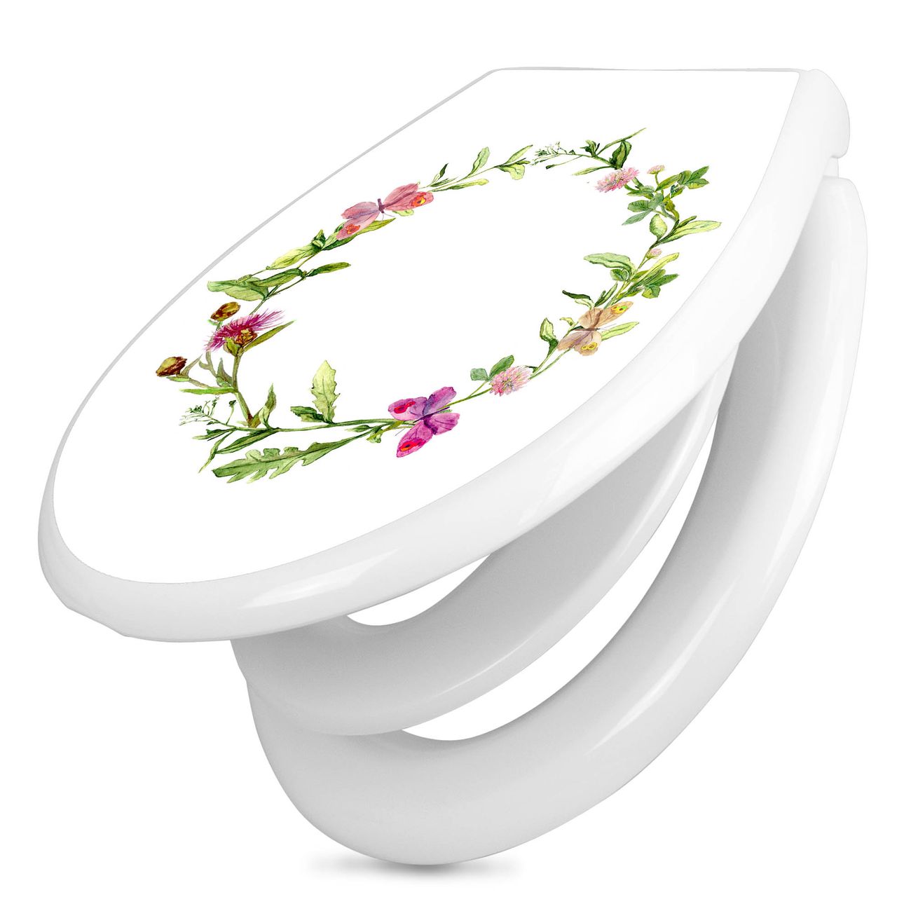 Toilettendeckel weiß mit Absenkautomatik Motiv Aquarell Blumenring