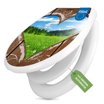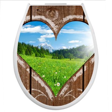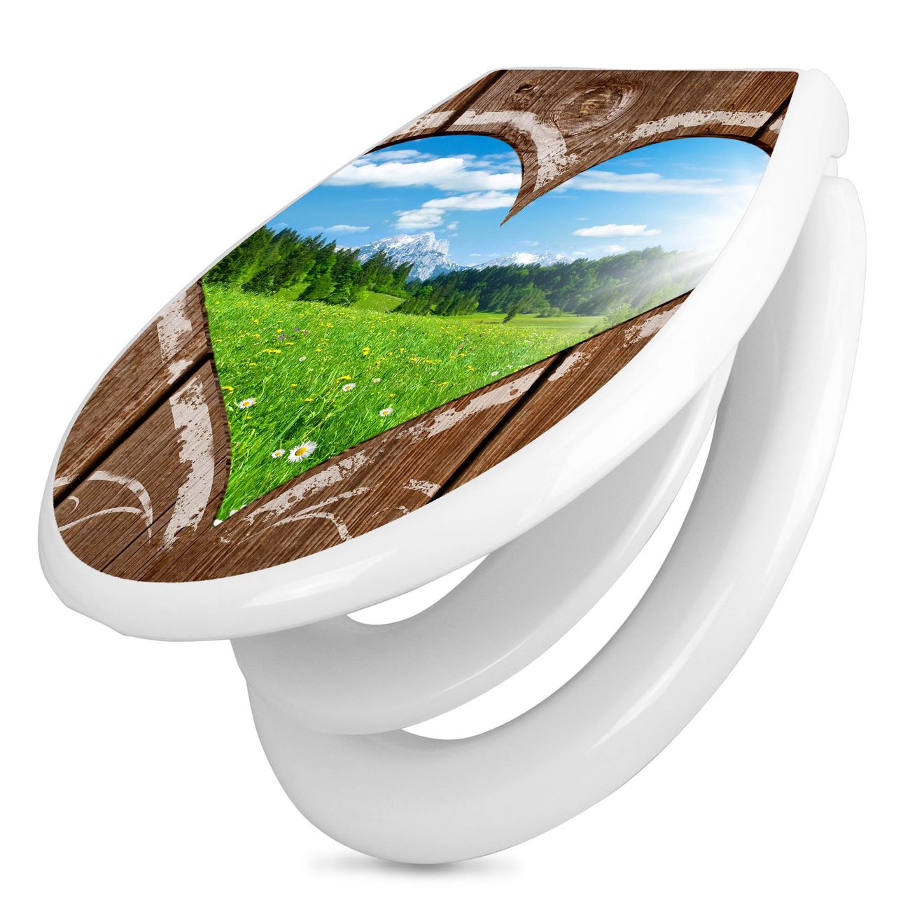 Toilettendeckel weiß mit Absenkautomatik Motiv Ausblick mit Herz