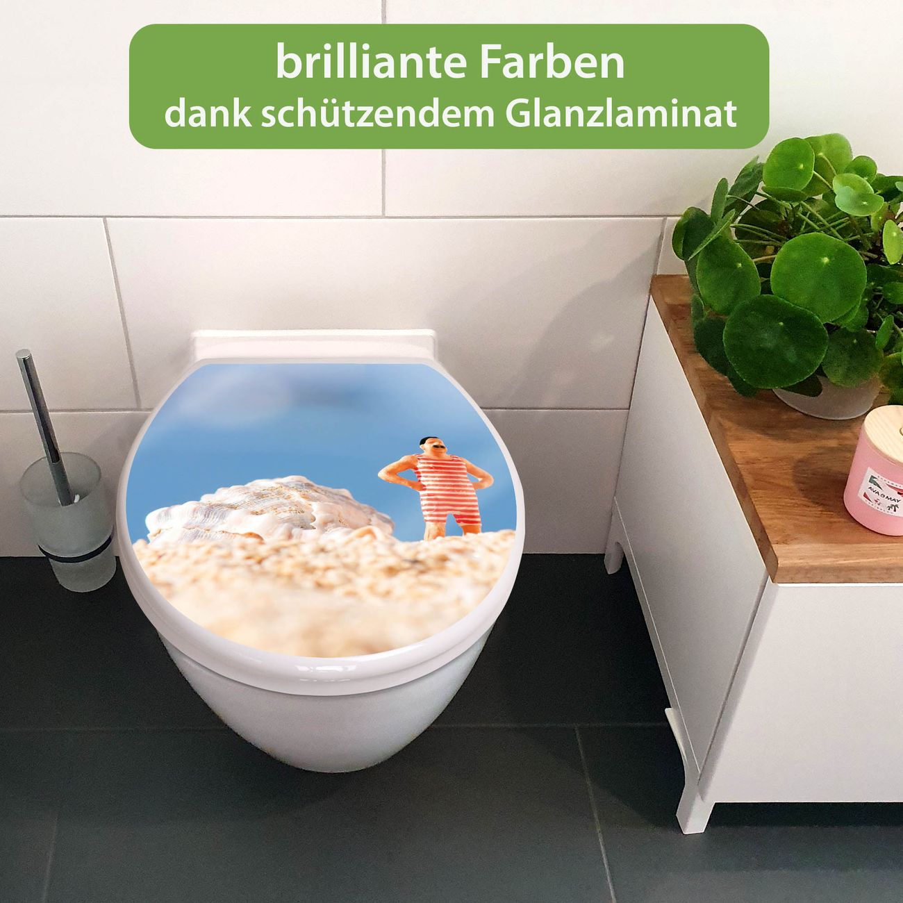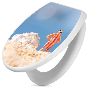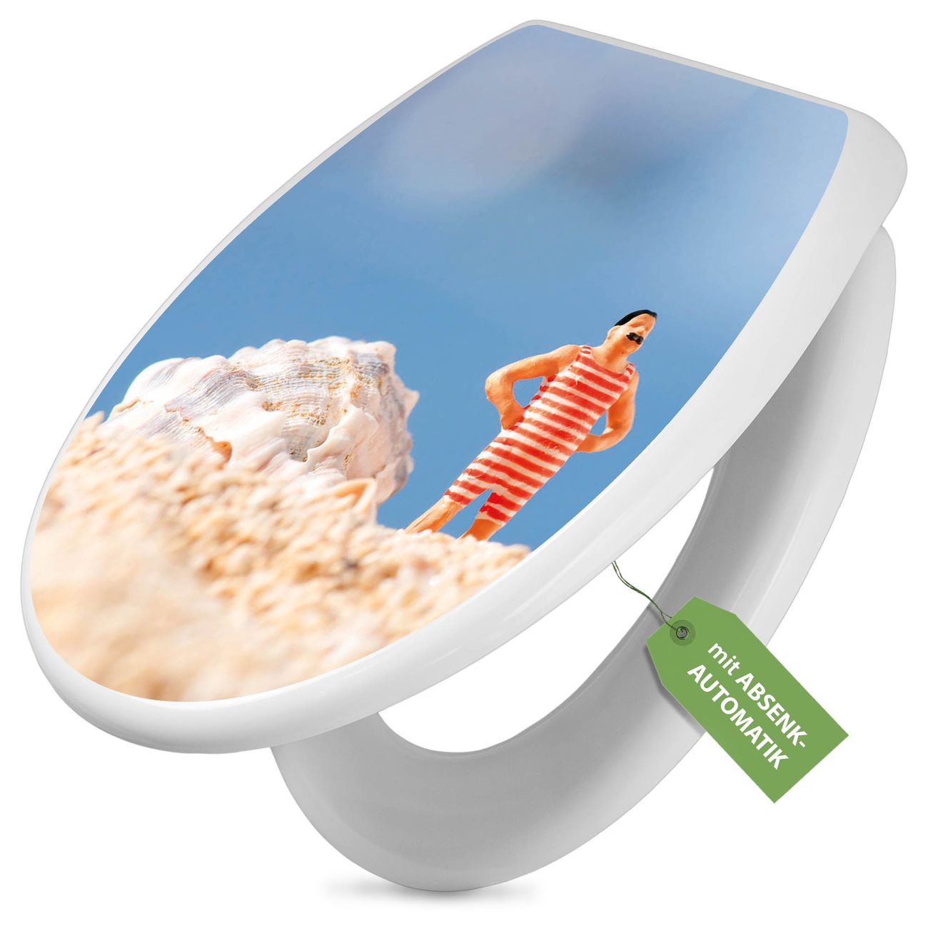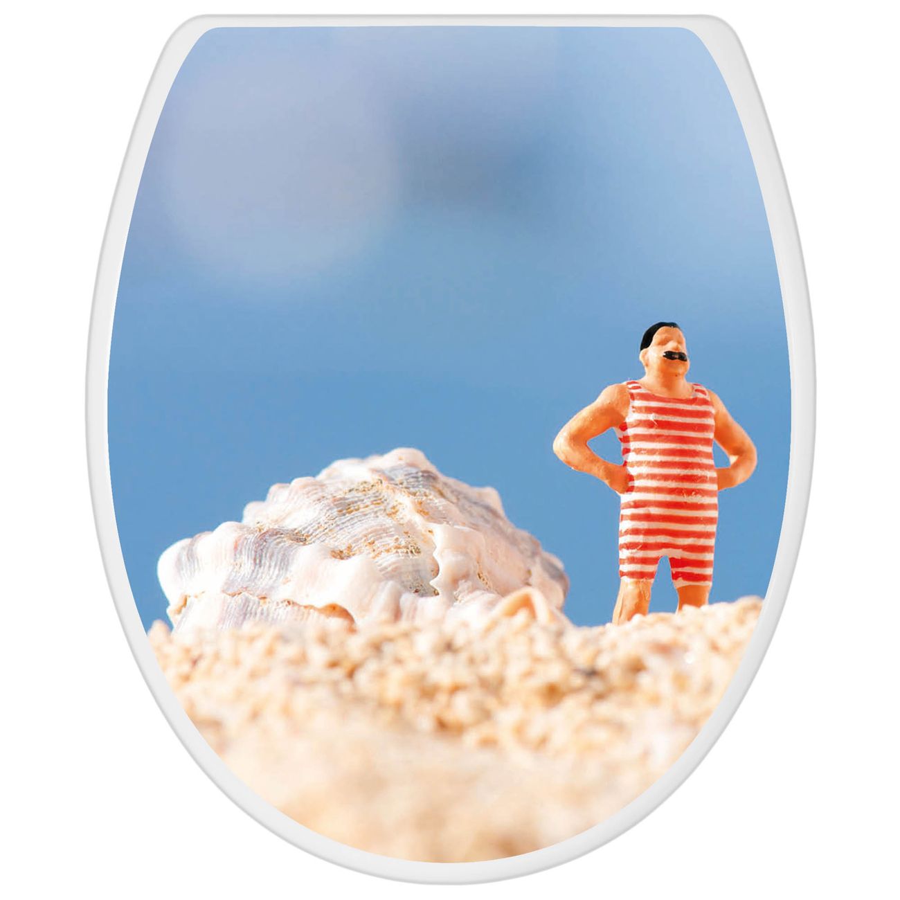 Toilettendeckel weiß mit Absenkautomatik Motiv Bademeister