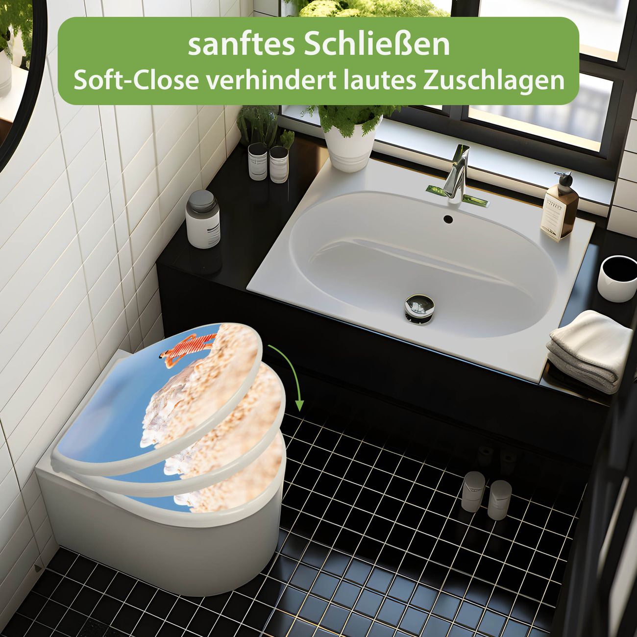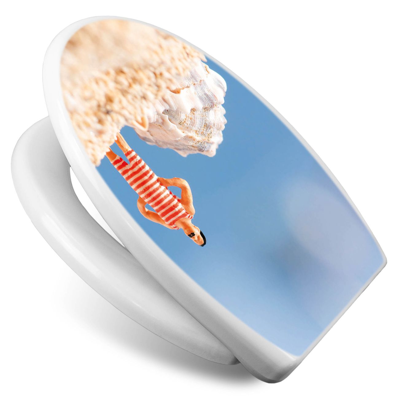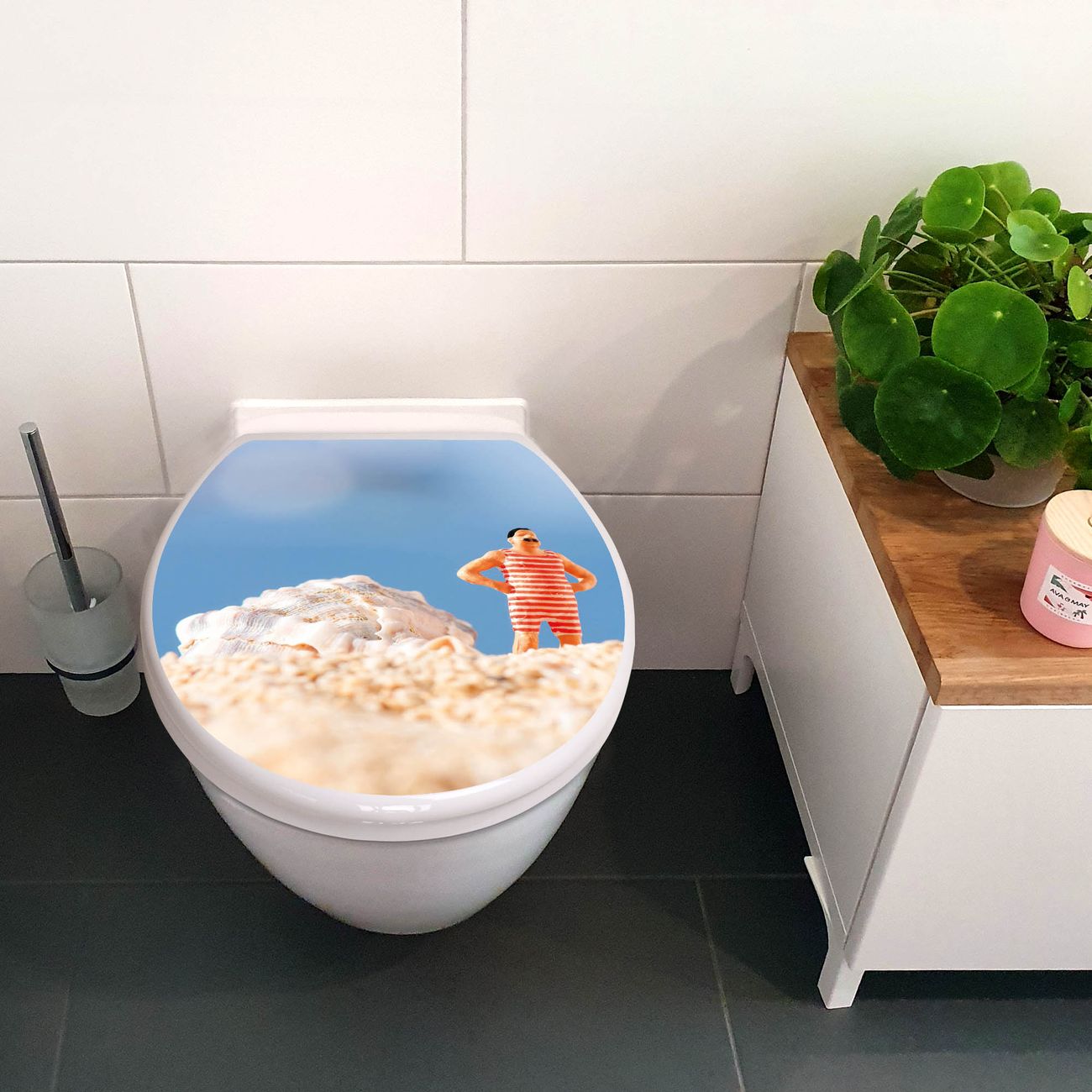 Toilettendeckel weiß mit Absenkautomatik Motiv Bademeister