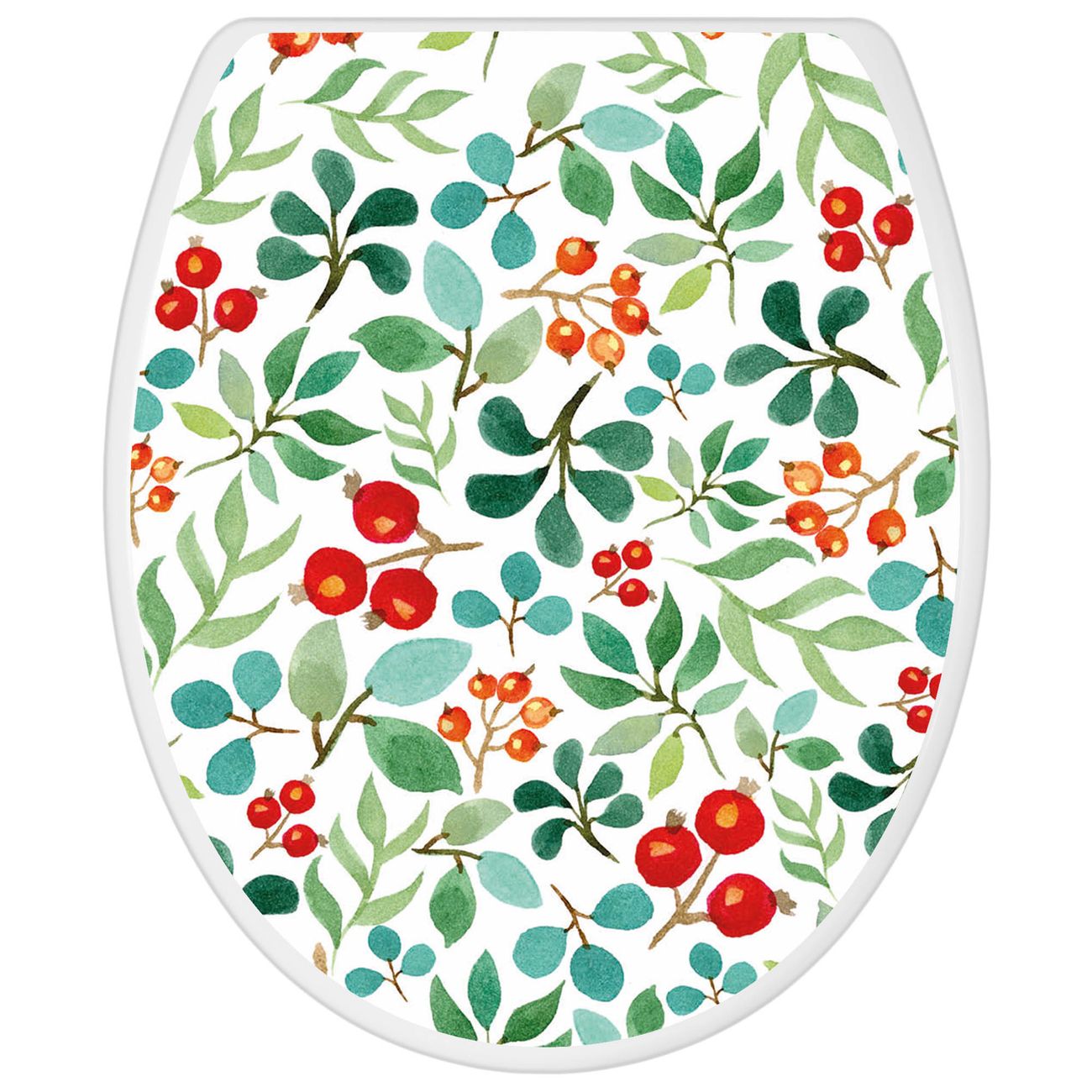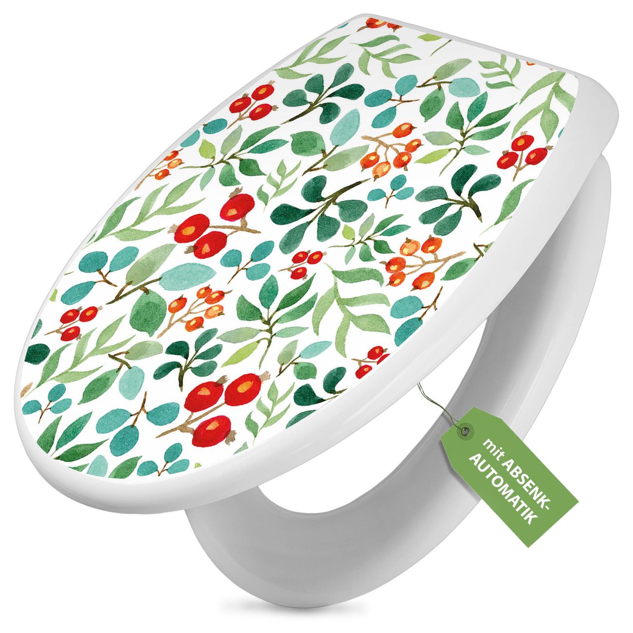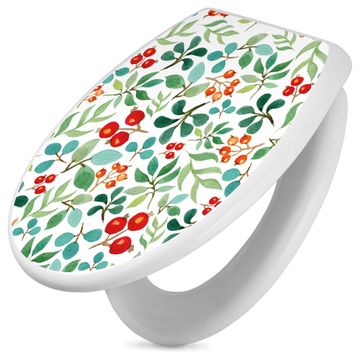 Toilettendeckel weiß mit Absenkautomatik Motiv Beeren und Blätter
