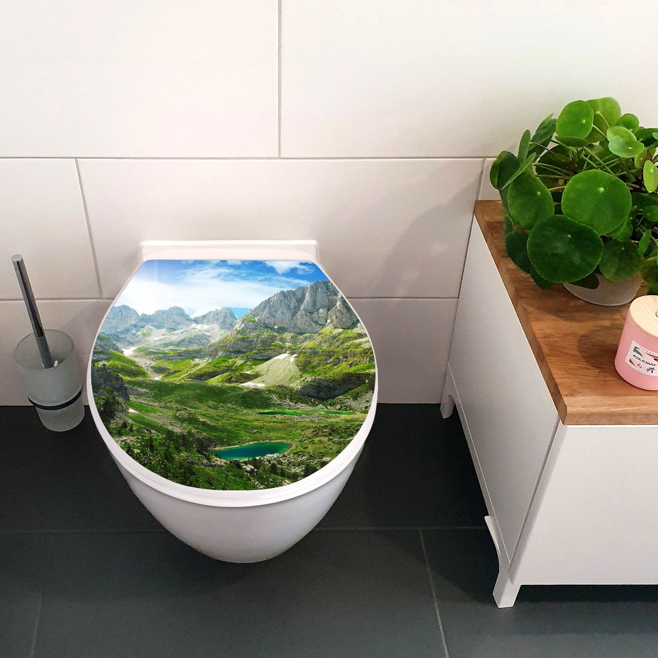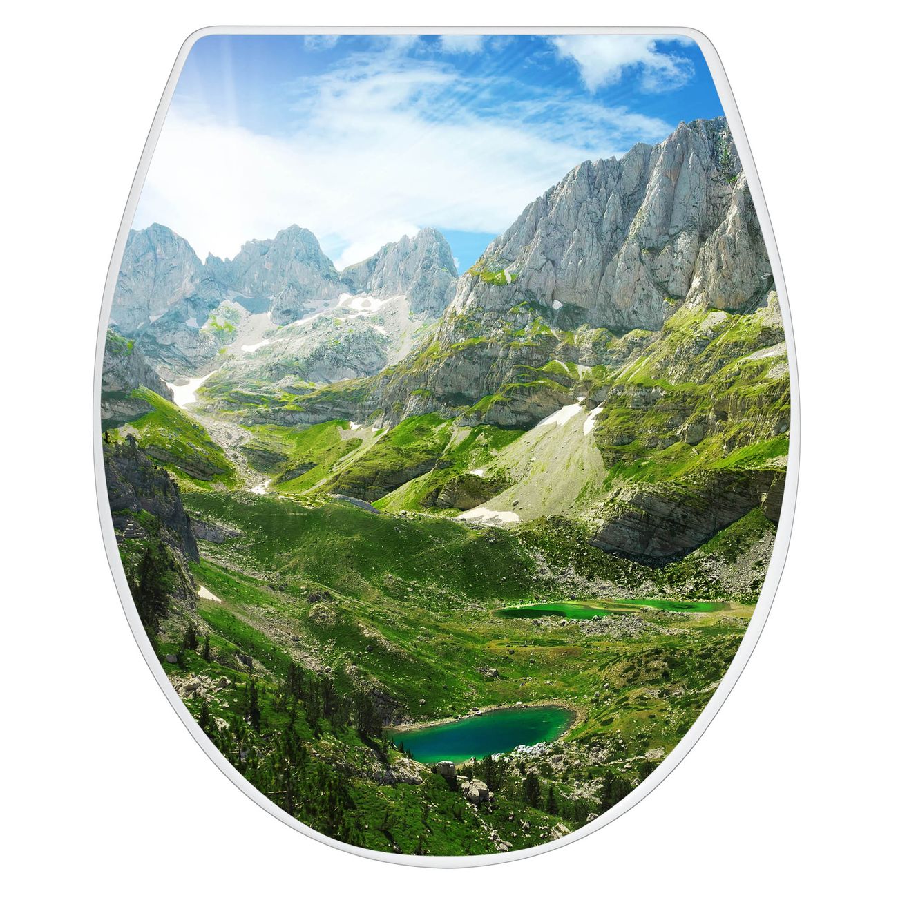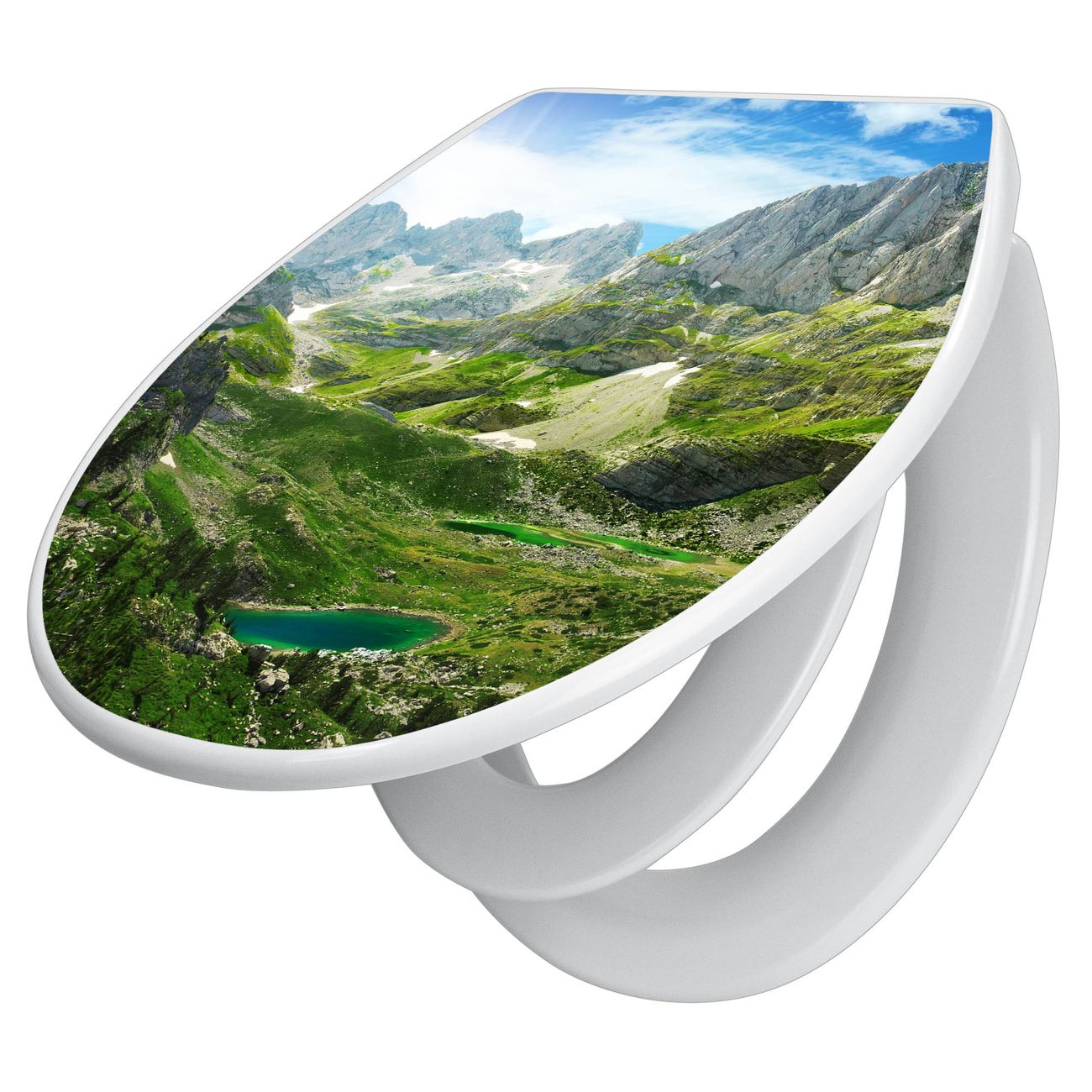 Toilettendeckel weiß mit Absenkautomatik Motiv Bergsee Alpen