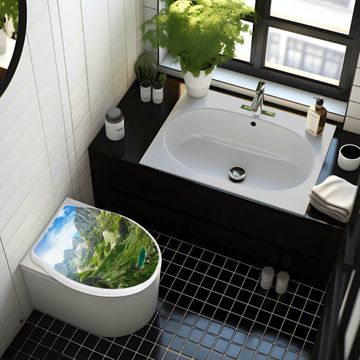 FUNKTION:Mit dem banjado Familien WC Sitz mit Absenkautomatik und dem Motiv Bergsee Alpen verbinden Sie Design mit Funktionalität. Sie erhalten den Toilettendeckel in bewährt guter Qualität mit Montagematerial passend auf alle Euro-WC-Becken. Die Gesamtgröße beträgt 37cm x 44,5cm x 5cm, die Grundfarbe ist weiß.</p> DESIGN:Der Klodeckel in weiß mit Motiv Bergsee Alpen hat eine ansprechende Optik, eine besondere Form und ist sehr stabil. Das Motiv besteht aus einer farbbrillianten Motivfolie, die durch ein Schutzlaminat zusätzlich vor Kratzern schützt. Der integrierte Kindersitz fügt sich harmonisch ein. DETAILS:Der Toilettensitz mit Soft Close besteht aus hochwertigem Polypropylen, ist geruchlos, ungiftig und kann mit handelsüblicher Seife gereinigt werden. Die Montage kann von von oben oder von unten erfolgen und ist kinderleicht. NUTZEN:Mit Hilfe der detaillierten Aufbauanleitung ermöglichen wir eine schnelle und unkomplizierte Montage. Die banjado Klobrille ist universell geeignet für alle Euro-WC-Schüsseln. Der Kindersitz kann unkompliziert entfernt werden. BANJADO:Ihr WC-Deckel wird in Sachsen in einer kleinen Manufaktur von Hand veredelt. Die Motivfolie ist lösungsmittelfrei und schutzlaminiert für einen langen Halt. Wir wünschen viel Freude bei der Auswahl eines schönen Motivs.