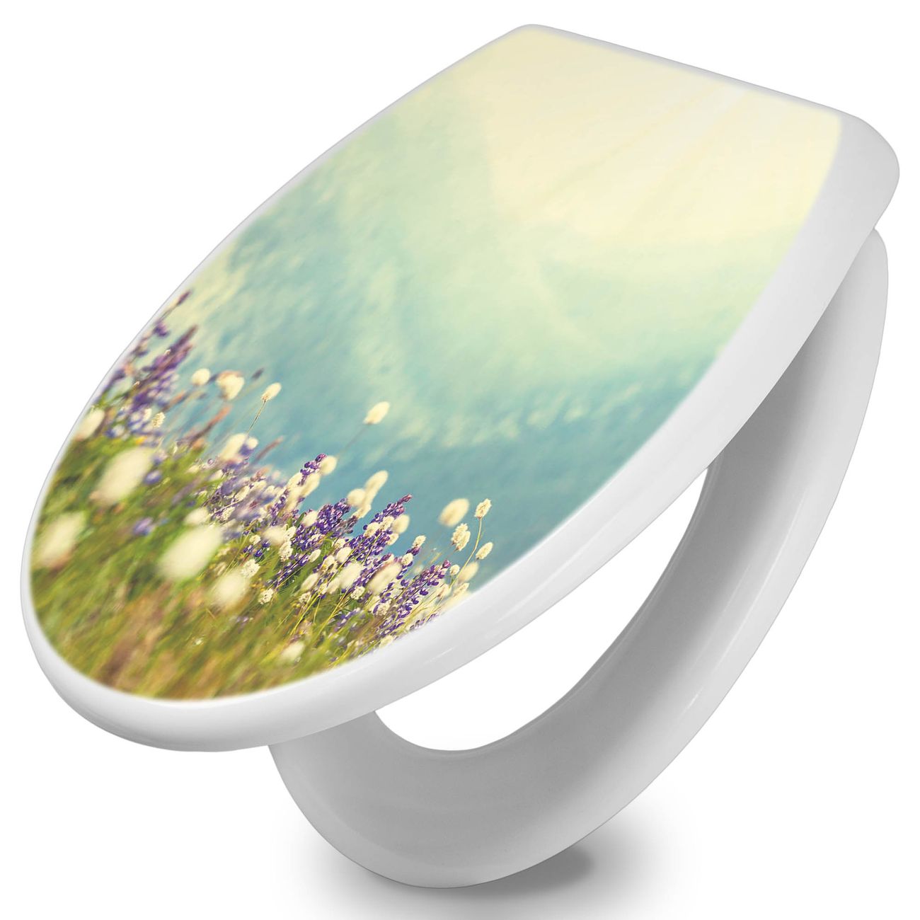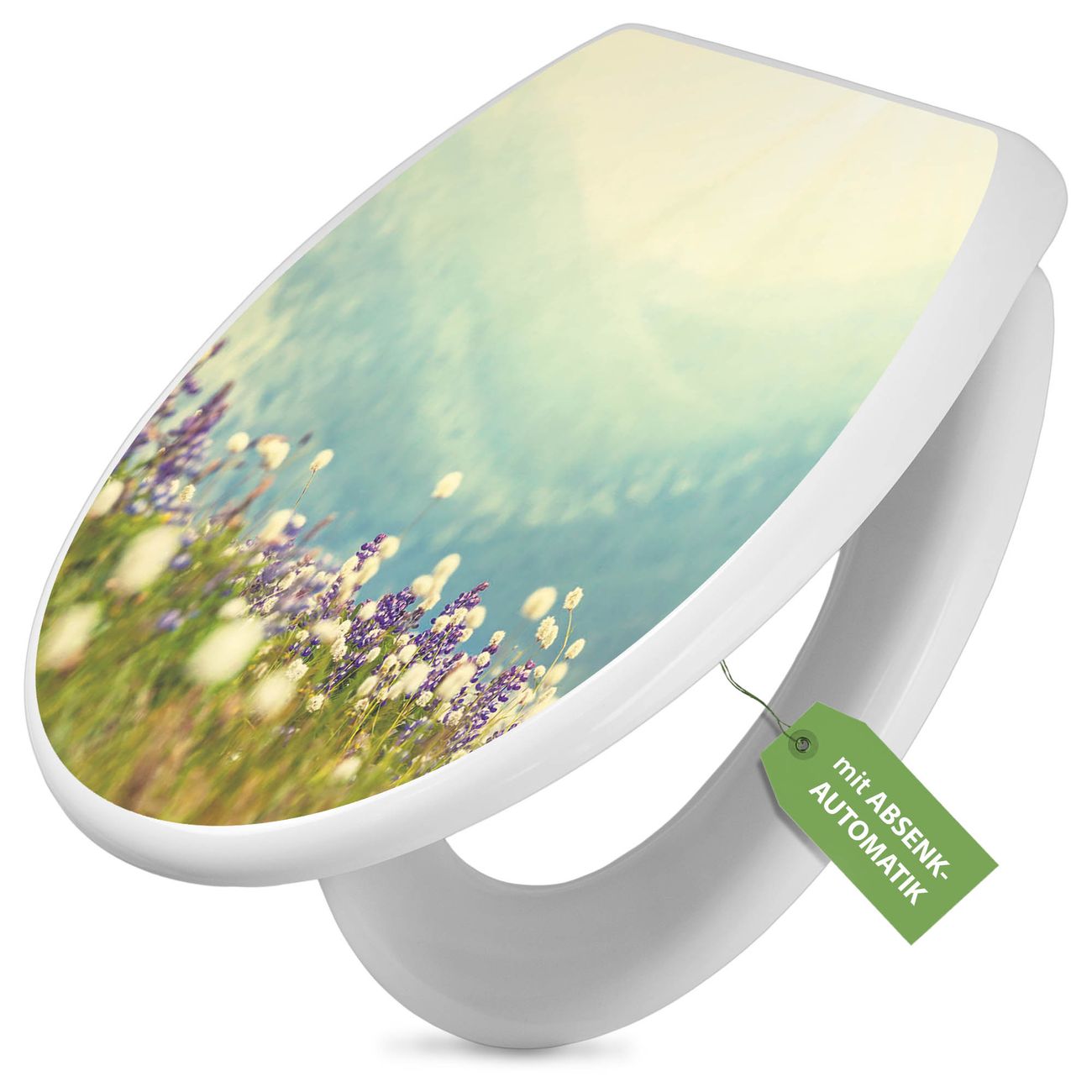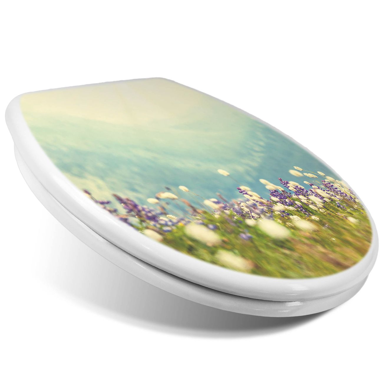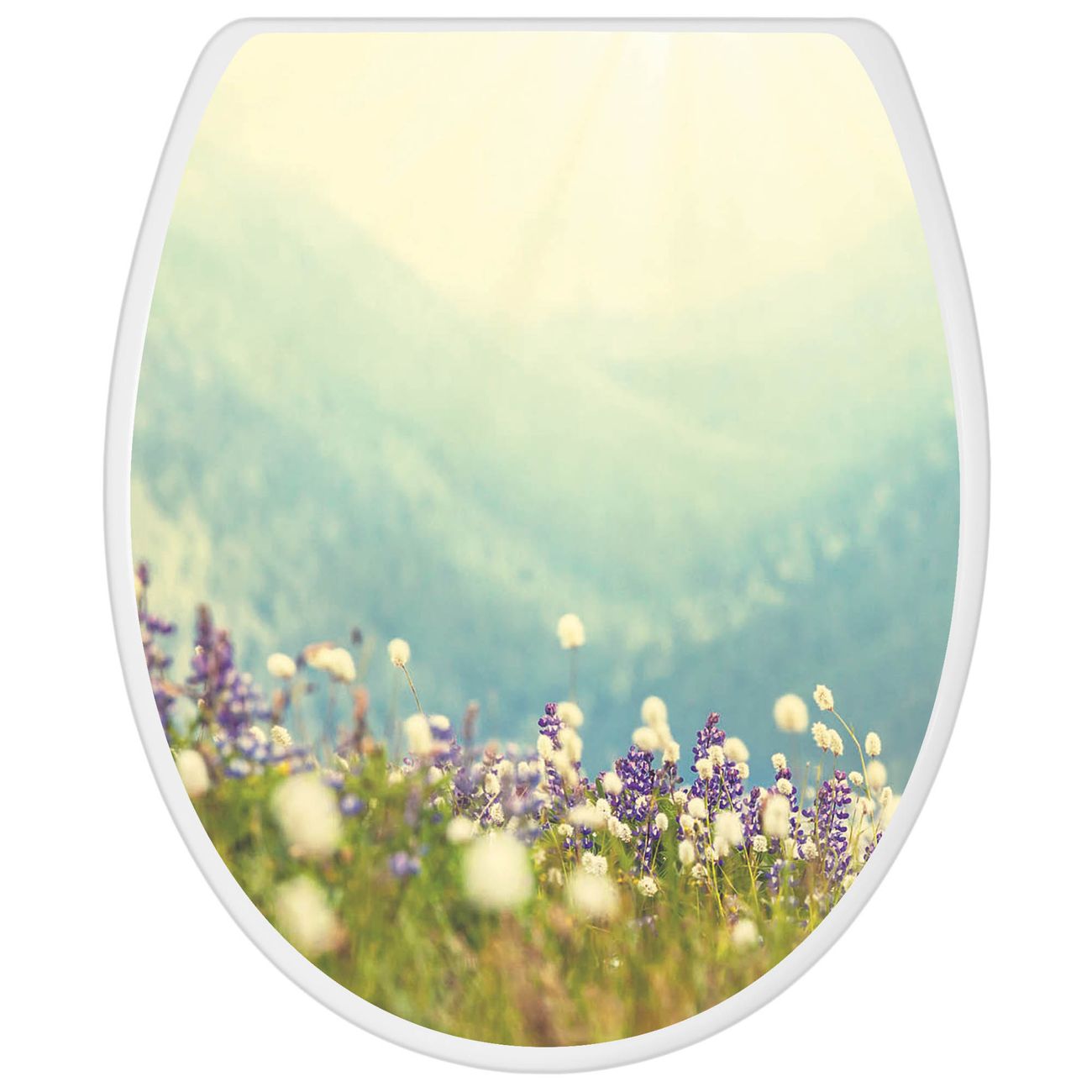 Toilettendeckel weiß mit Absenkautomatik Motiv Bergwiese