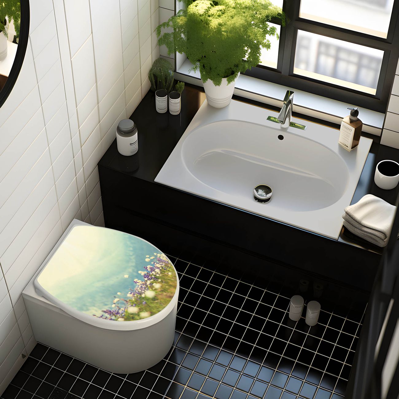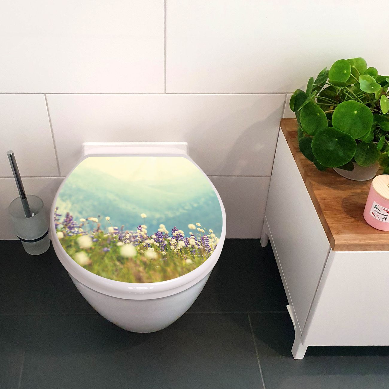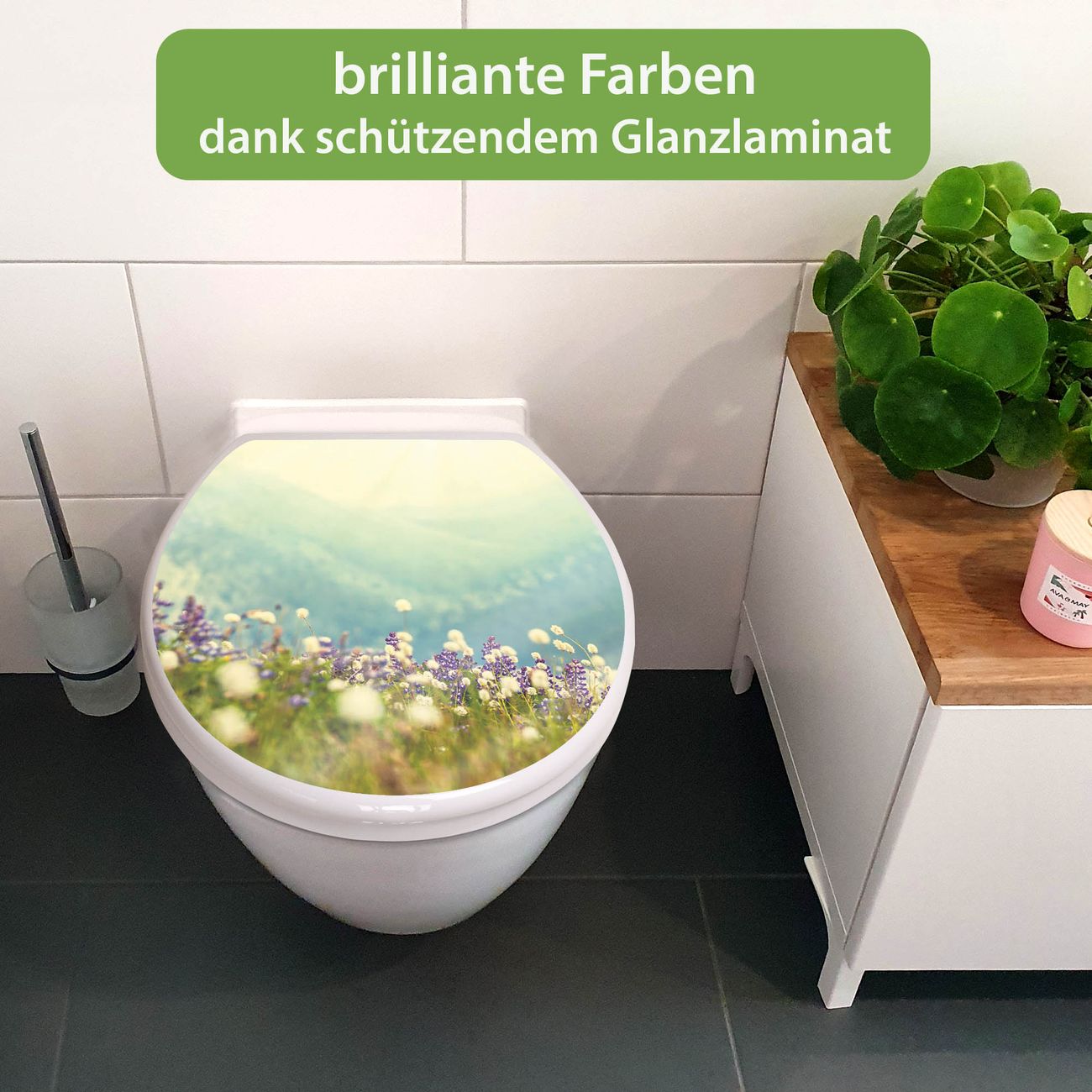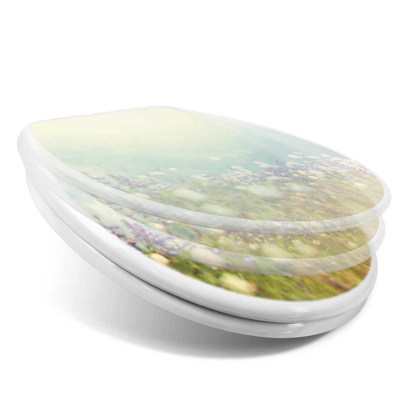 Toilettendeckel weiß mit Absenkautomatik Motiv Bergwiese