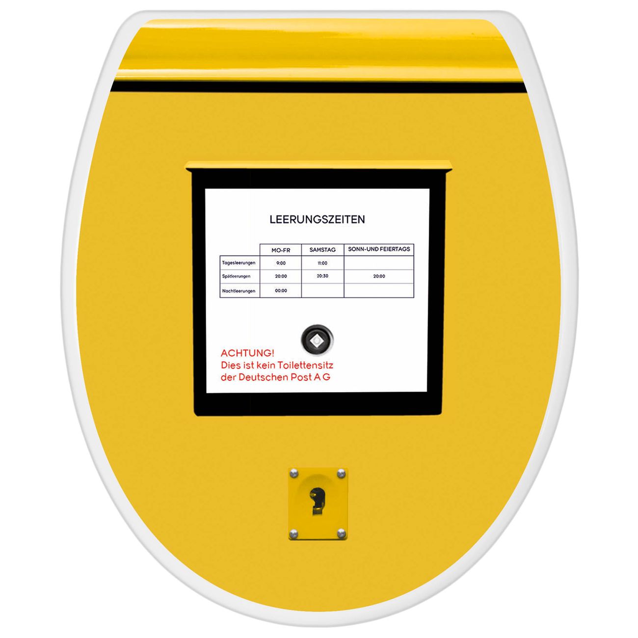 Toilettendeckel weiß mit Absenkautomatik Motiv Briefkasten Gelb