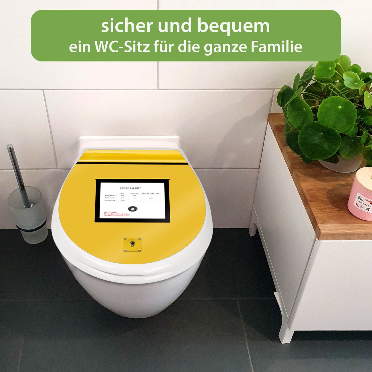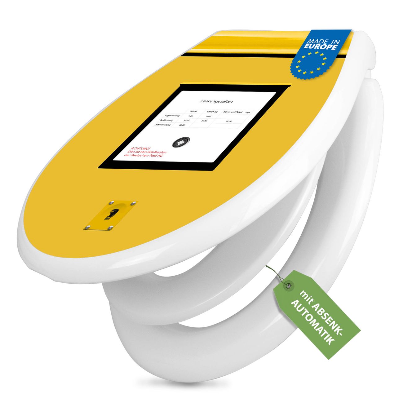 Toilettendeckel weiß mit Absenkautomatik Motiv Briefkasten Gelb