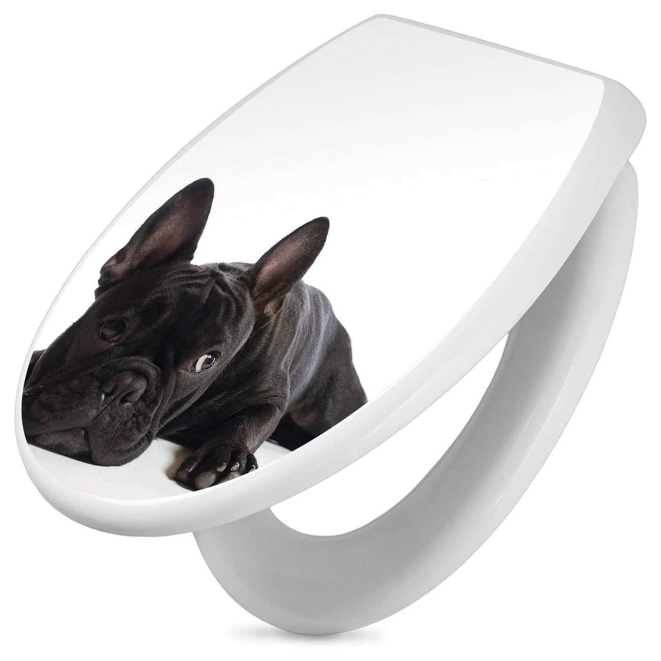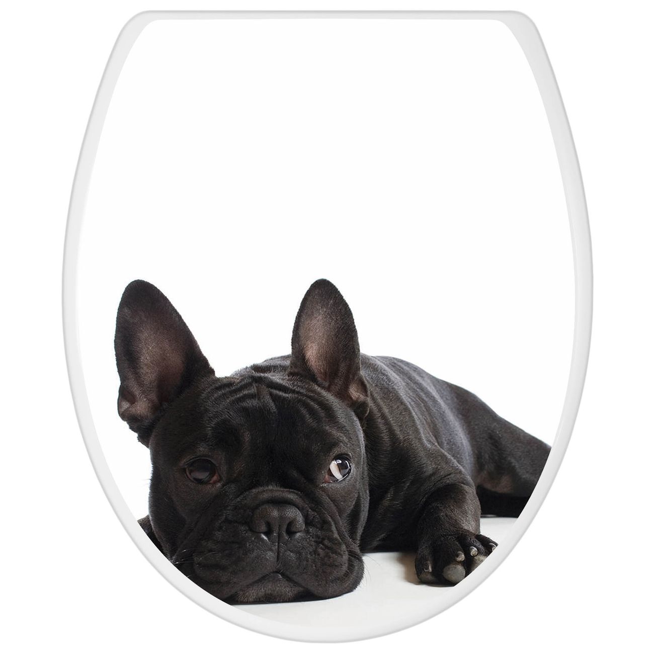Toilettendeckel weiß mit Absenkautomatik Motiv Bulldogge