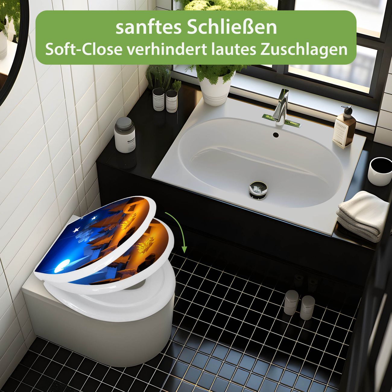 Toilettendeckel weiß mit Absenkautomatik Motiv Camping 2