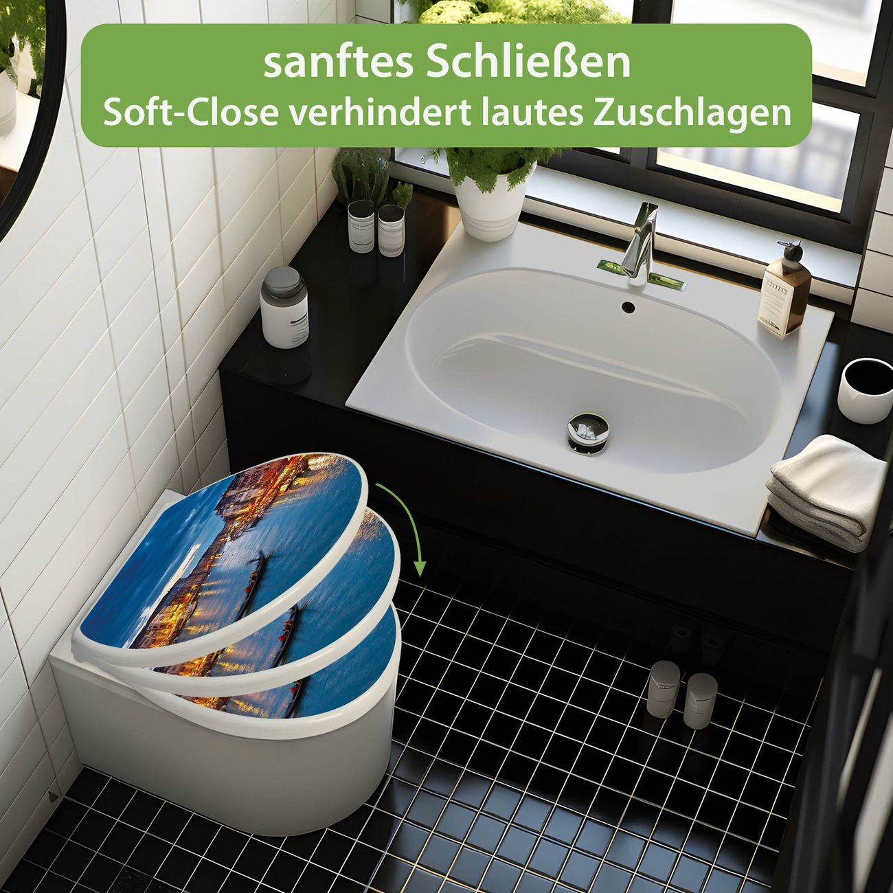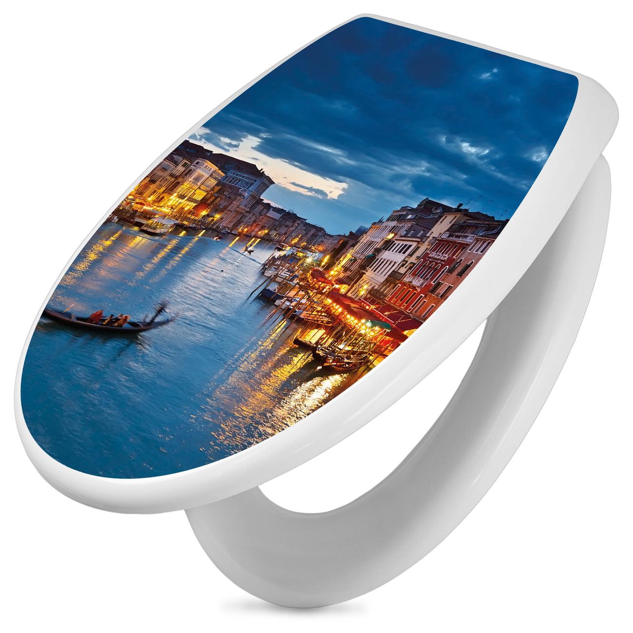 Toilettendeckel weiß mit Absenkautomatik Motiv Canale Grande Bei Nacht
