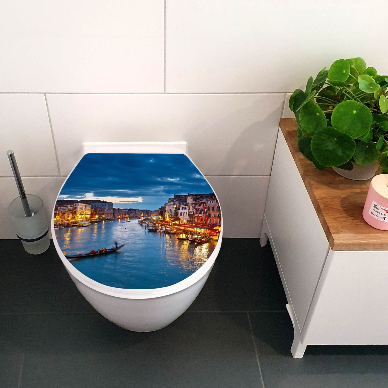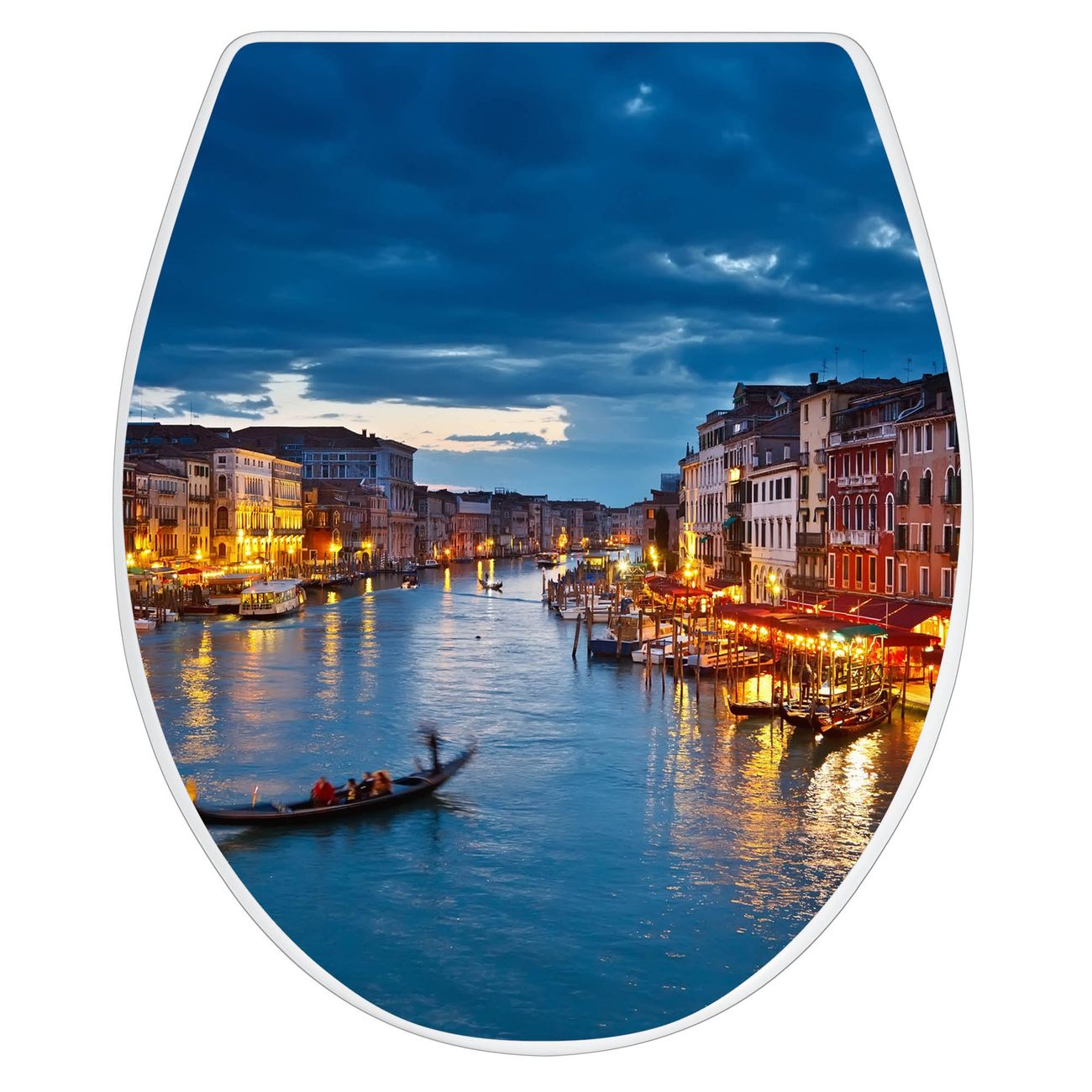 Toilettendeckel weiß mit Absenkautomatik Motiv Canale Grande Bei Nacht
