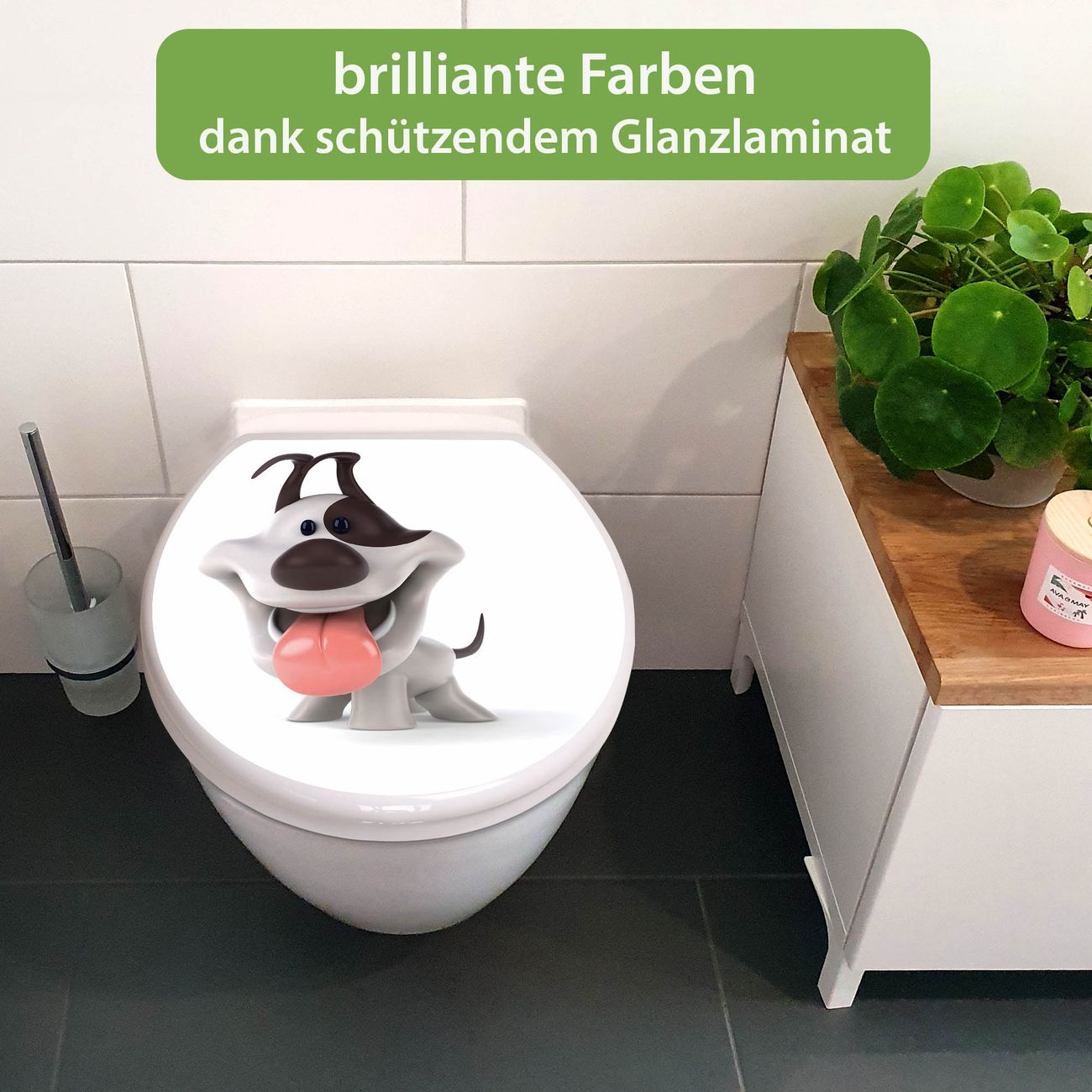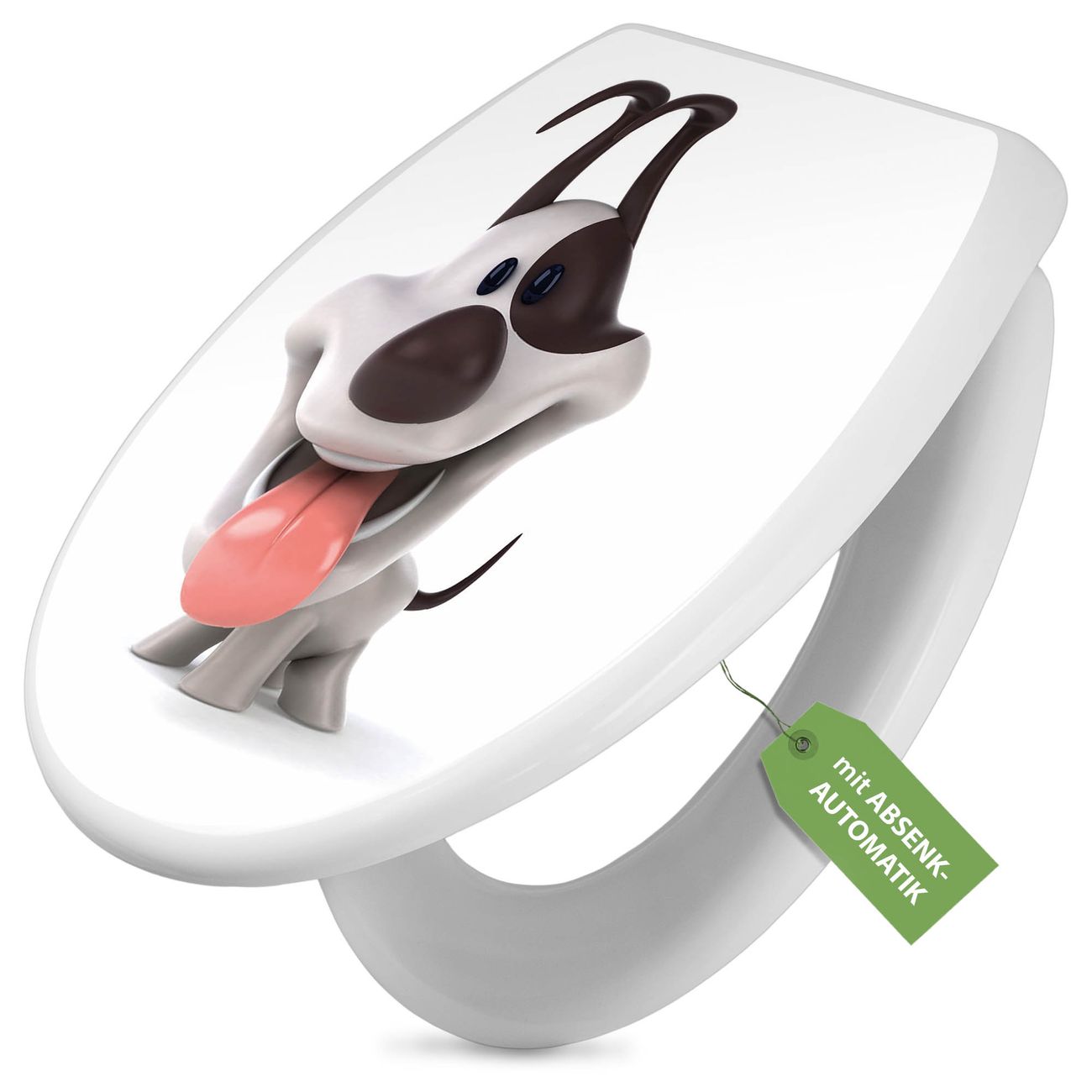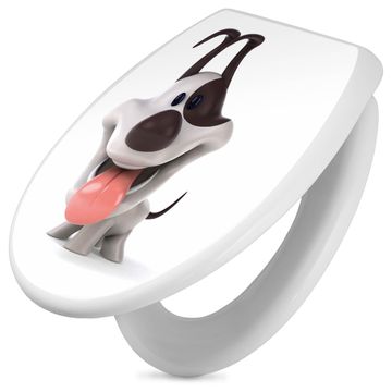 Toilettendeckel weiß mit Absenkautomatik Motiv Comic-Hund