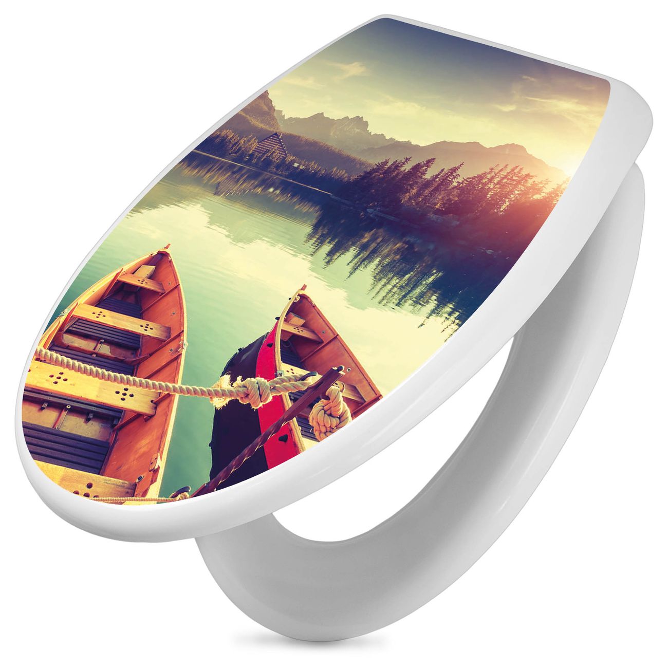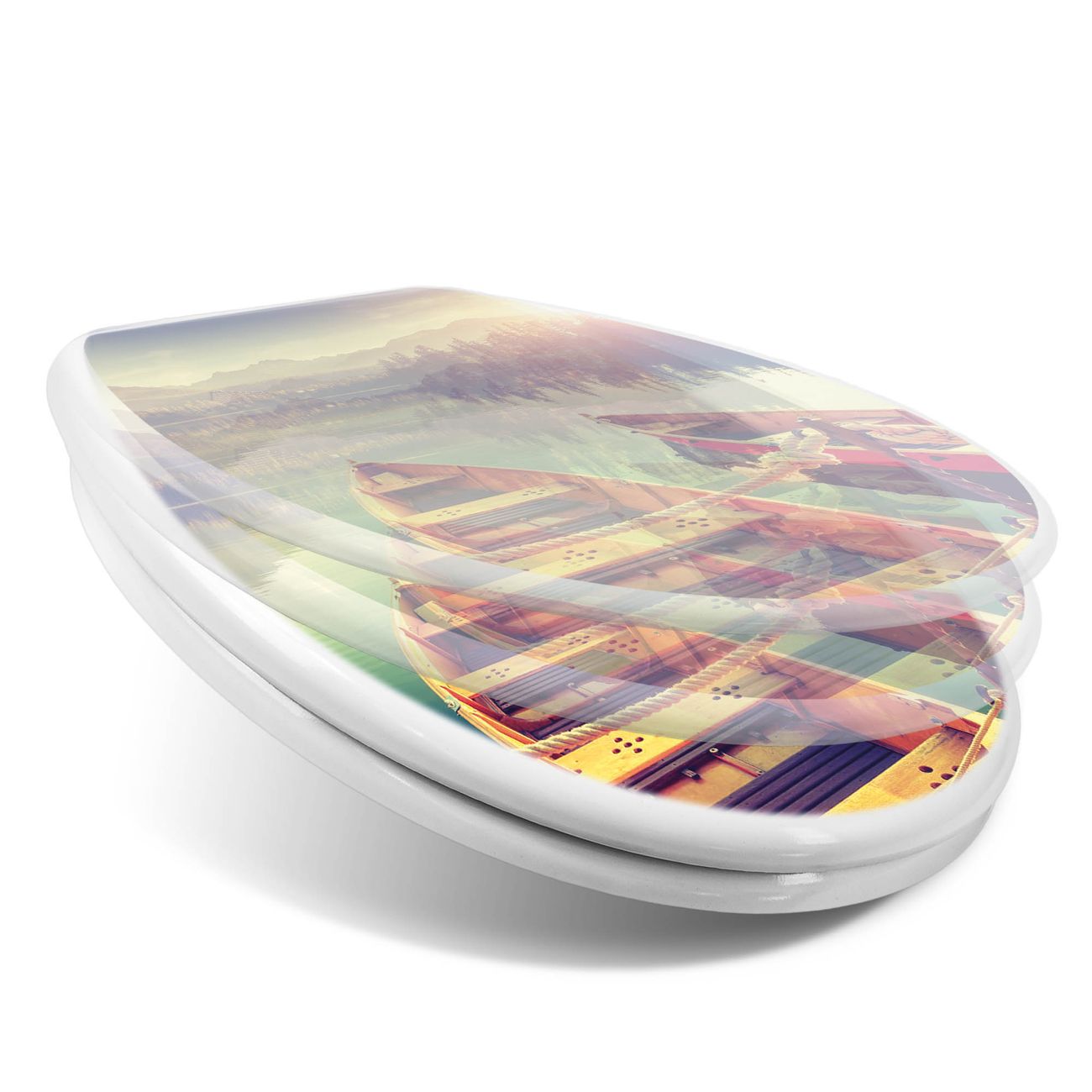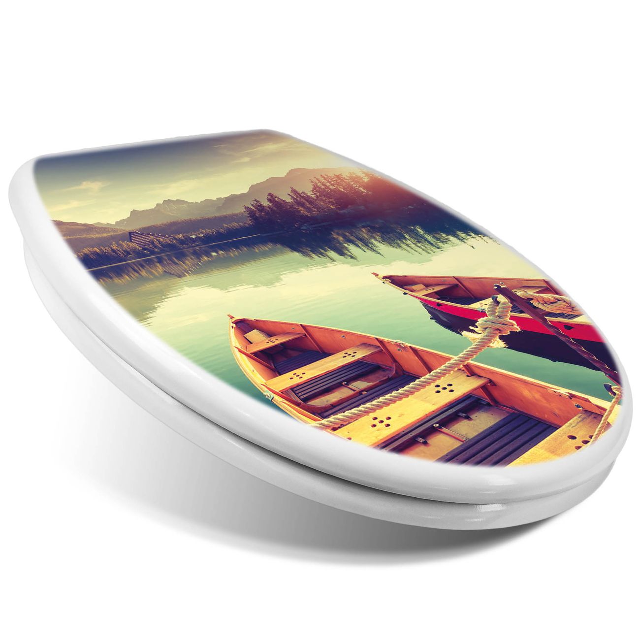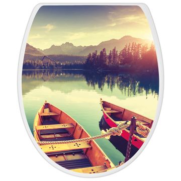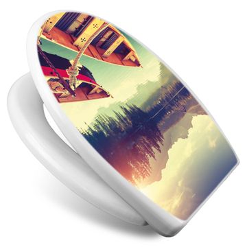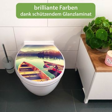 Toilettendeckel weiß mit Absenkautomatik Motiv Drei Boote Am Steg