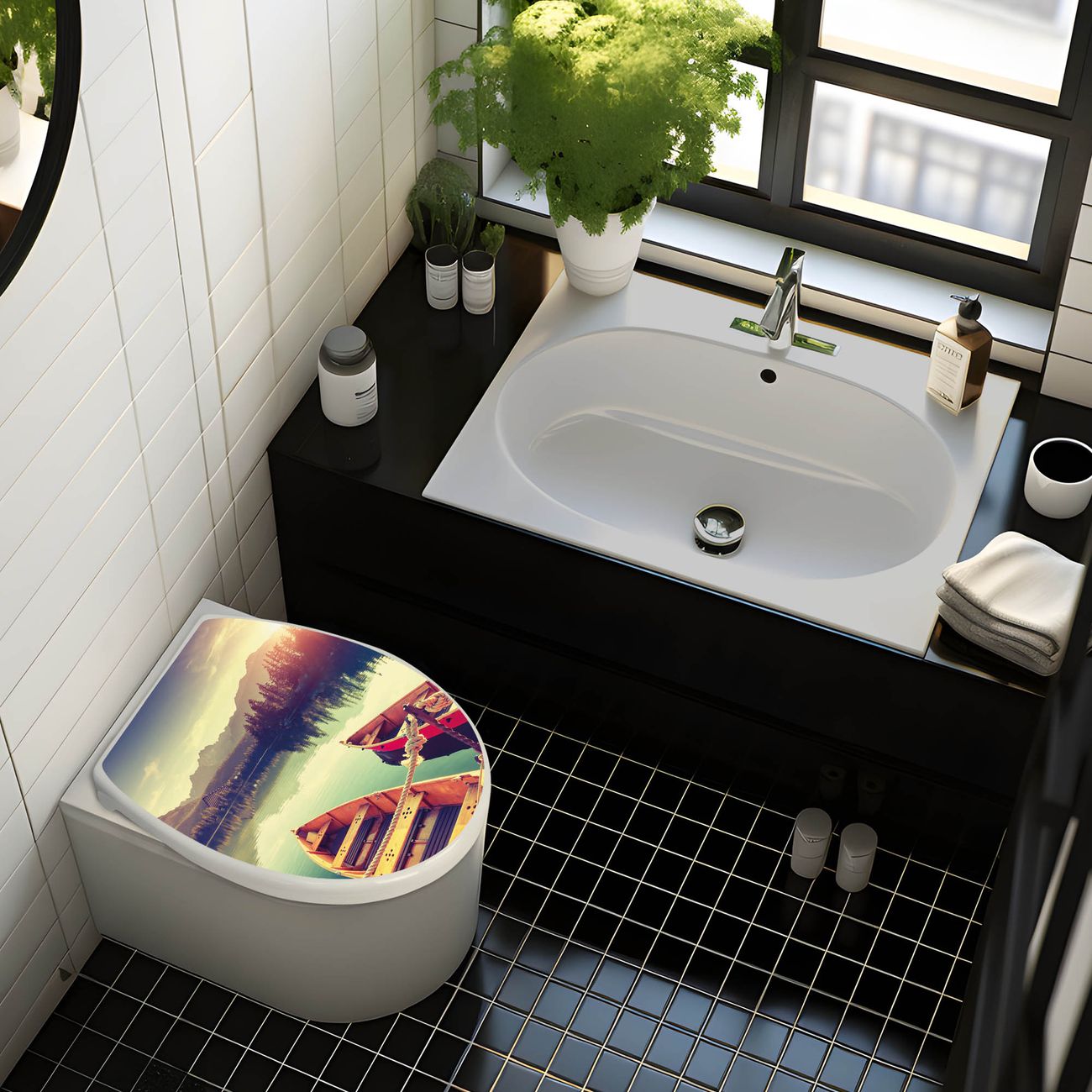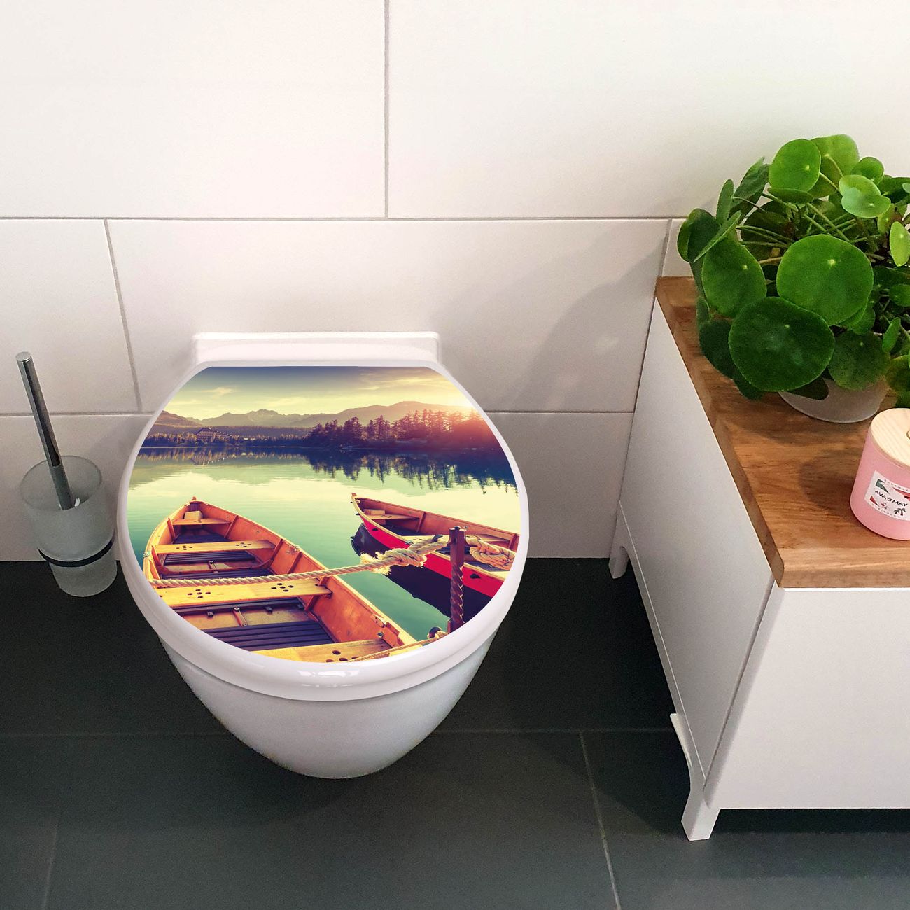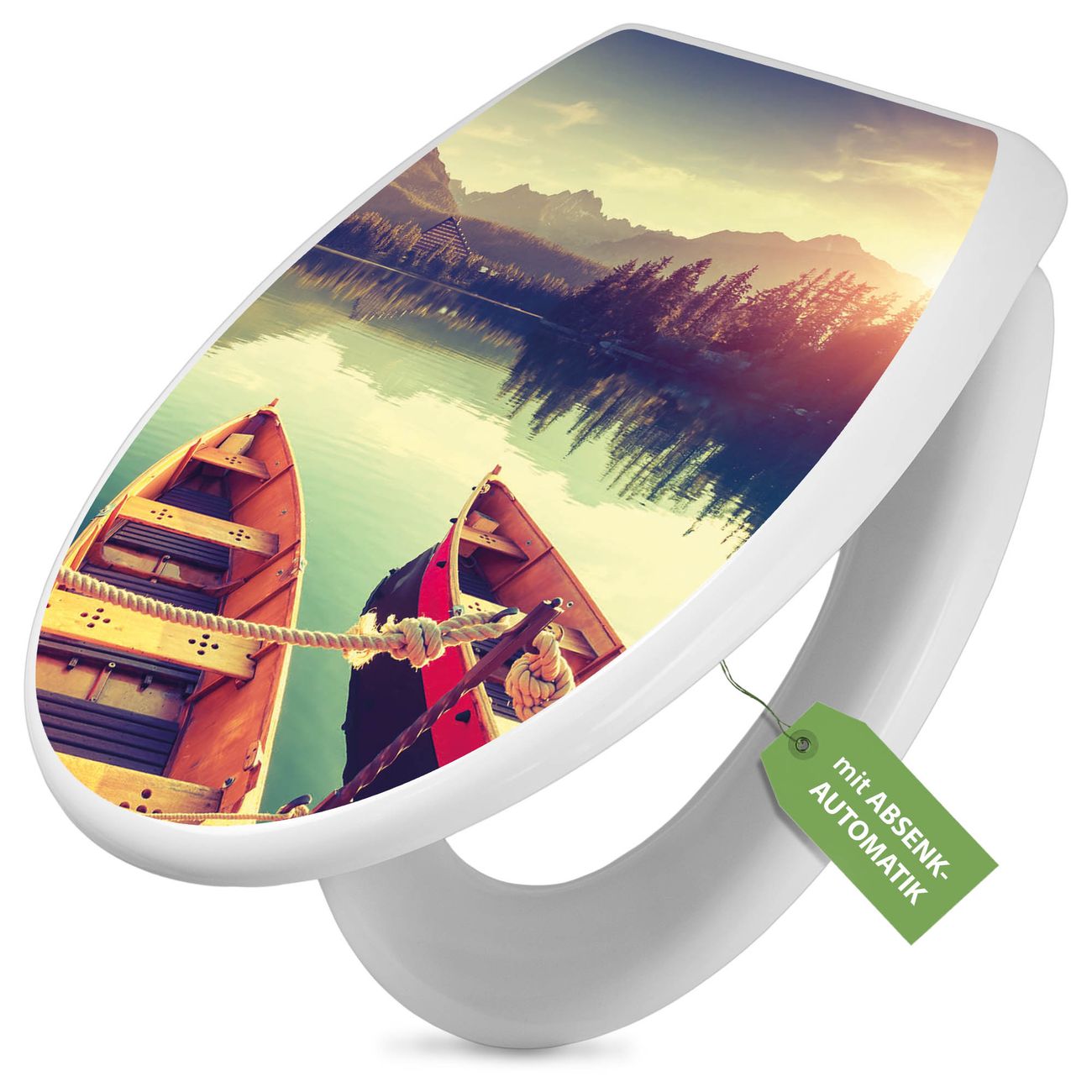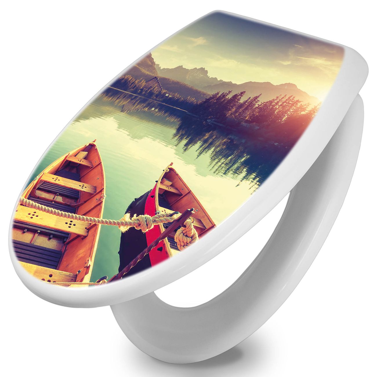 Toilettendeckel weiß mit Absenkautomatik Motiv Drei Boote Am Steg