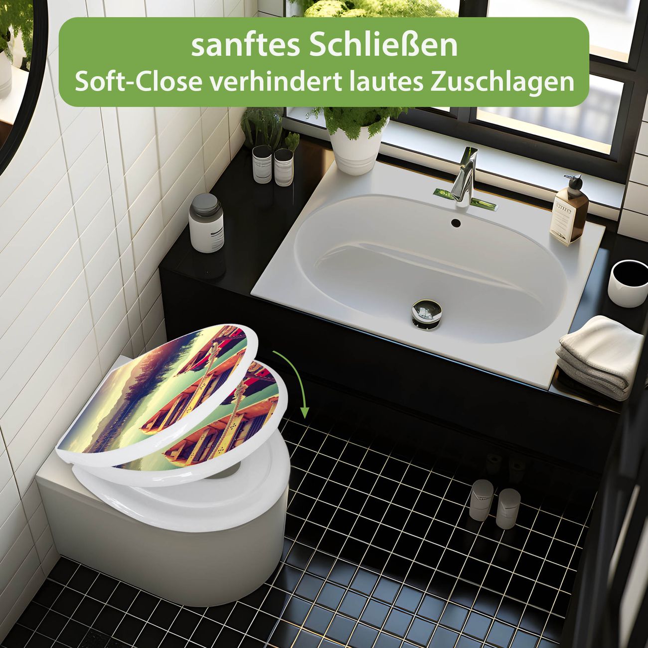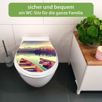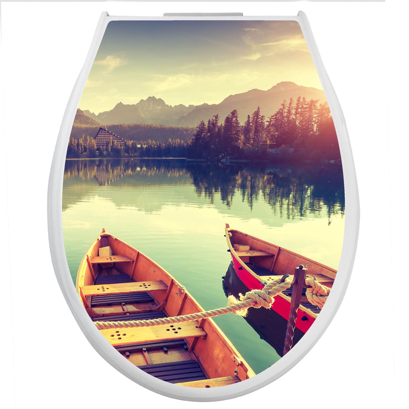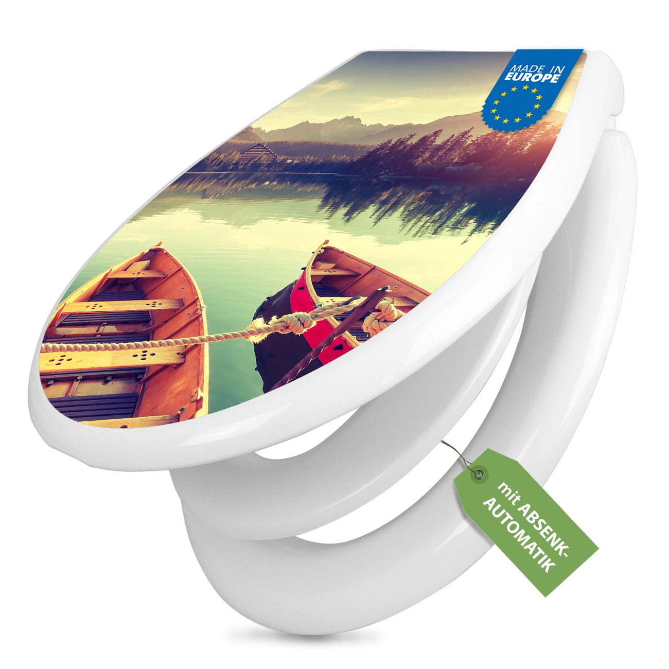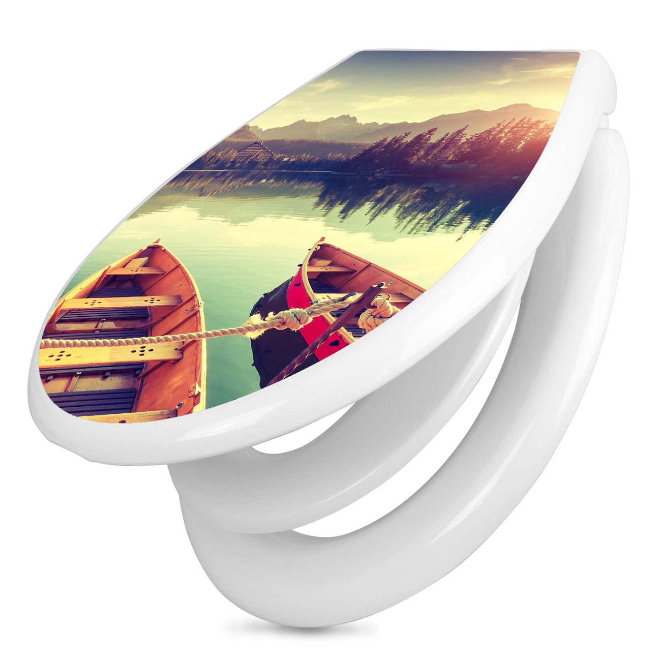Toilettendeckel weiß mit Absenkautomatik Motiv Drei Boote Am Steg