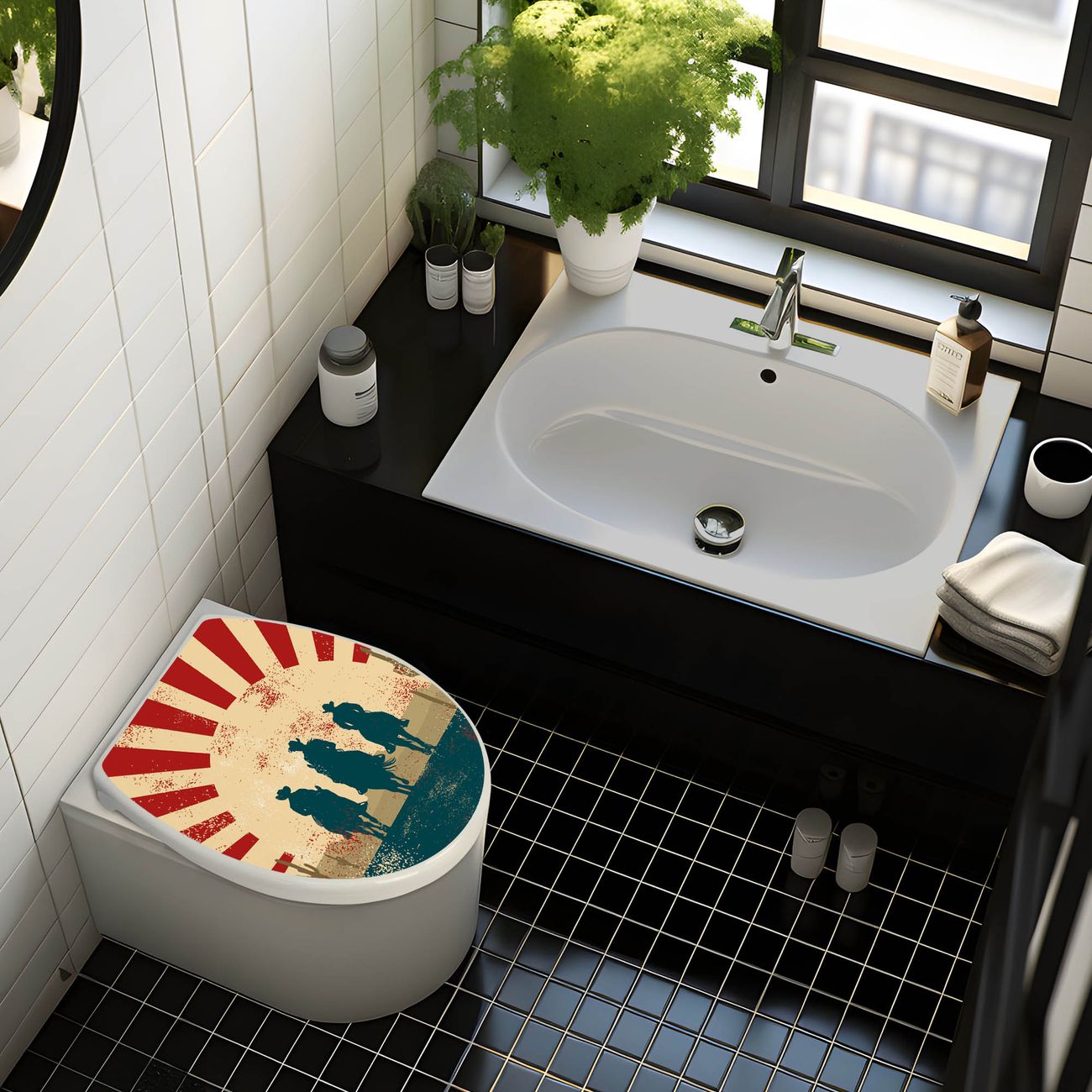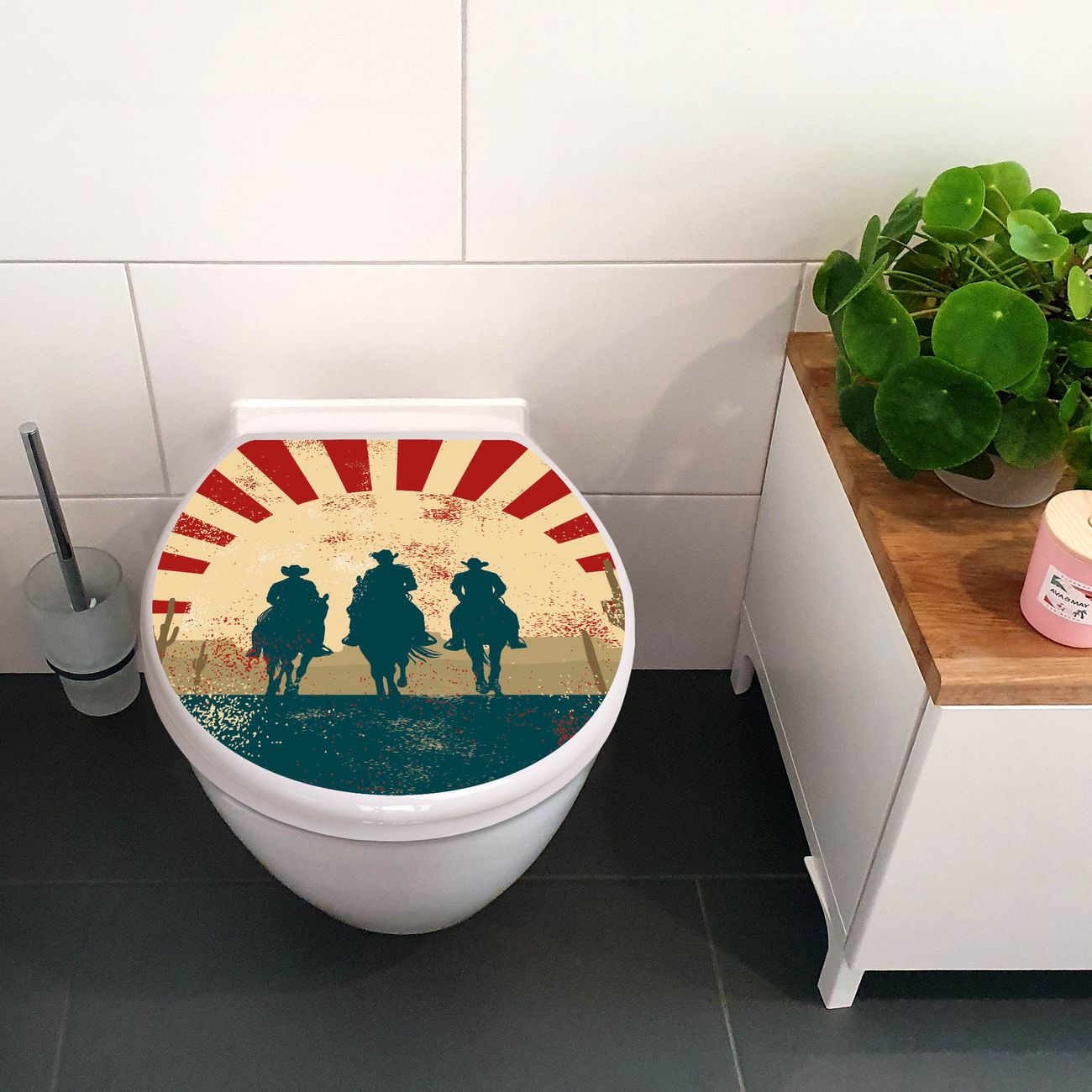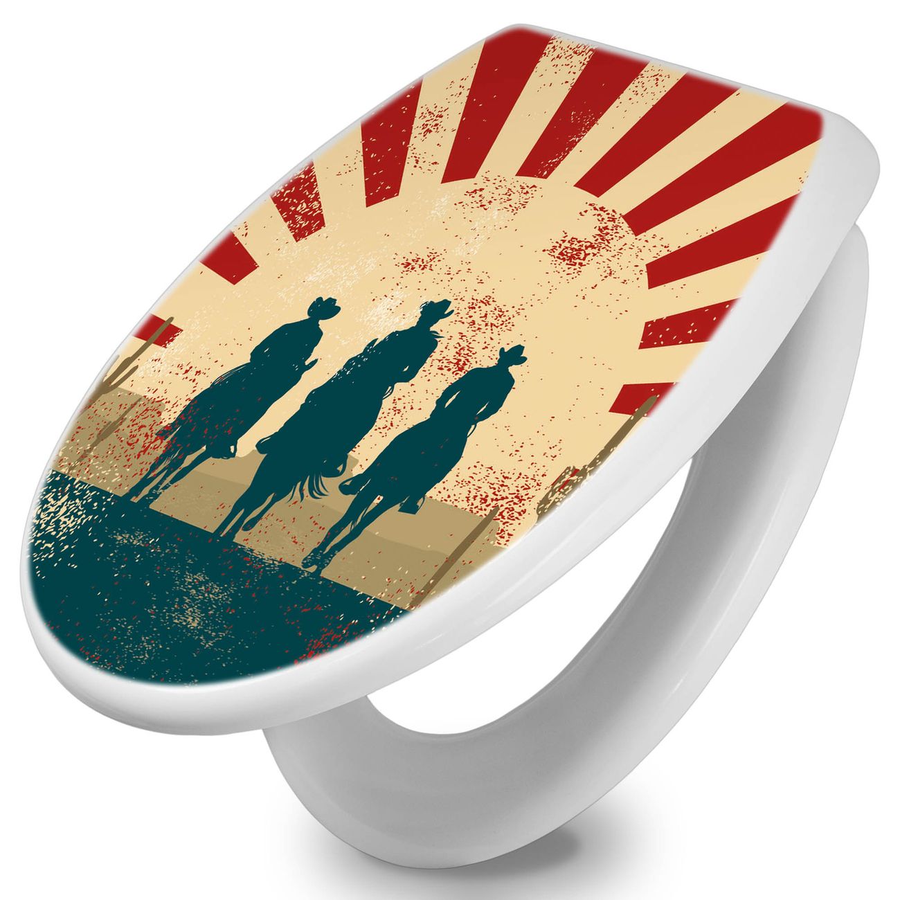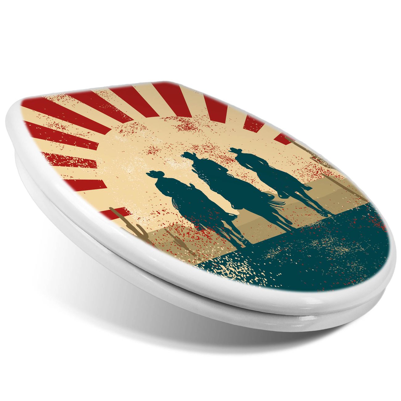 Toilettendeckel weiß mit Absenkautomatik Motiv Drei Cowboys