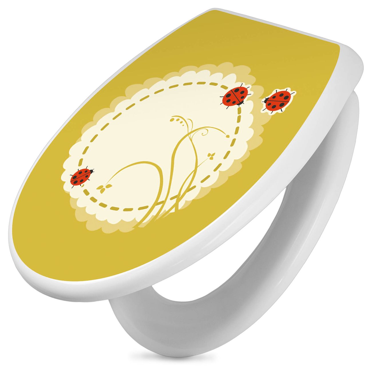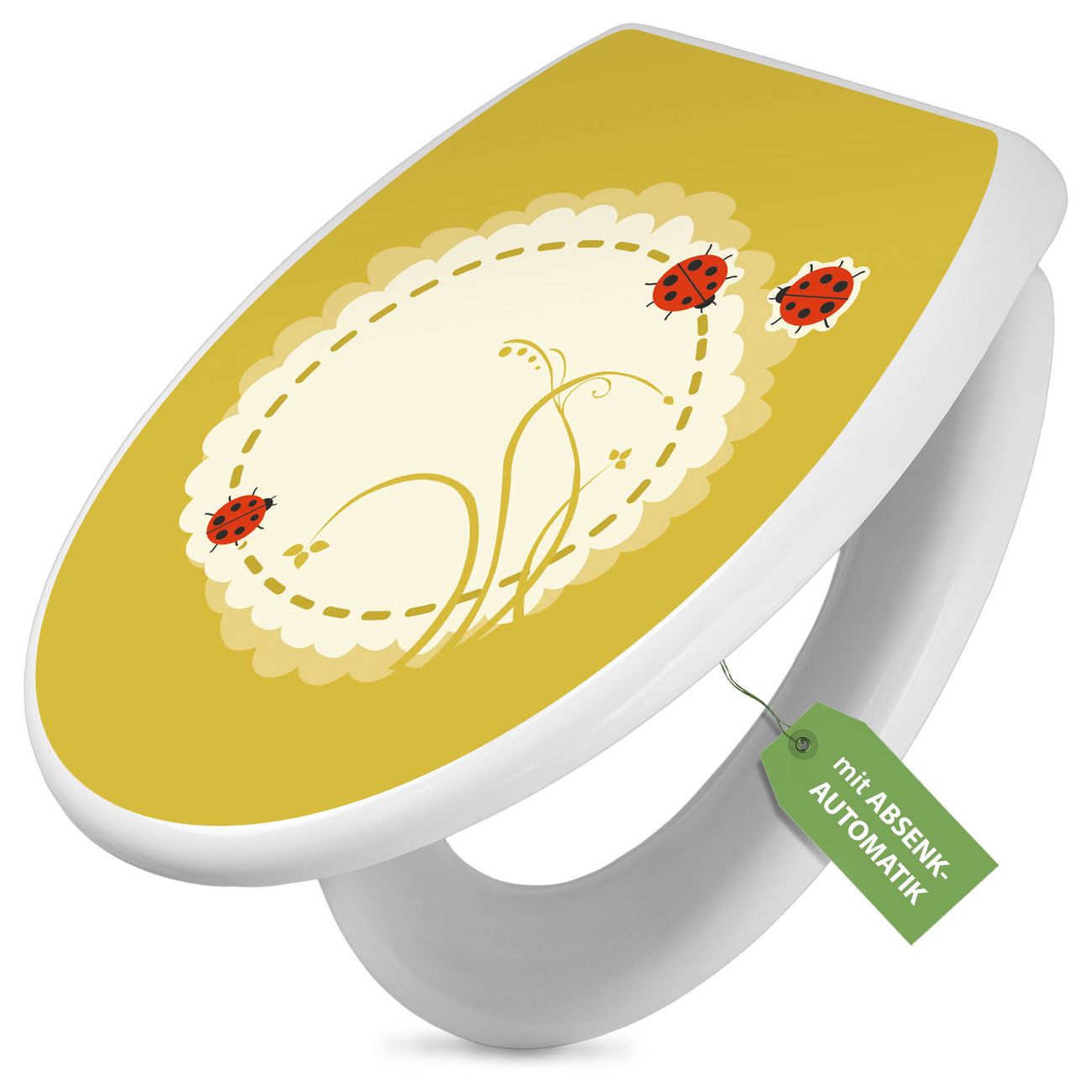 Toilettendeckel weiß mit Absenkautomatik Motiv Drei Marienkäfer