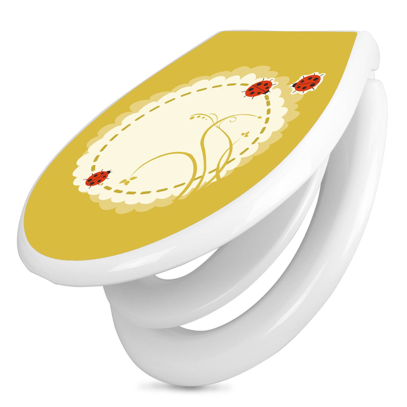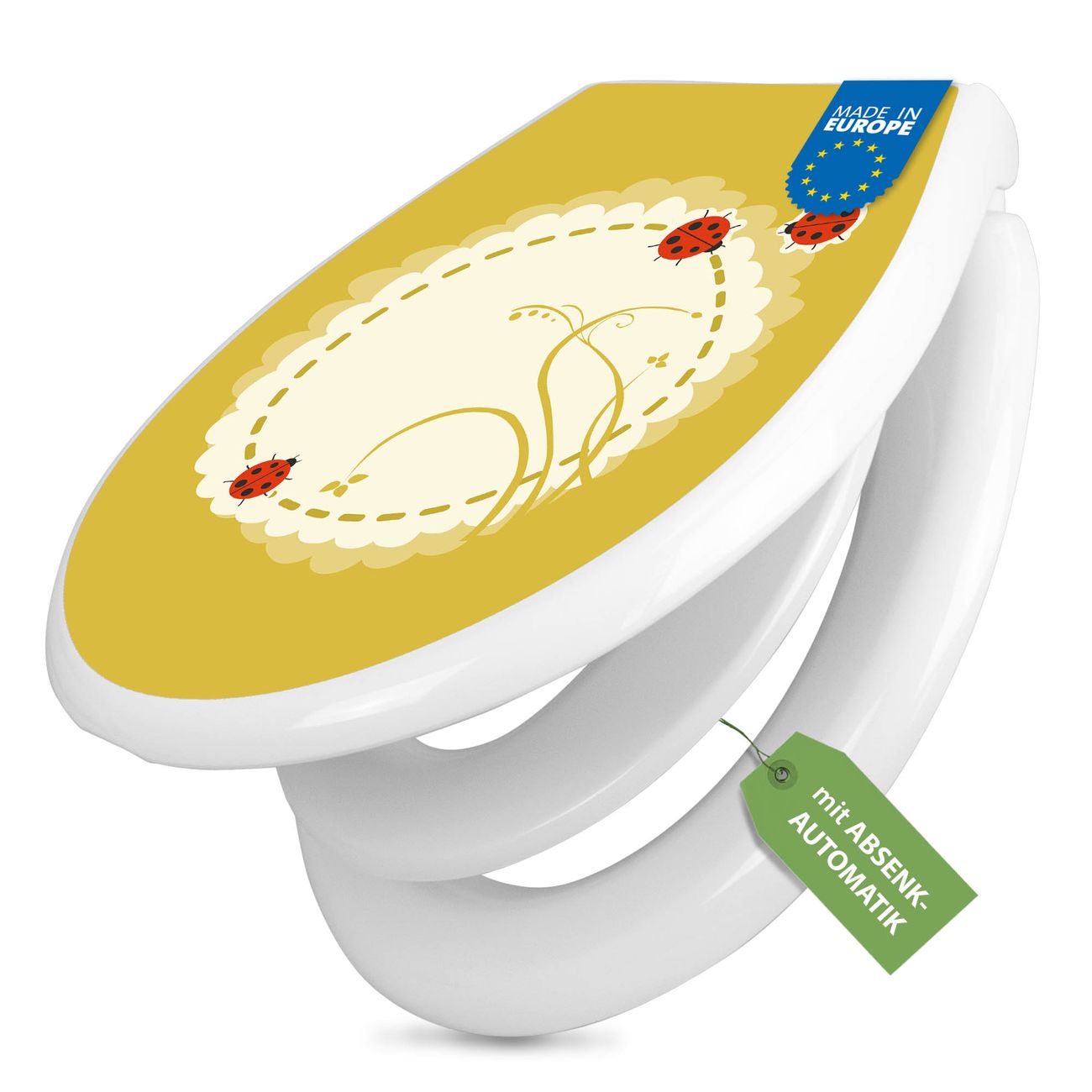 Toilettendeckel weiß mit Absenkautomatik Motiv Drei Marienkäfer