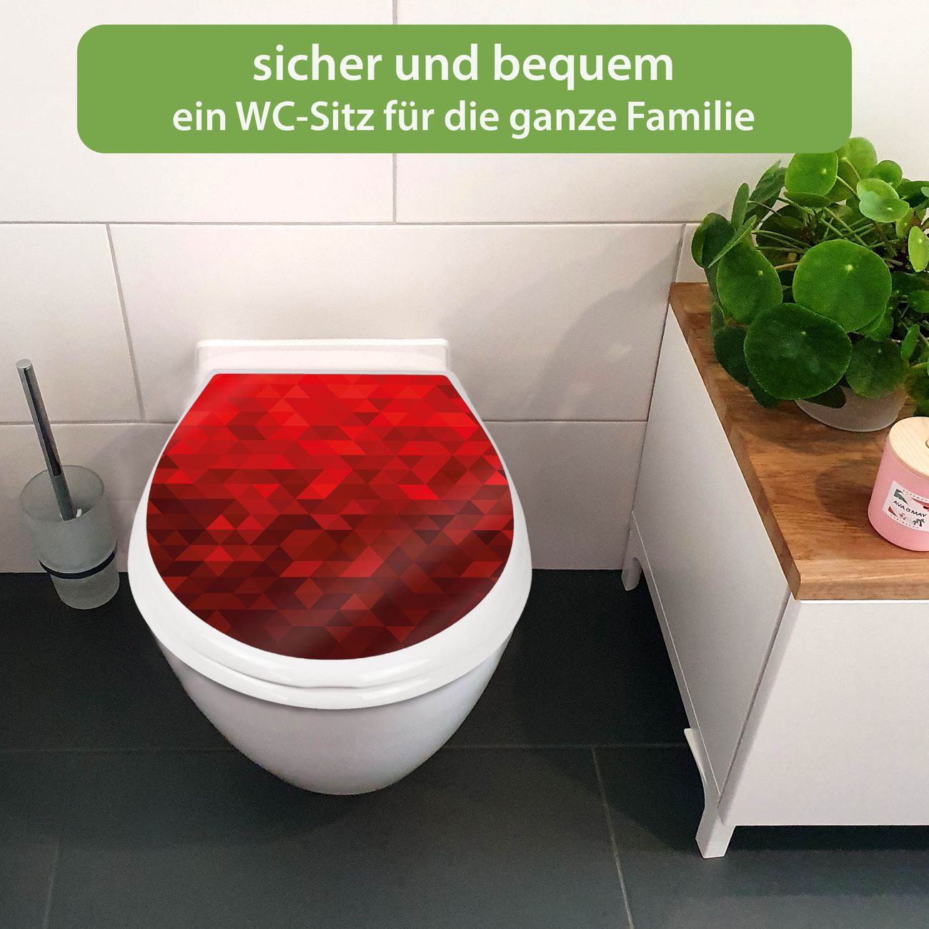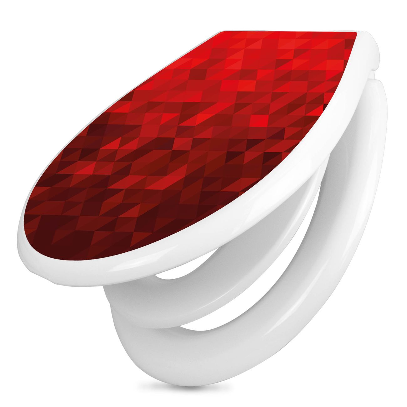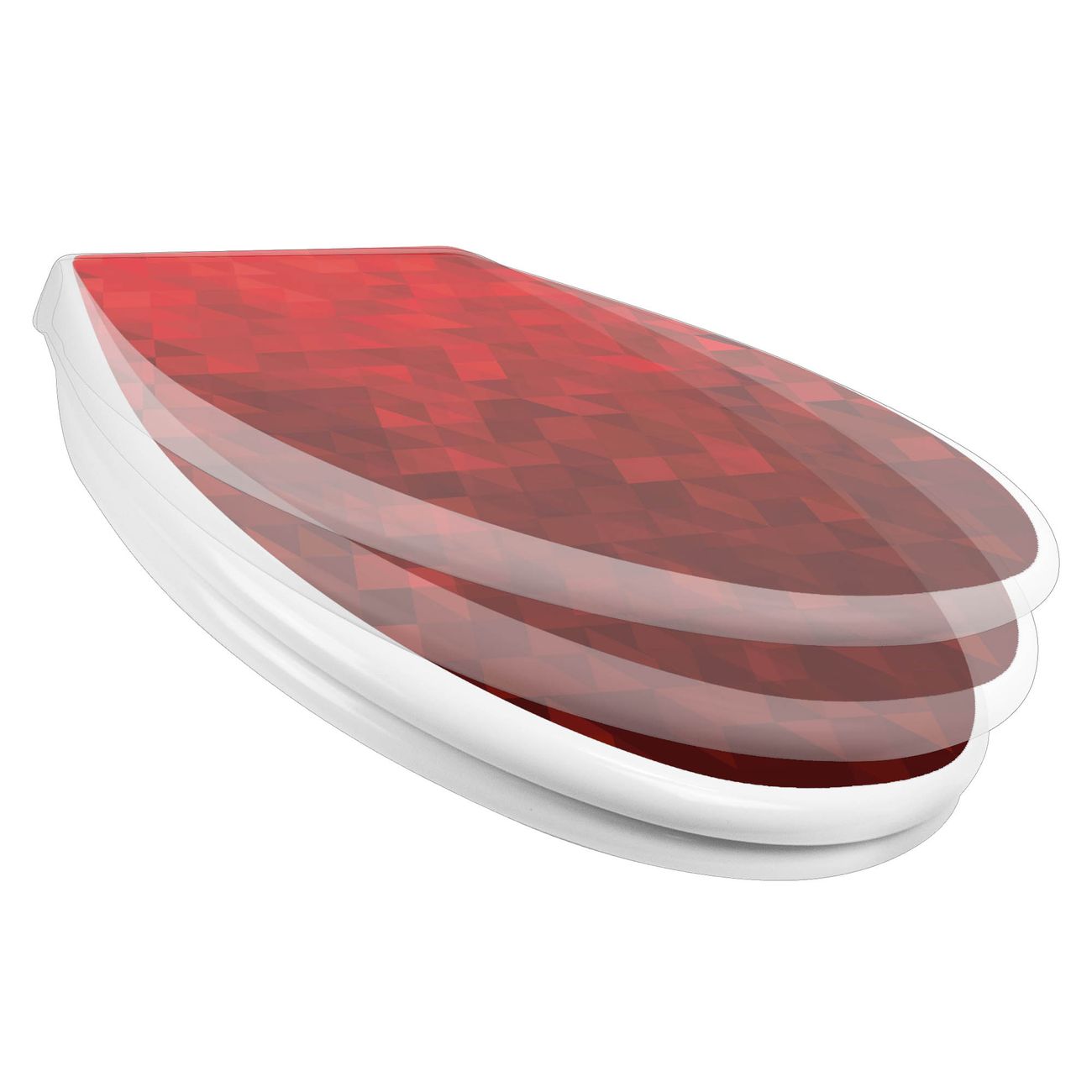 Toilettendeckel weiß mit Absenkautomatik Motiv Dreiecke Rot