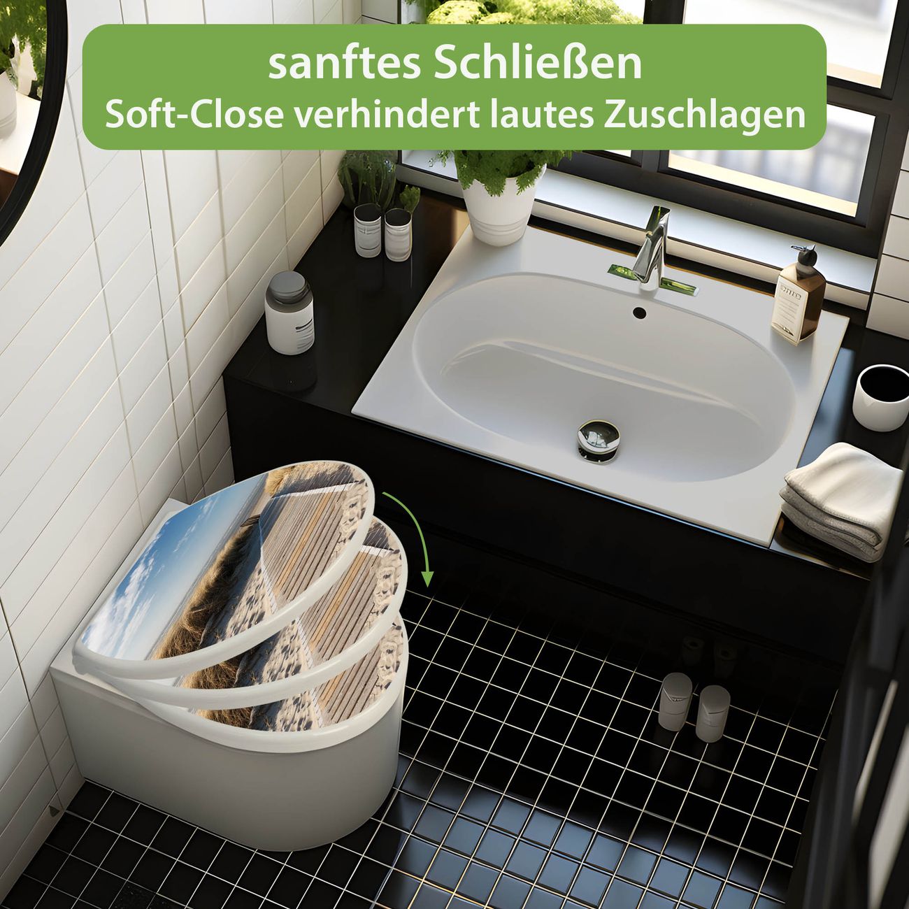 Toilettendeckel weiß mit Absenkautomatik Motiv Dünen