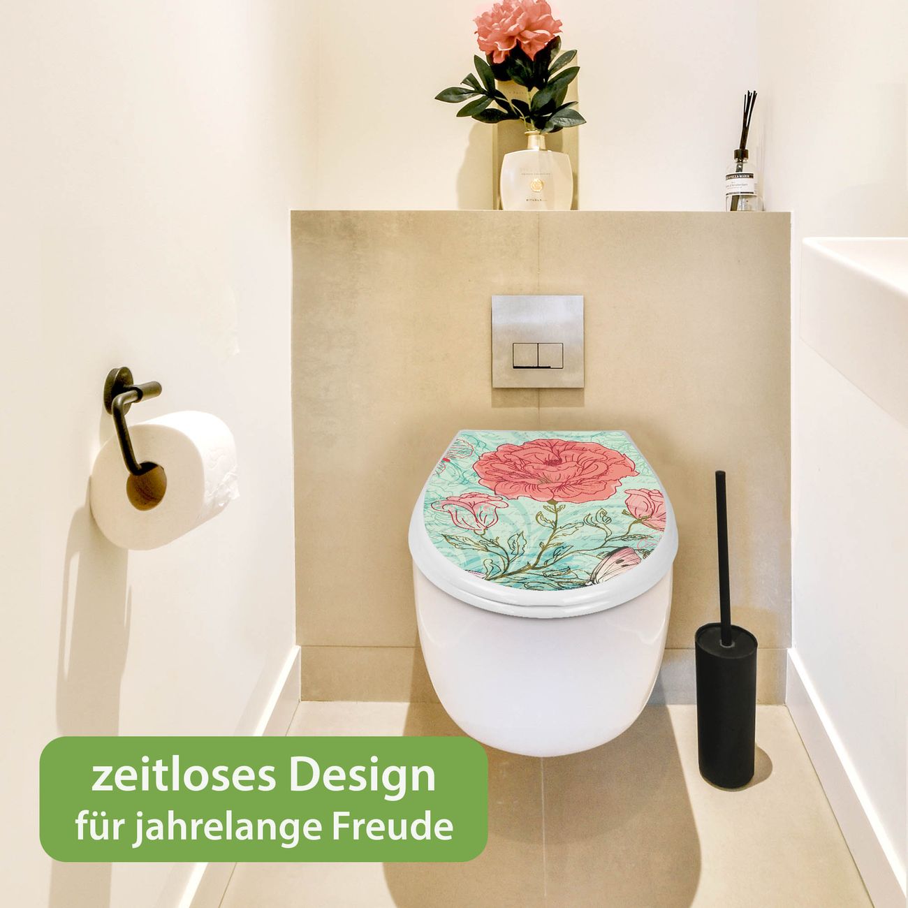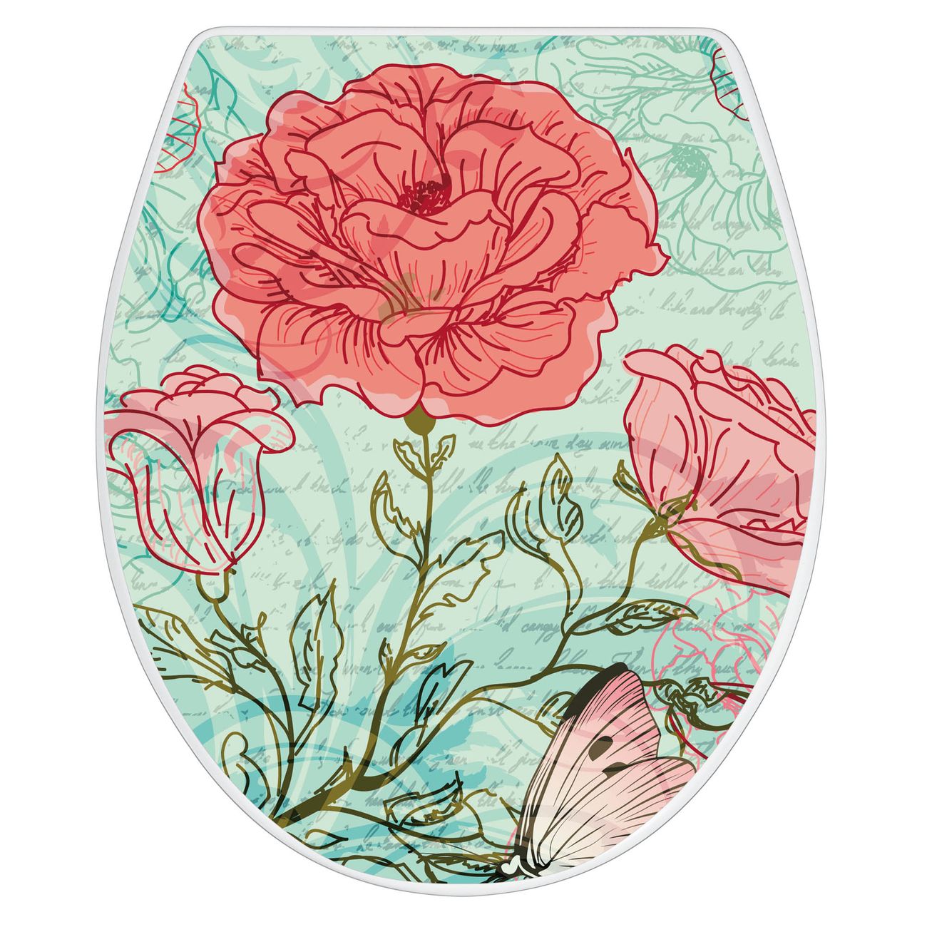Toilettendeckel weiß mit Absenkautomatik Motiv Eine Rose Ist Eine Rose