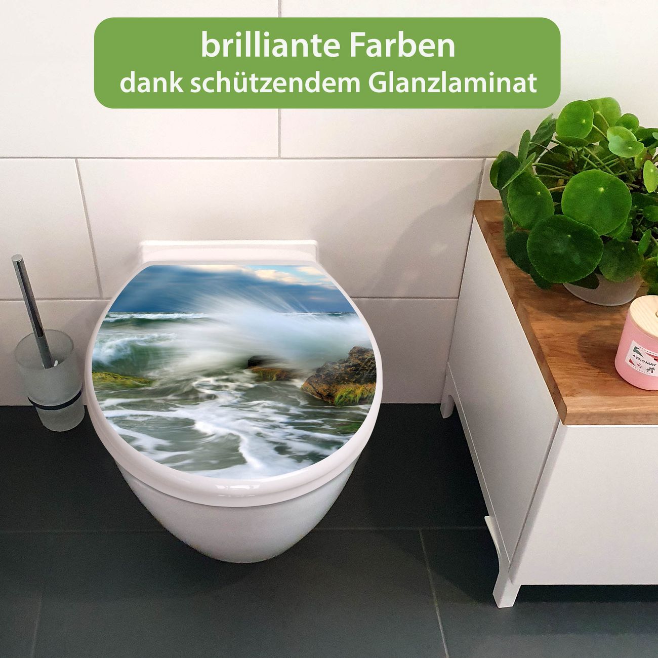 FUNKTION: Mit dem banjado Toilettendeckel mit Absenkautomatik verbinden Sie Design mit Funktionalität. Sie erhalten den WC Sitz in bewährt guter Qualität mit Edelstahl Scharnieren und Montagematerial. DESIGN: Der Klodeckel hat eine ansprechende Optik, eine besondere Form und ist sehr stabil. Das Motiv besteht aus einer farbbrillianten Motivfolie, die durch ein Schutzlaminat zusätzlich vor Kratzern schützt. DETAILS: Der Toilettensitz besteht aus Duroplast, die Scharniere sind aus hochwertigem Edelstahl, Materialien die Ihnen eine leichte und hygienische Reinigung ermöglichen. Die Gesamtgröße beträgt 37,3cm x 45cm x 5cm, die Grundfarbe ist weiß. NUTZEN: Mit Hilfe der detaillierten Aufbauanleitung ermöglichen wir eine schnelle und unkomplizierte Montage. Die banjado Klobrille ist universell geeignet für alle gängigen WC Schüsseln. Der Lochabstand zur Befestigung kann variable eingestellt werden. BANJADO: Ihr WC-Deckel wird in Sachsen in einer kleinen Manufaktur von Hand veredelt. Die Motivfolie ist lösungsmittelfrei und schutzlaminiert, für einen langen Halt. Wir wünschen viel Freude bei der Auswahl eines schönen Motivs.