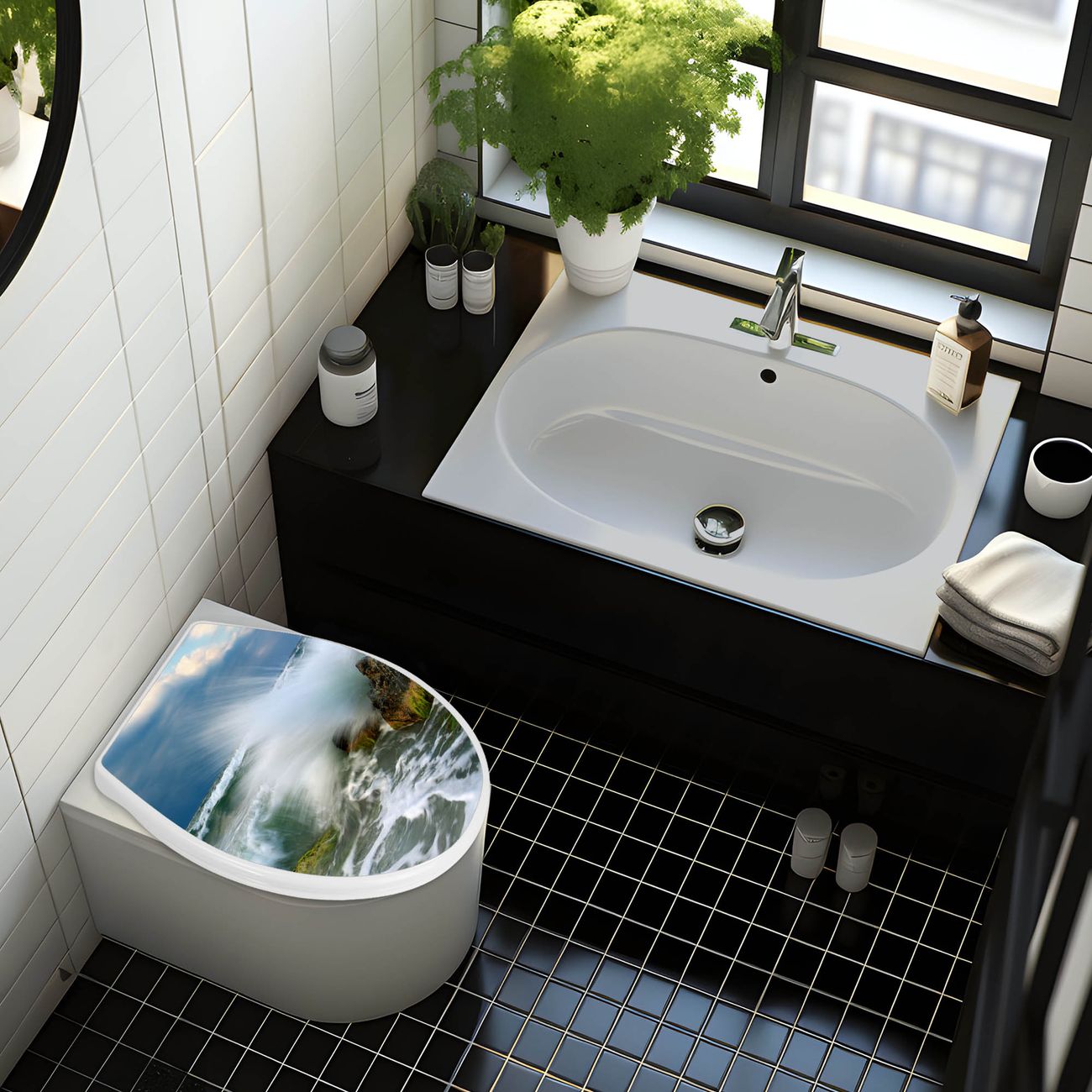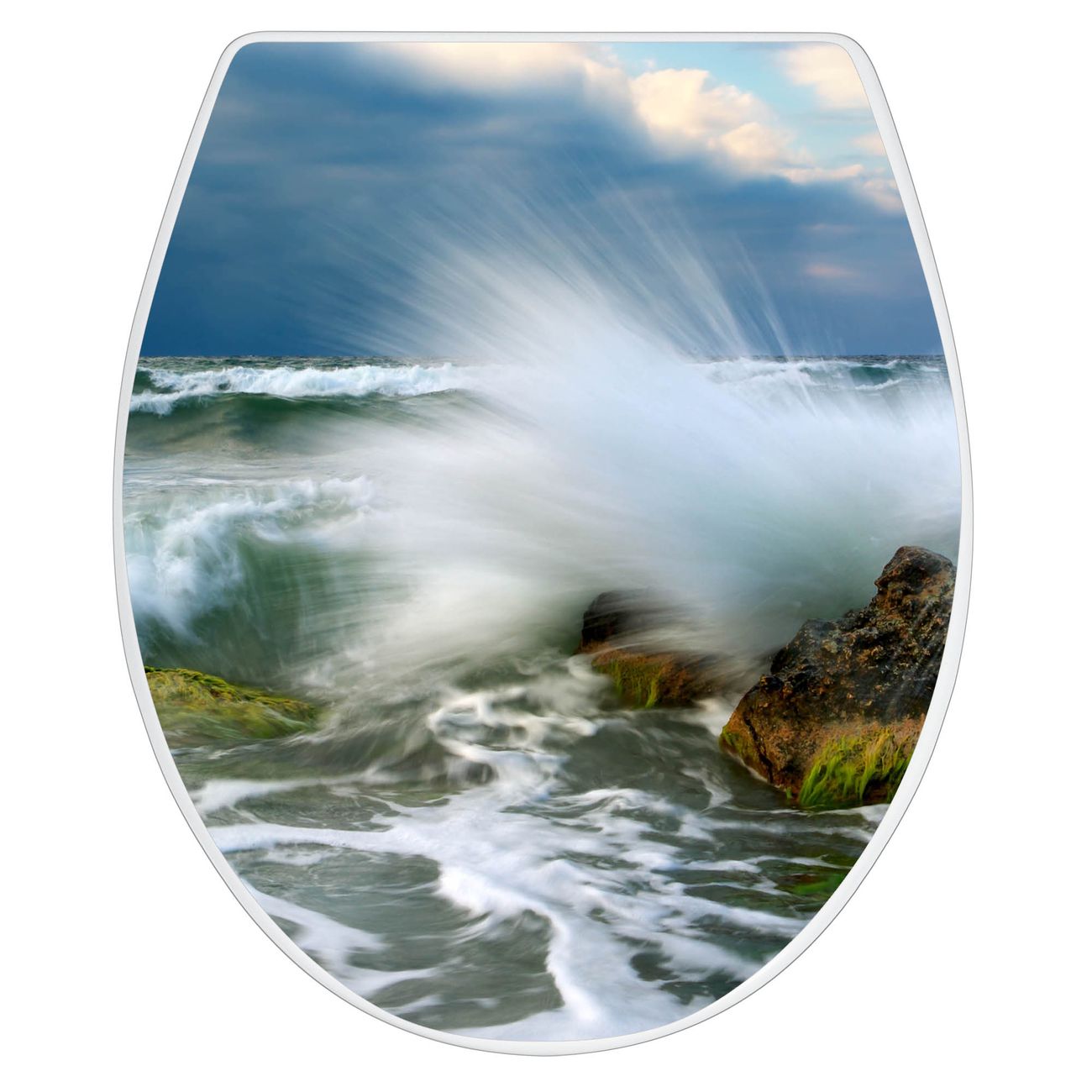 Toilettendeckel weiß mit Absenkautomatik Motiv Einsteinwelle
