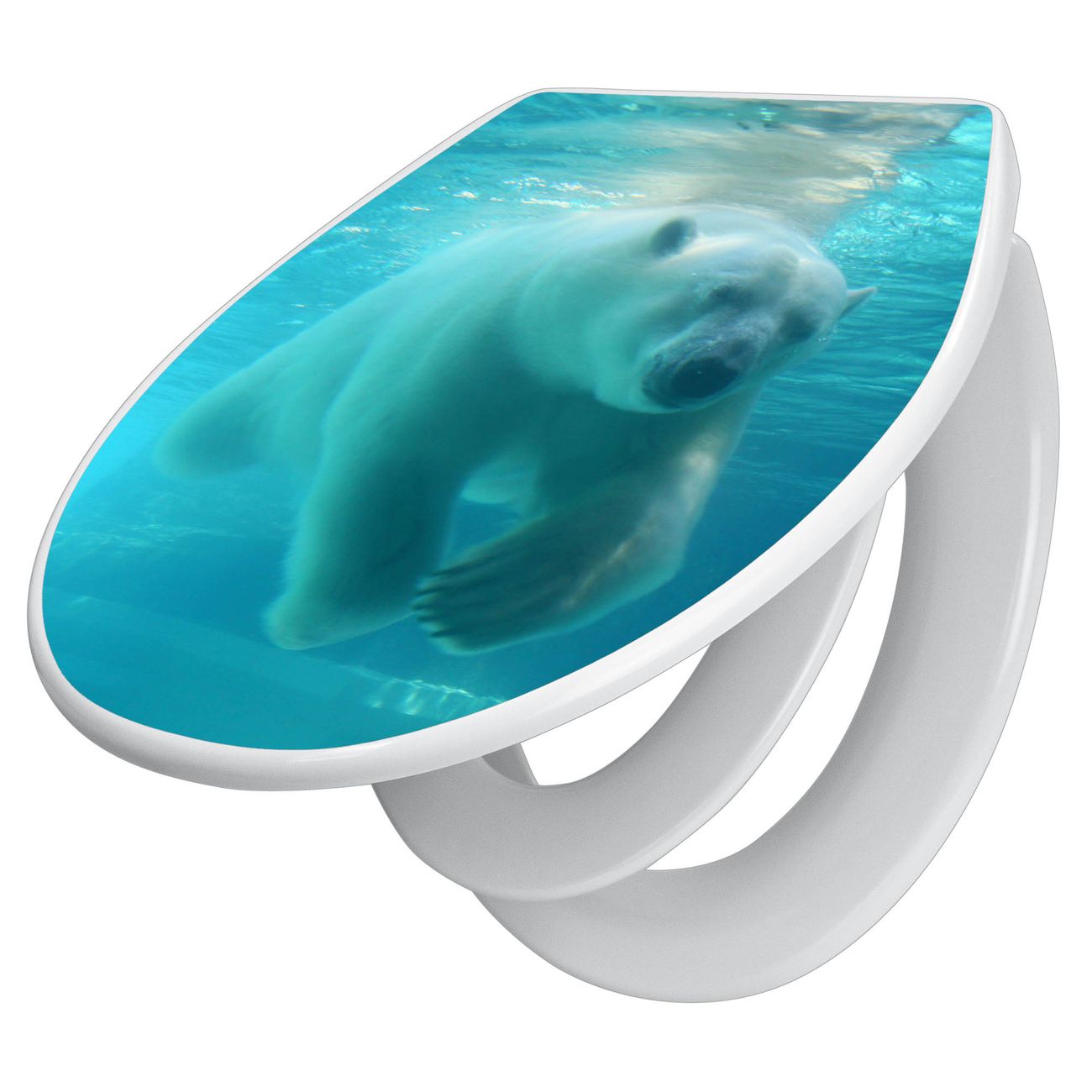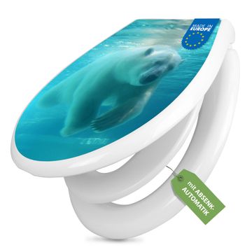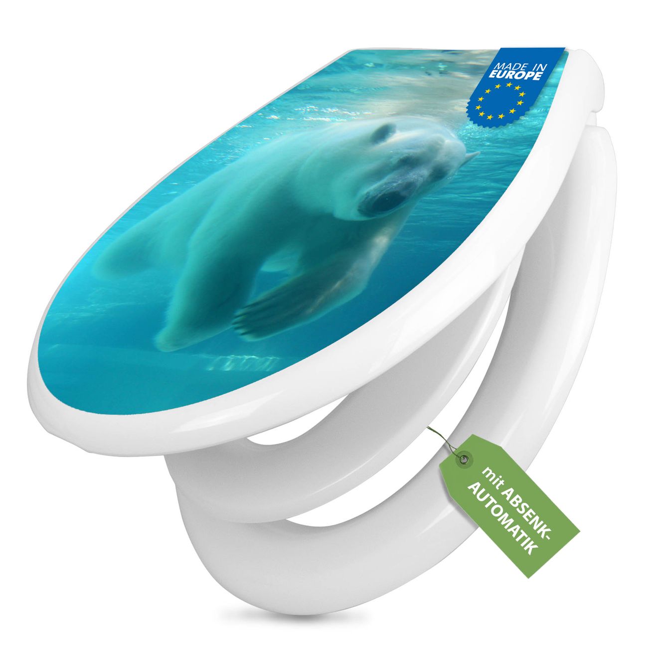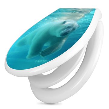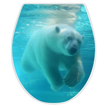 Toilettendeckel weiß mit Absenkautomatik Motiv Eisbär unter Wasser