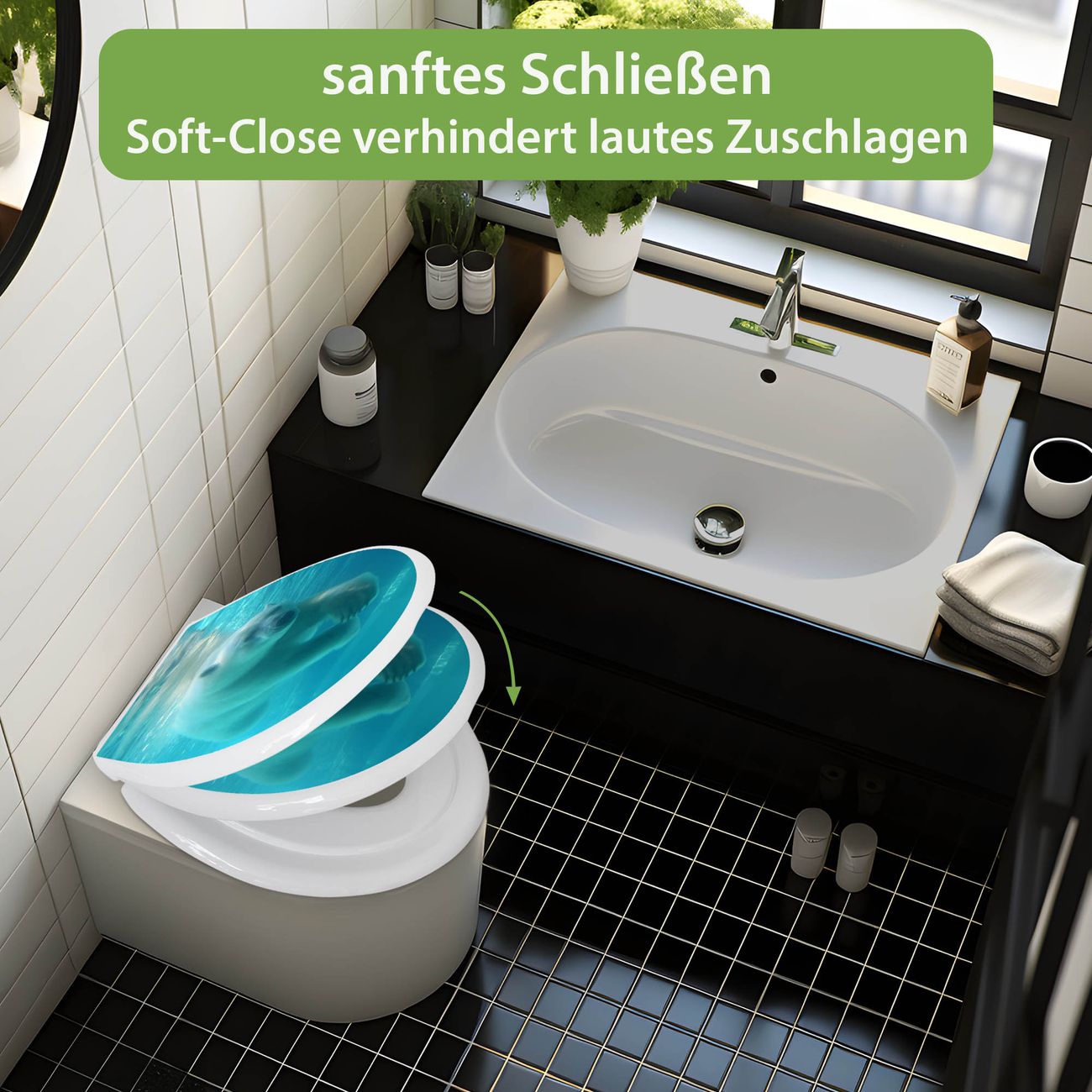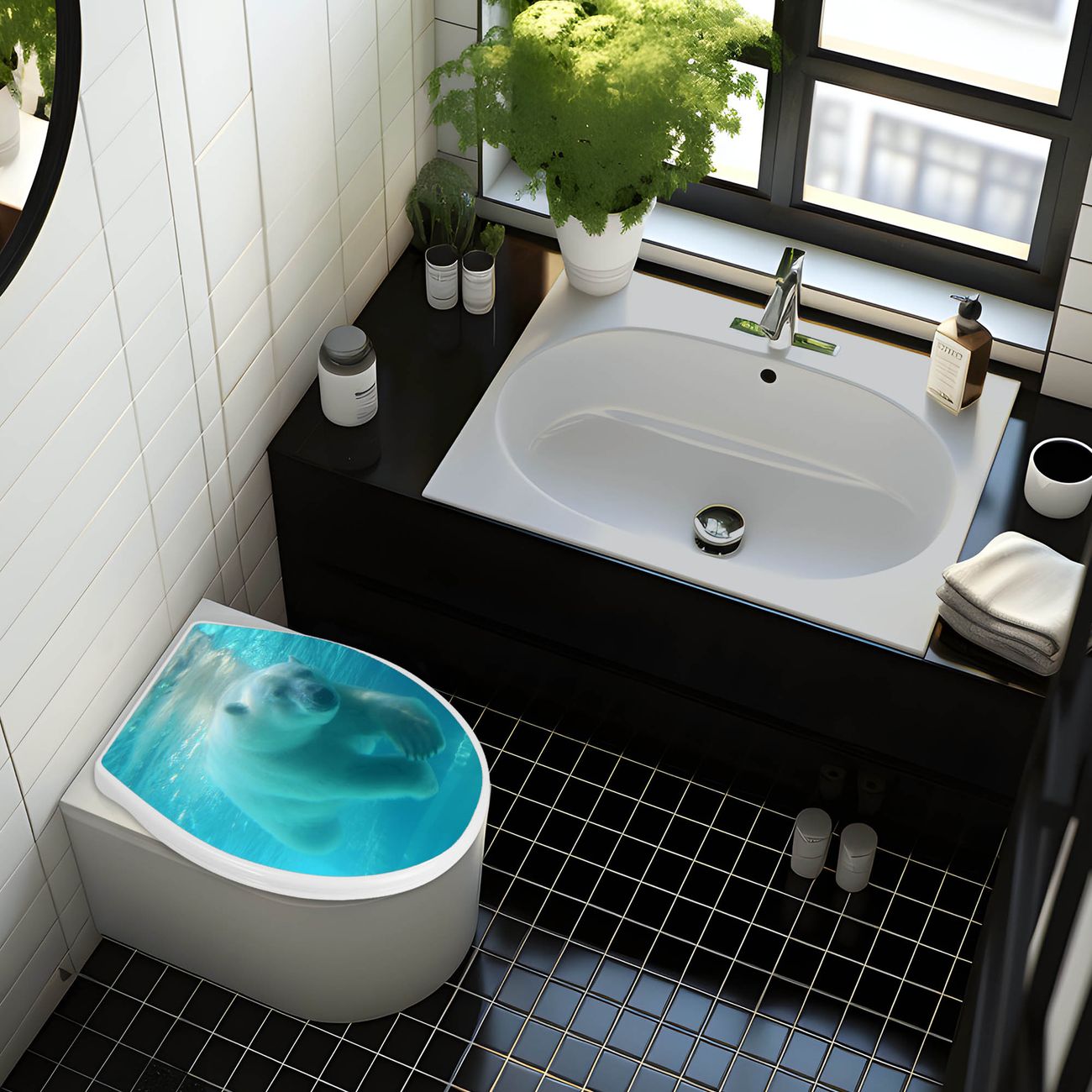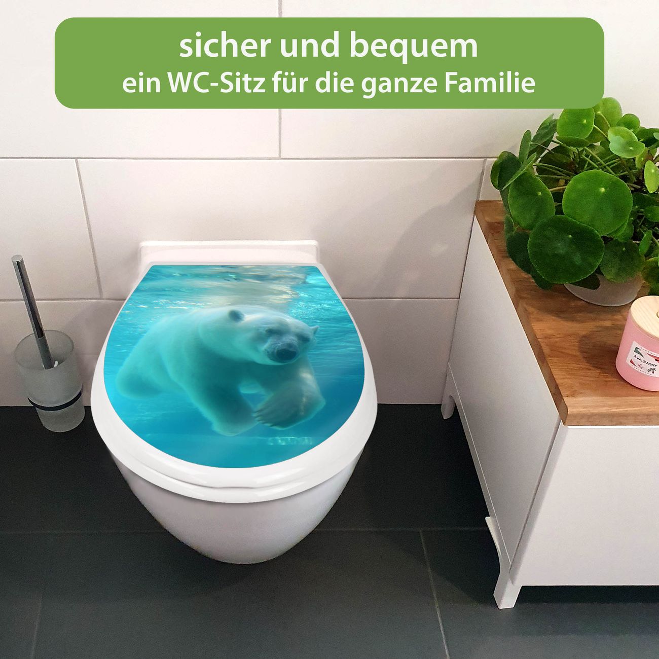 Toilettendeckel weiß mit Absenkautomatik Motiv Eisbär unter Wasser