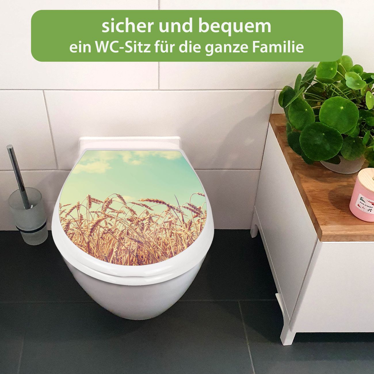 Toilettendeckel weiß mit Absenkautomatik Motiv Erntezeit