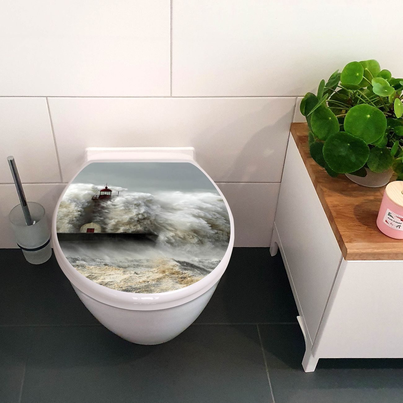 Toilettendeckel weiß mit Absenkautomatik Motiv Fels In Der Brandung
