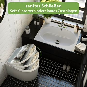 FUNKTION: Mit dem banjado Toilettendeckel mit Absenkautomatik verbinden Sie Design mit Funktionalität. Sie erhalten den WC Sitz in bewährt guter Qualität mit Edelstahl Scharnieren und Montagematerial. DESIGN: Der Klodeckel hat eine ansprechende Optik, eine besondere Form und ist sehr stabil. Das Motiv besteht aus einer farbbrillianten Motivfolie, die durch ein Schutzlaminat zusätzlich vor Kratzern schützt. DETAILS: Der Toilettensitz besteht aus Duroplast, die Scharniere sind aus hochwertigem Edelstahl, Materialien die Ihnen eine leichte und hygienische Reinigung ermöglichen. Die Gesamtgröße beträgt 37,3cm x 45cm x 5cm, die Grundfarbe ist weiß. NUTZEN: Mit Hilfe der detaillierten Aufbauanleitung ermöglichen wir eine schnelle und unkomplizierte Montage. Die banjado Klobrille ist universell geeignet für alle gängigen WC Schüsseln. Der Lochabstand zur Befestigung kann variable eingestellt werden. BANJADO: Ihr WC-Deckel wird in Sachsen in einer kleinen Manufaktur von Hand veredelt. Die Motivfolie ist lösungsmittelfrei und schutzlaminiert, für einen langen Halt. Wir wünschen viel Freude bei der Auswahl eines schönen Motivs.