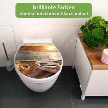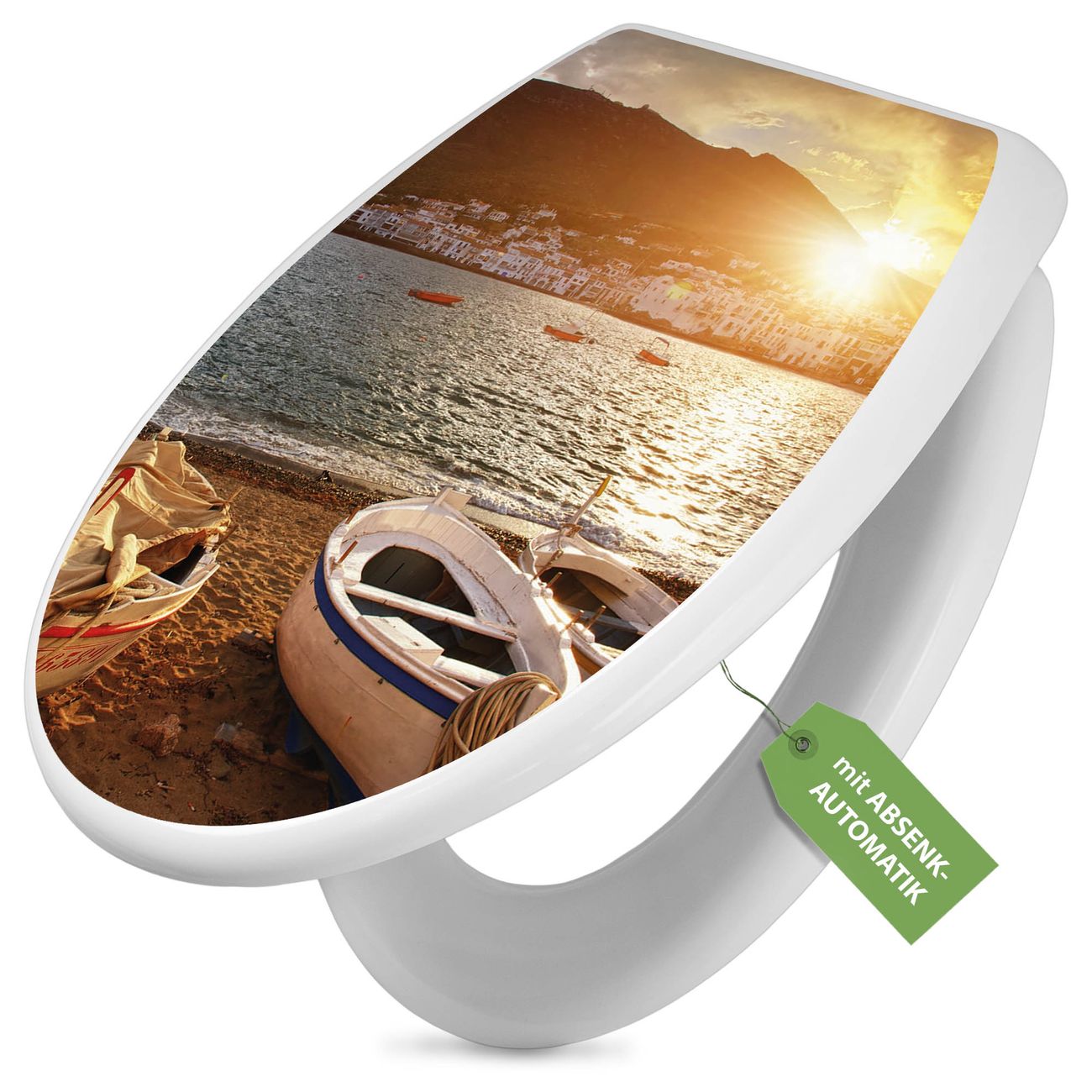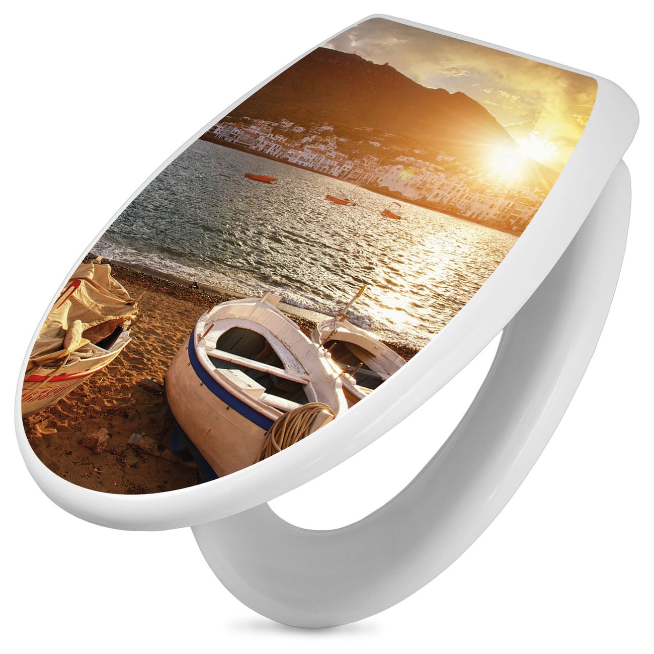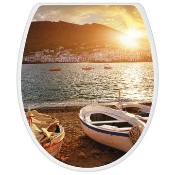 Toilettendeckel weiß mit Absenkautomatik Motiv Fischerboote