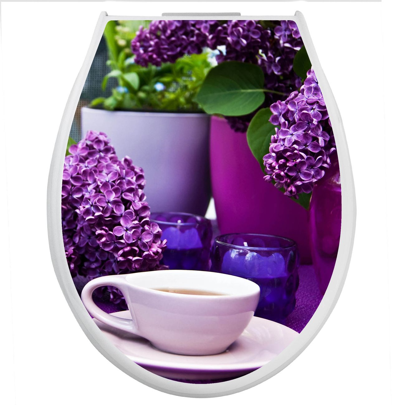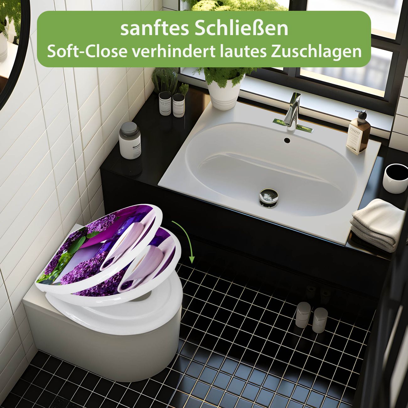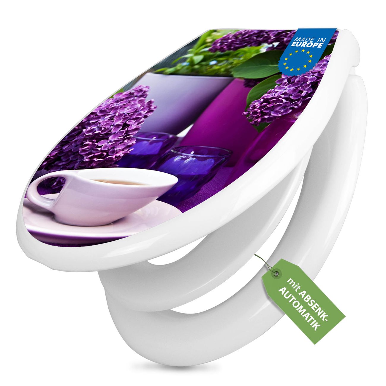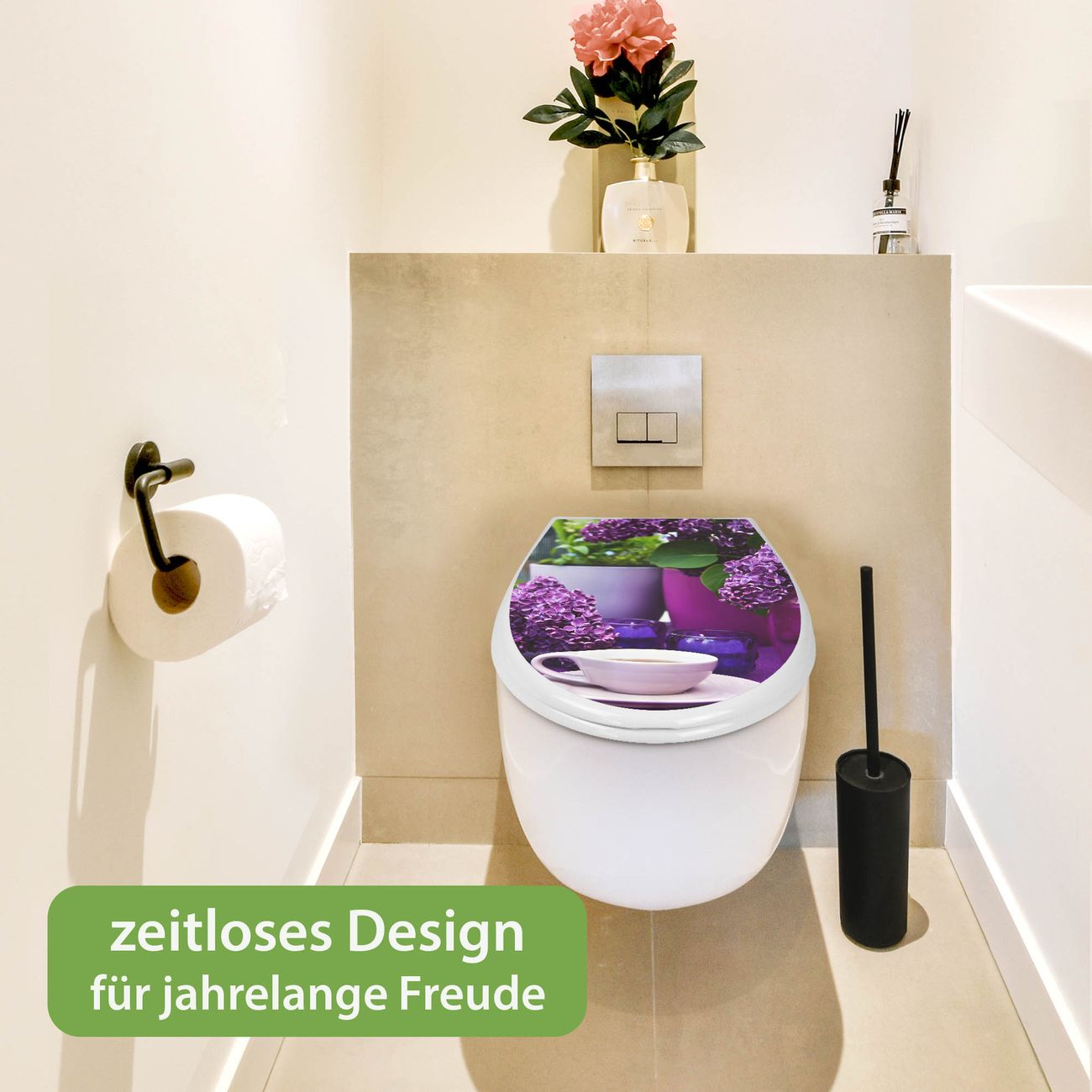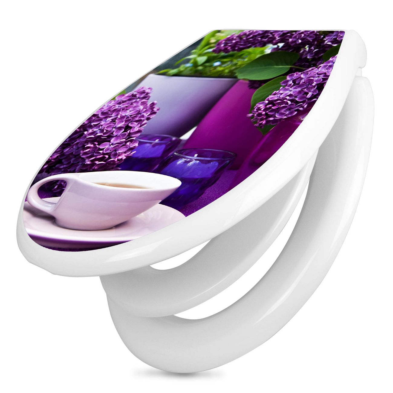 Toilettendeckel weiß mit Absenkautomatik Motiv Flieder