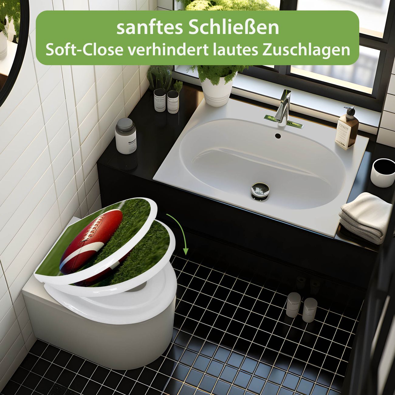 Toilettendeckel weiß mit Absenkautomatik Motiv Football