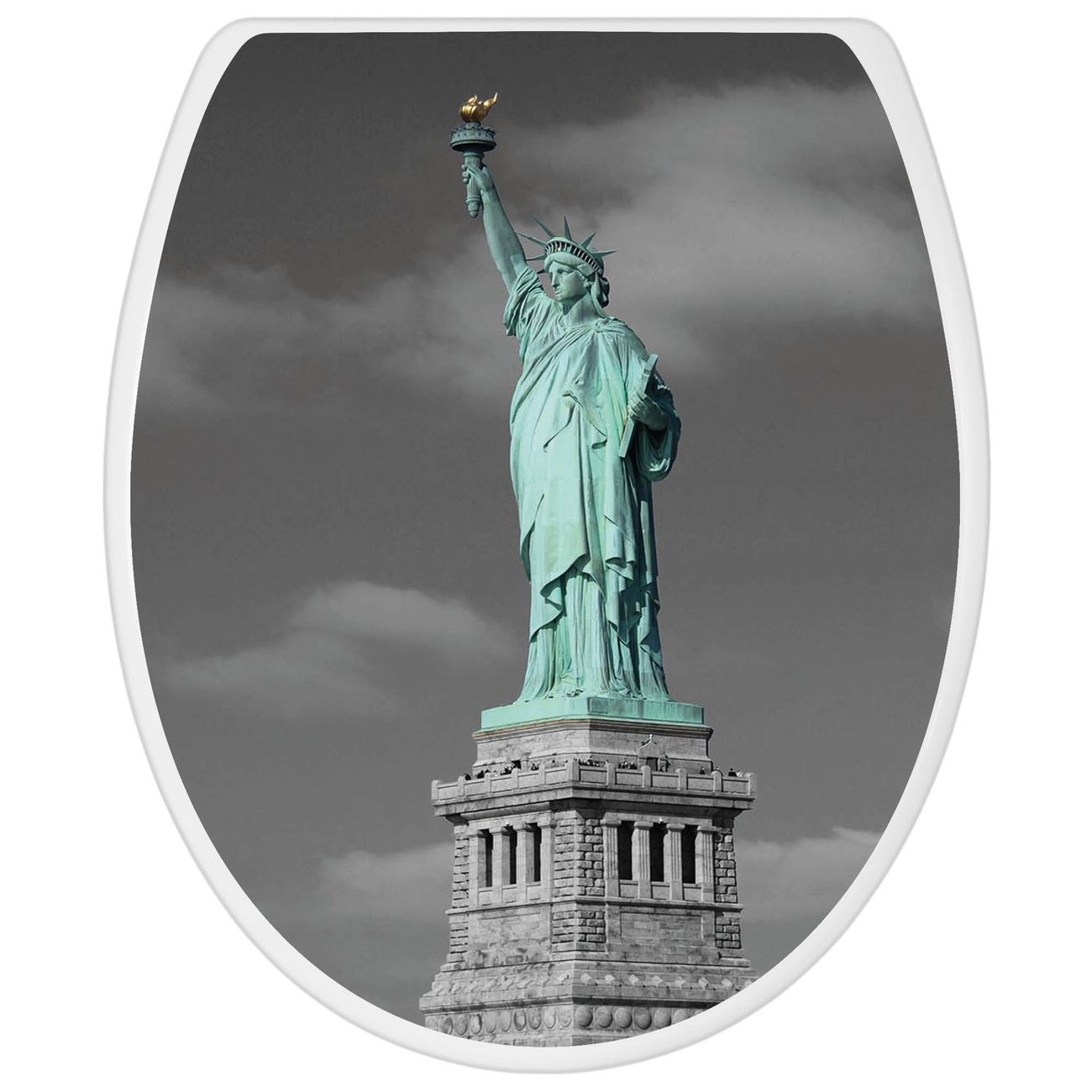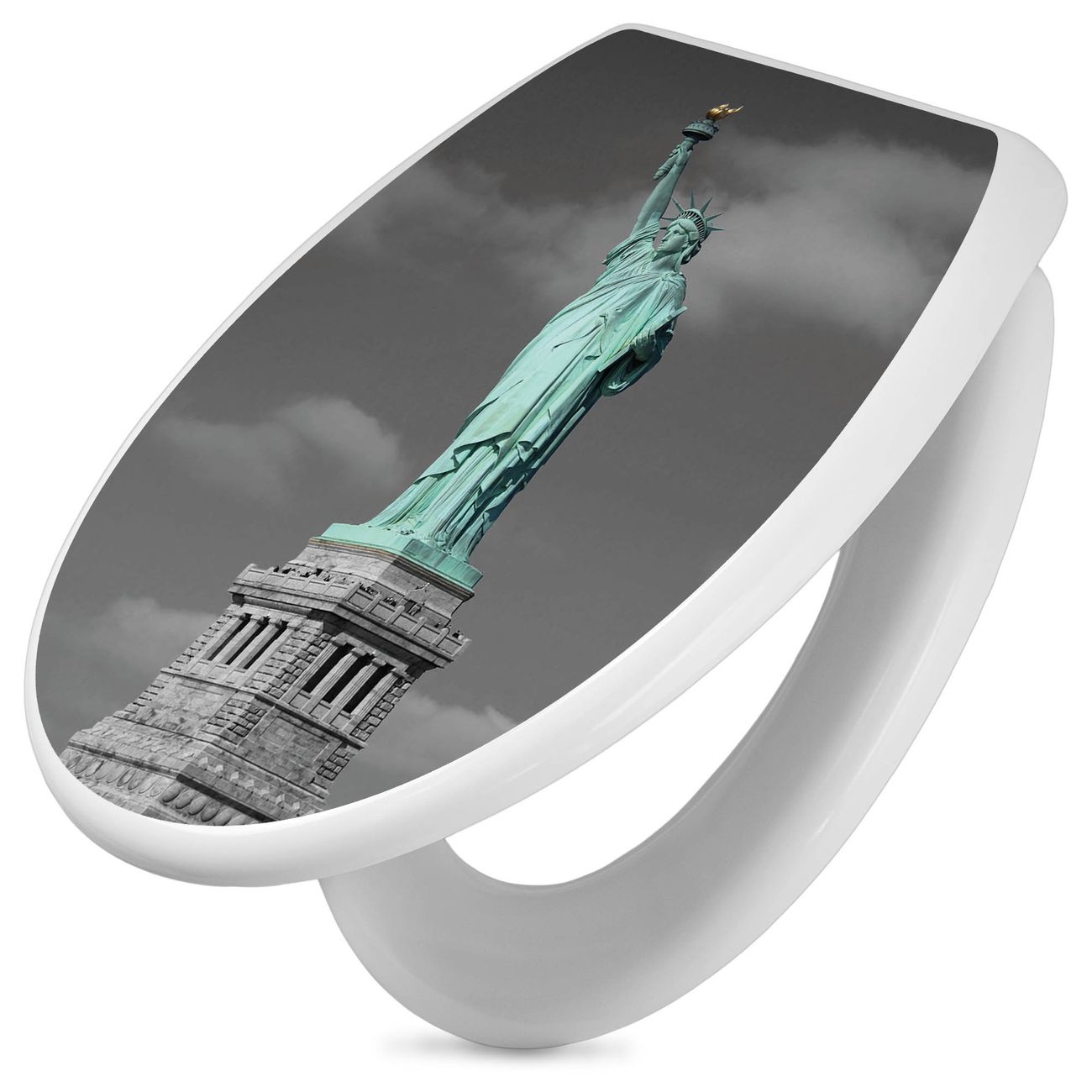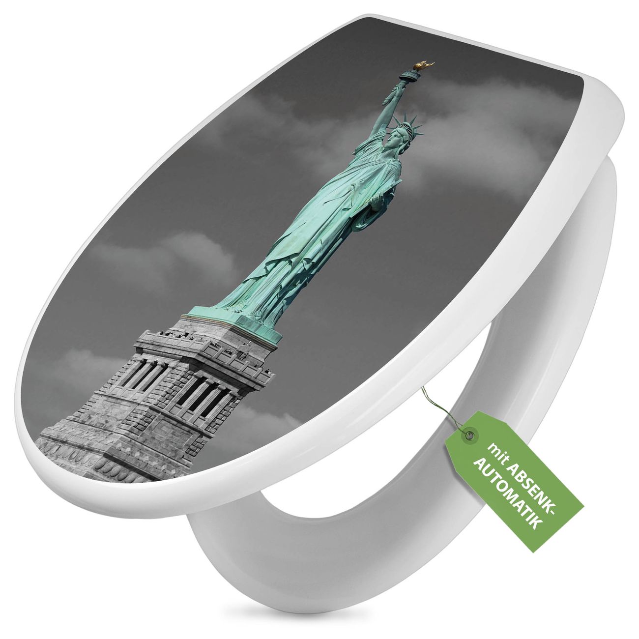 Toilettendeckel weiß mit Absenkautomatik Motiv Freiheitsstatue