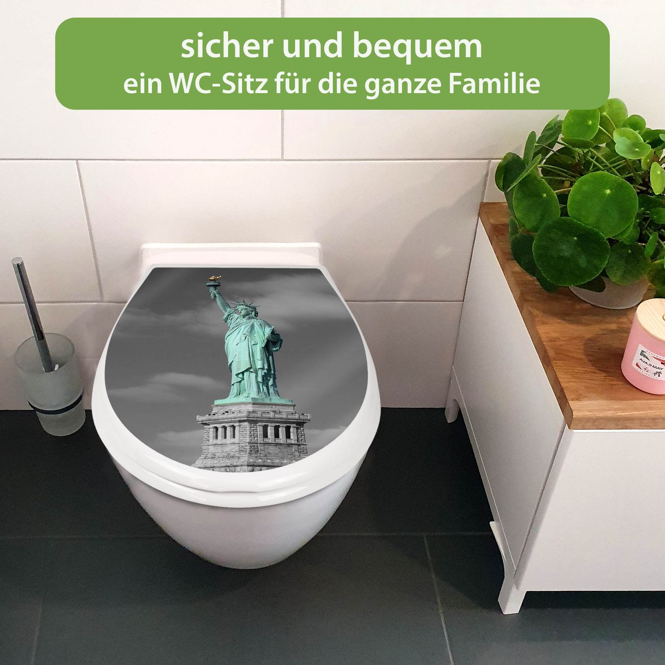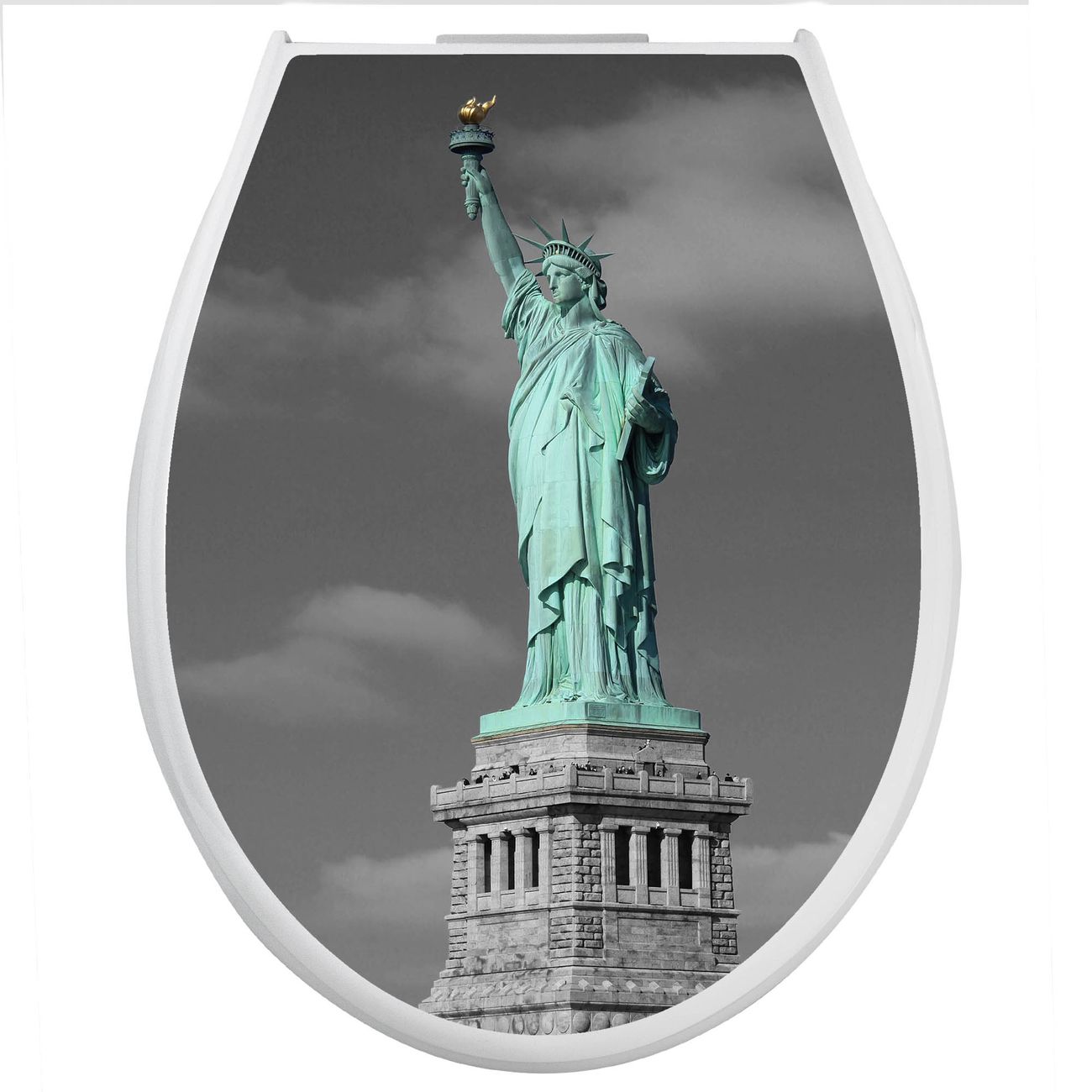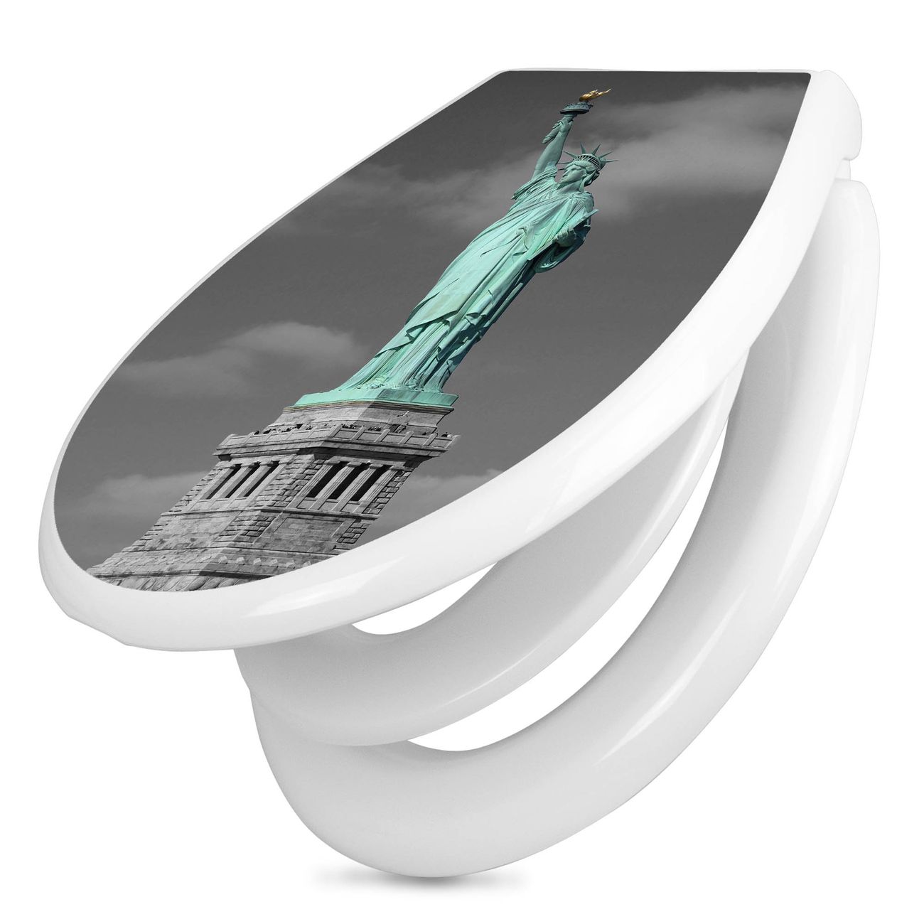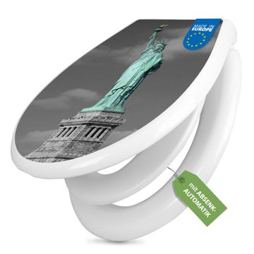 Toilettendeckel weiß mit Absenkautomatik Motiv Freiheitsstatue