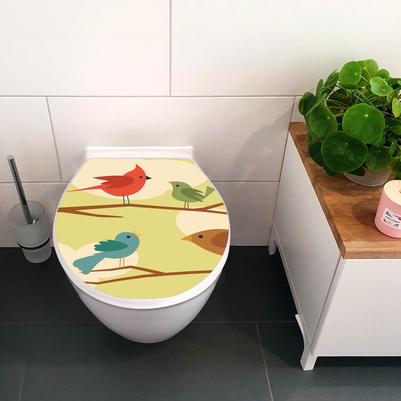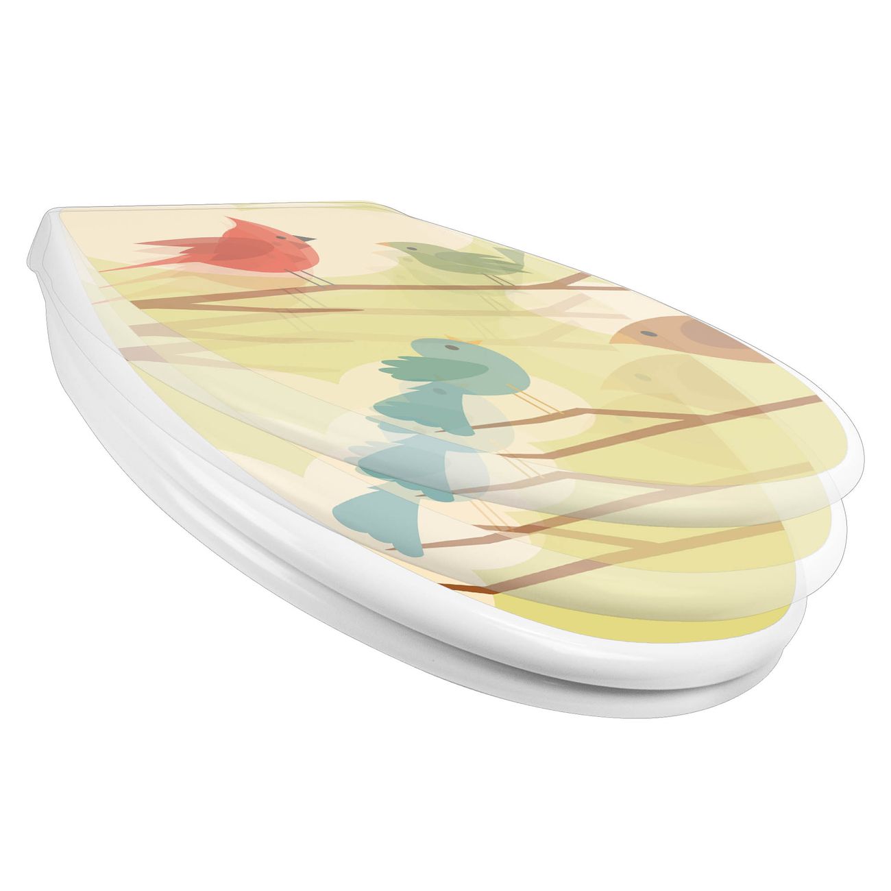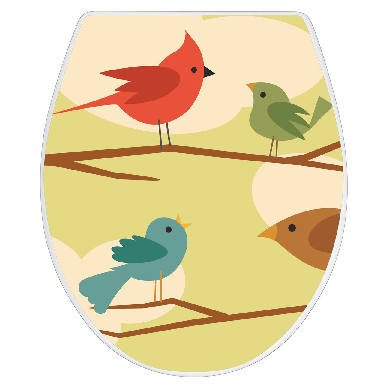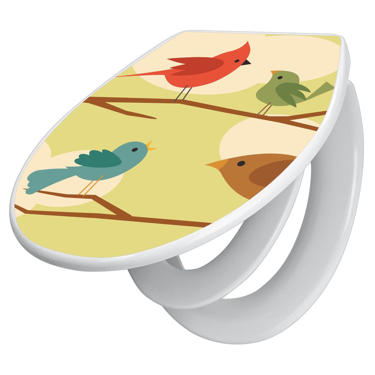 Toilettendeckel weiß mit Absenkautomatik Motiv Fünf Vögel