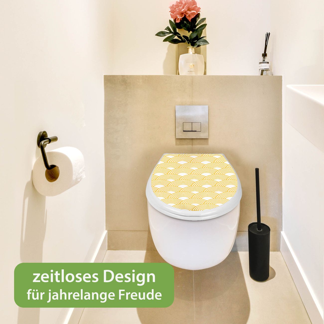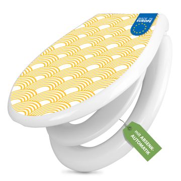 Toilettendeckel weiß mit Absenkautomatik Motiv Gelbe Wellen