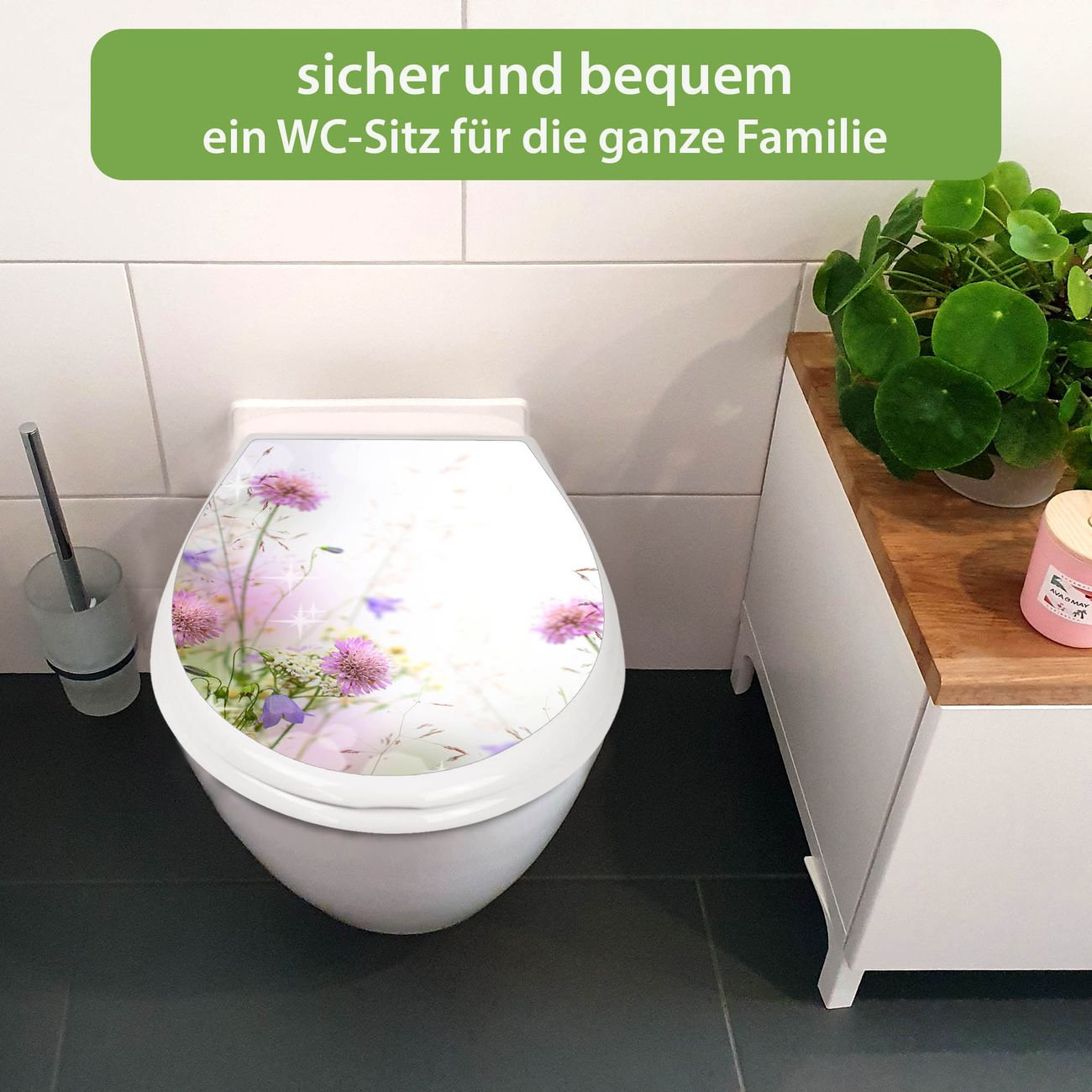 Toilettendeckel weiß mit Absenkautomatik Motiv Glitzernde Wiese